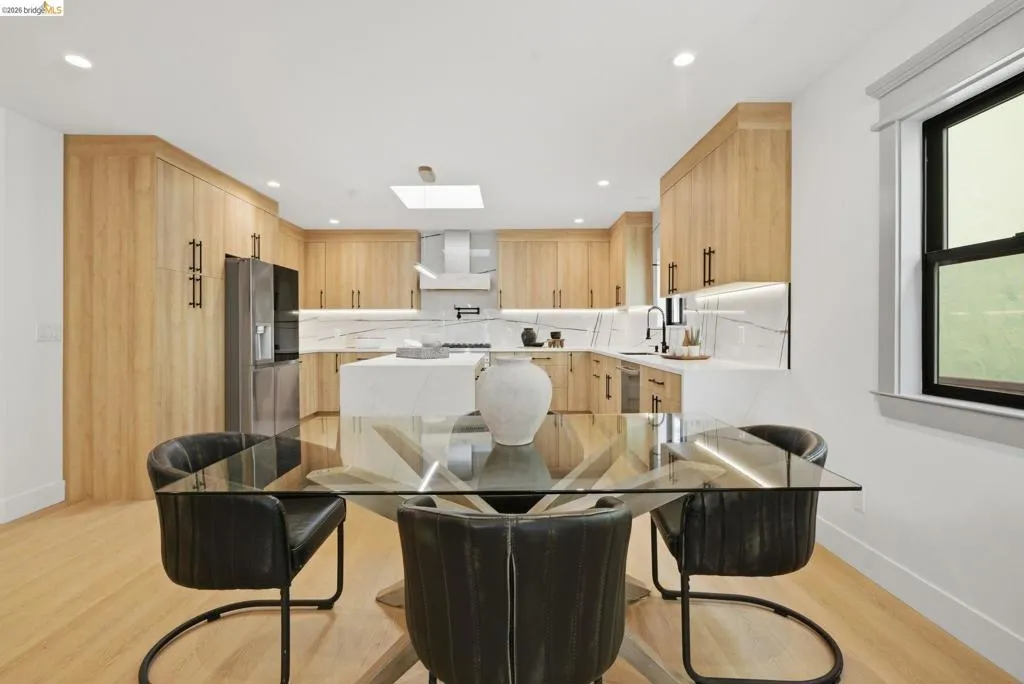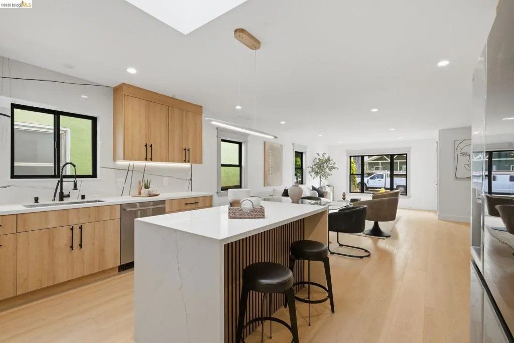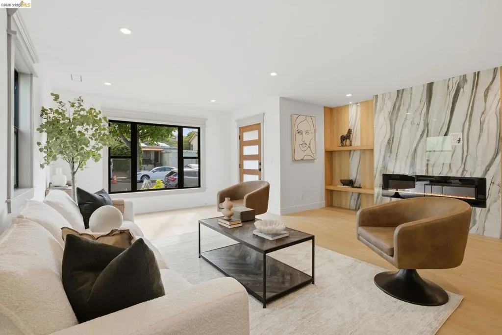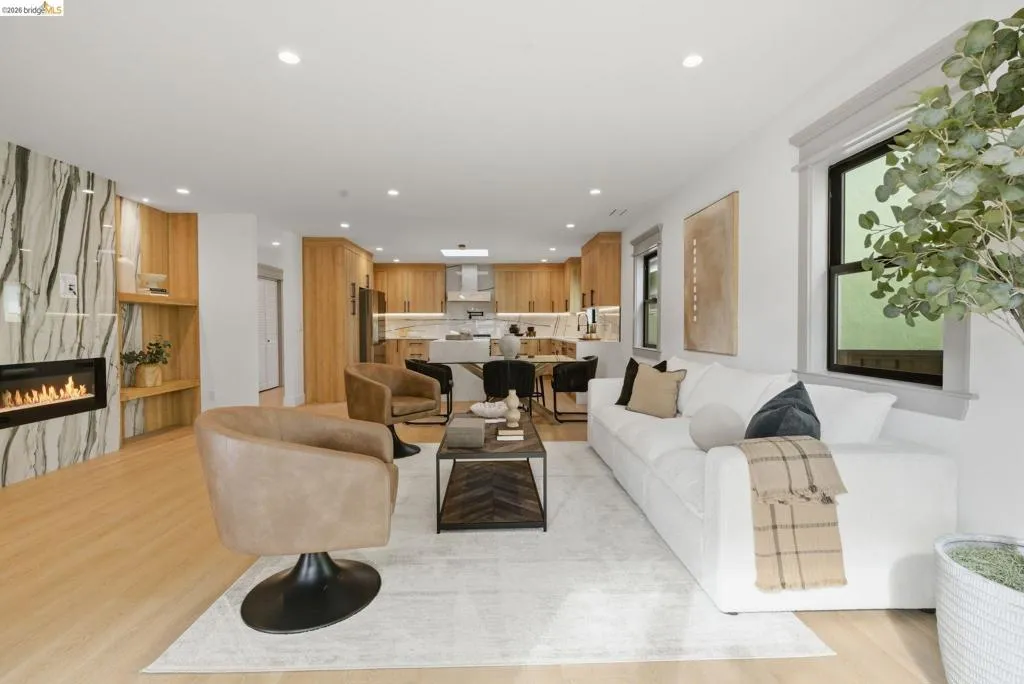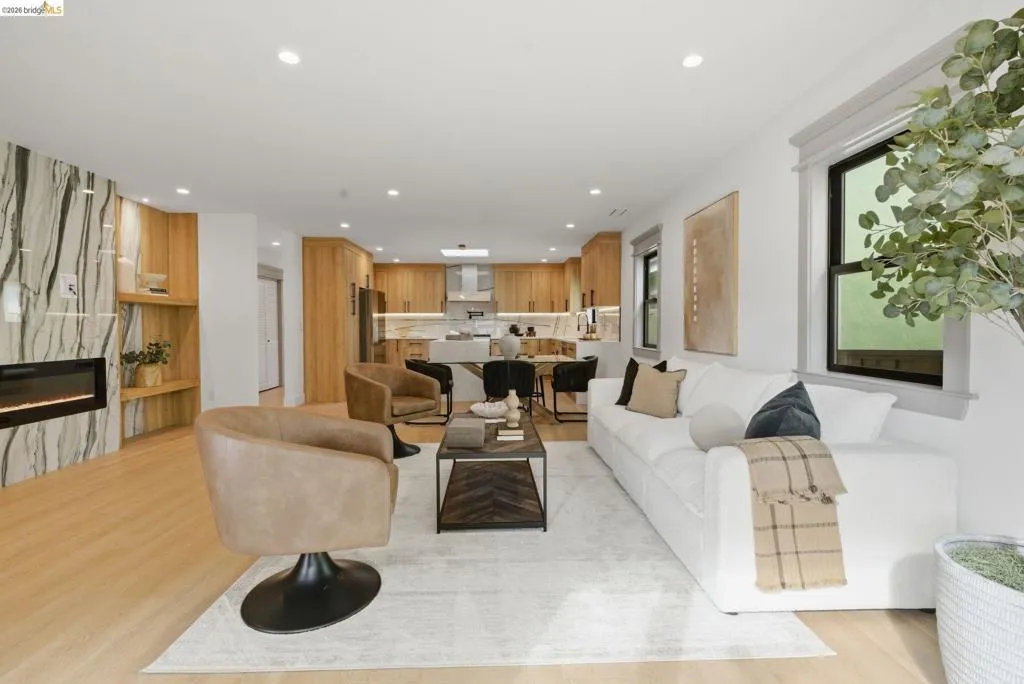 Welcome to 611 Norvell St—a beautifully reimagined 3-bedroom, 3-bath residence where timeless comfort meets modern convenience. Completely renovated with permits, this move-in-ready home showcases quality craftsmanship, thoughtful upgrades, and stylish finishes designed for today’s lifestyle. Step inside to discover a bright, welcoming interior enhanced by wide-plank SPC flooring, recessed lighting, and smart-home features, including a smart thermostat for year-round efficiency and comfort. The living space is anchored by a stunning electric fireplace wrapped in an elegant Italian porcelain slab, creating a sophisticated focal point that blends warmth, texture, and contemporary design. The heart of the home is the light-filled kitchen, highlighted by a skylight with a remote-controlled retractable shade that lets you tailor the ambiance at the touch of a button. A custom island anchors the space with pop-up power outlets and built-in USB connections—perfect for meal prep, casual dining, or working from home while staying connected. The kitchen is further elevated by sleek stainless steel appliances, including a striking 36-inch gas range designed for both everyday cooking and entertaining. Modern finishes and thoughtful functionality make this kitchen a true centerpiece of the home. The spacious primary suite offers a serene retreat, complete with wireless Bluetooth integration that brings music and relaxation into your daily routine. Each of the three bedrooms and three updated bathrooms has been thoughtfully designed with comfort and flexibility in mind, providing ample space for family, guests, or a dedicated home office. Enjoy seamless indoor-outdoor living as you step onto the solid mahogany deck—an inviting space ideal for weekend brunch, evening gatherings, or quiet mornings surrounded by fresh air. Every detail of the renovation has been completed with permits, offering both peace of mind and long-term value. Beyond the home, the location delivers exceptional convenience. You’ll enjoy close proximity to shopping, dining, and daily essentials at El Cerrito Plaza, along with easy commuting options via El Cerrito Plaza BART station. This prime setting combines neighborhood charm with accessibility, making it easy to enjoy everything the East Bay has to offer. Stylish, smart, and thoughtfully upgraded, this fully renovated home is ready to welcome its next chapter.