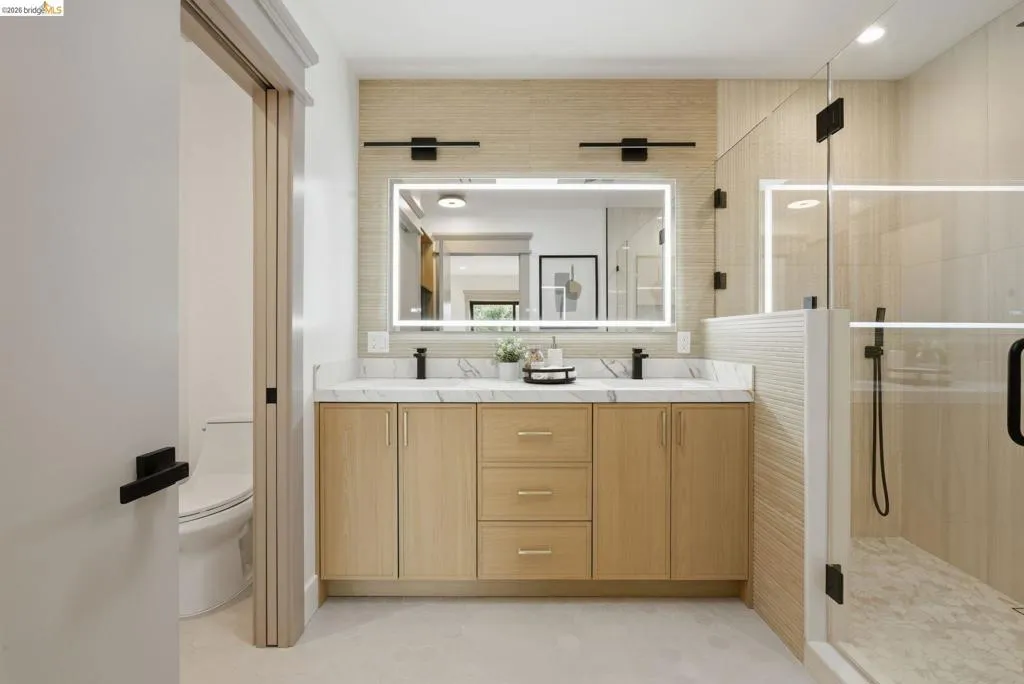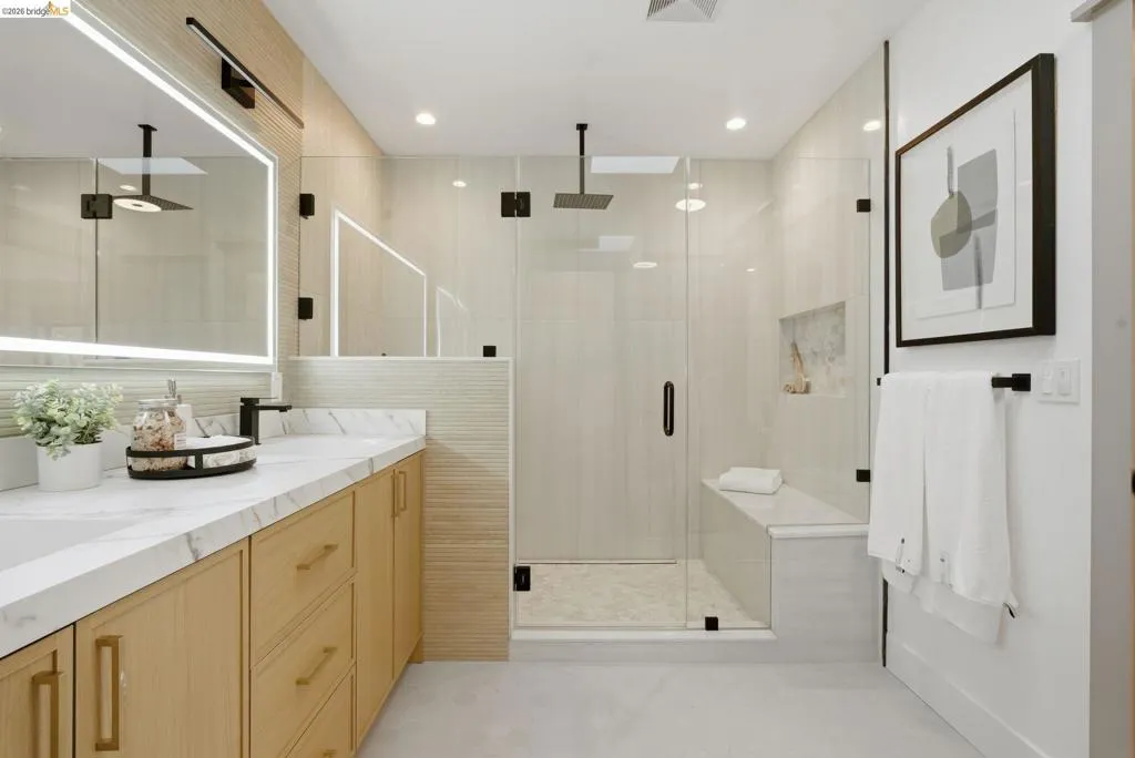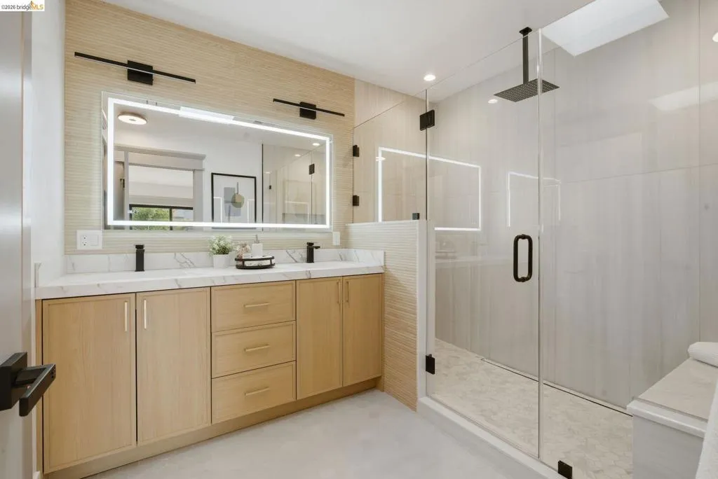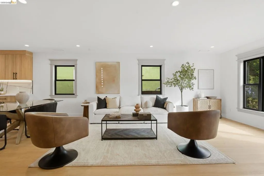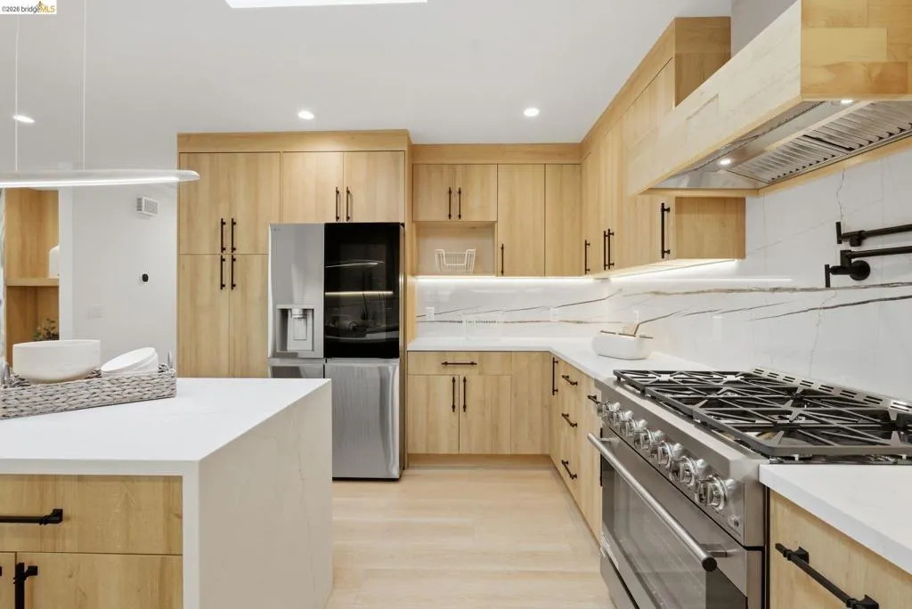 Welcome to 611 Norvell St—a beautifully reimagined 3-bedroom, 3-bath residence where timeless comfort meets modern convenience. Completely renovated with permits, this move-in-ready home showcases quality craftsmanship, thoughtful upgrades, and stylish finishes designed for today’s lifestyle. Step inside to discover a bright, welcoming interior enhanced by wide-plank SPC flooring, recessed lighting, and smart-home features, including a smart thermostat for year-round efficiency and comfort. The living space is anchored by a stunning electric fireplace wrapped in an elegant Italian porcelain slab, creating a sophisticated focal point that blends warmth, texture, and contemporary design. The heart of the home is the light-filled kitchen, highlighted by a skylight with a remote-controlled retractable shade that lets you tailor the ambiance at the touch of a button. A custom island anchors the space with pop-up power outlets and built-in USB connections—perfect for meal prep, casual dining, or working from home while staying connected. The kitchen is further elevated by sleek stainless steel appliances, including a striking 36-inch gas range designed for both everyday cooking and entertaining. Modern finishes and thoughtful functionality make this kitchen a true centerpiece of the home. The spacious primary suite offers a serene retreat, complete with wireless Bluetooth integration that brings music and relaxation into your daily routine. Each of the three bedrooms and three updated bathrooms has been thoughtfully designed with comfort and flexibility in mind, providing ample space for family, guests, or a dedicated home office. Enjoy seamless indoor-outdoor living as you step onto the solid mahogany deck—an inviting space ideal for weekend brunch, evening gatherings, or quiet mornings surrounded by fresh air. Every detail of the renovation has been completed with permits, offering both peace of mind and long-term value. Beyond the home, the location delivers exceptional convenience. You’ll enjoy close proximity to shopping, dining, and daily essentials at El Cerrito Plaza, along with easy commuting options via El Cerrito Plaza BART station. This prime setting combines neighborhood charm with accessibility, making it easy to enjoy everything the East Bay has to offer. Stylish, smart, and thoughtfully upgraded, this fully renovated home is ready to welcome its next chapter.