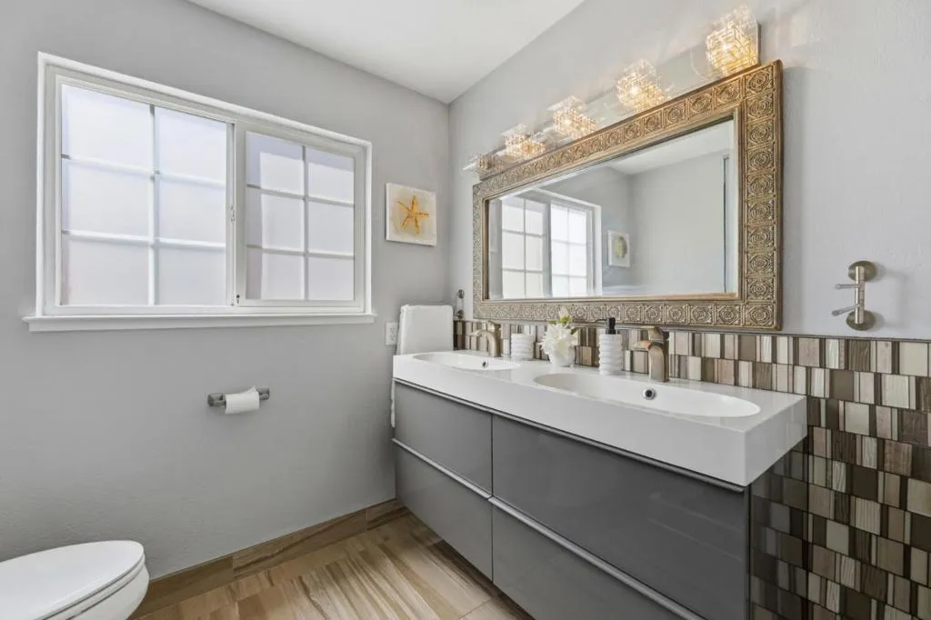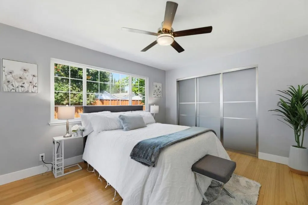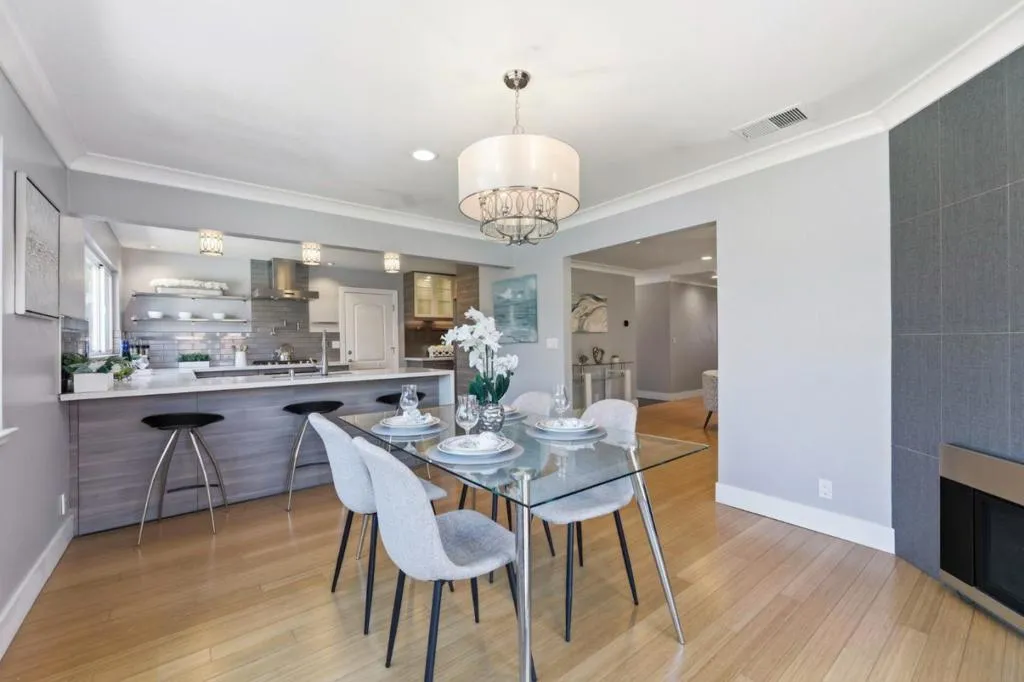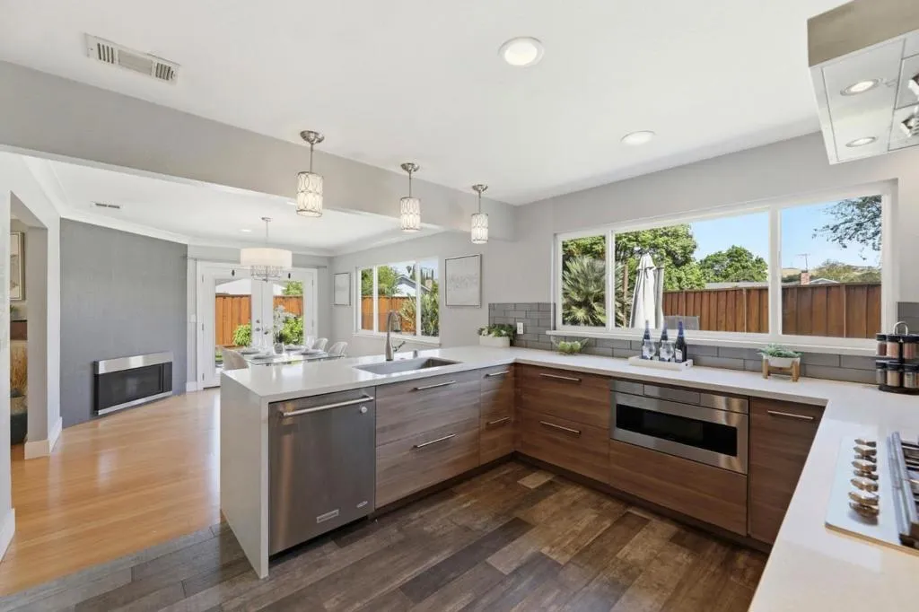 Welcome to 795 Nokomis Drive, a beautifully remodeled 3-bedroom, 2-bath home offering 1,442 sq ft of bright, modern living. This home welcomes you with a clean, contemporary feel the moment you step through the stylish wood-and-glass entry. The renovated kitchen features custom cabinetry, quartz countertops, stainless steel appliances, and a sleek glass tile backsplash. Centered around a cozy fireplace, the dining area opens up to a private patio with lovely mountain views. The living room provides a second fireplace and refined custom finishes, while built-in closet systems ensure effortless organization. The bathrooms come furnished with marble accents, dual sinks, and premium fixtures for a spa-like experience. The spacious backyard offers a private swimming pool perfect for relaxing or entertaining. Owned solar panels add energy efficiency and long-term savings. Ideally located near parks, schools, and Highway 101, this move-in-ready home delivers comfort, style, and convenience.