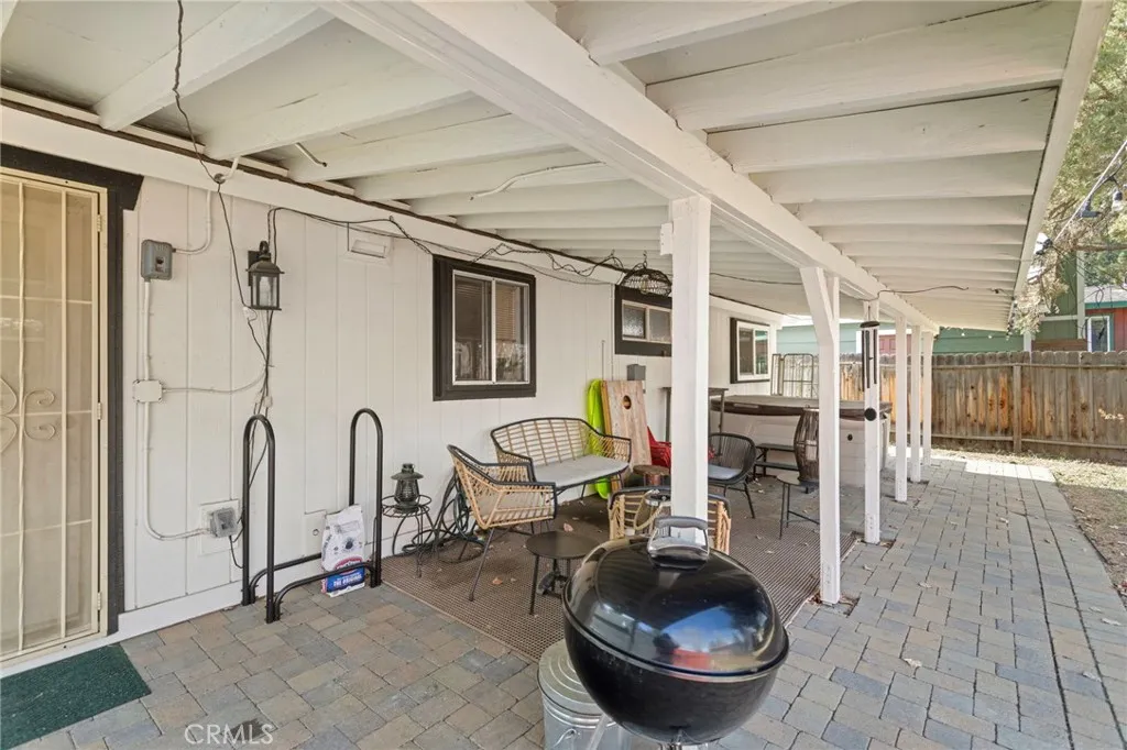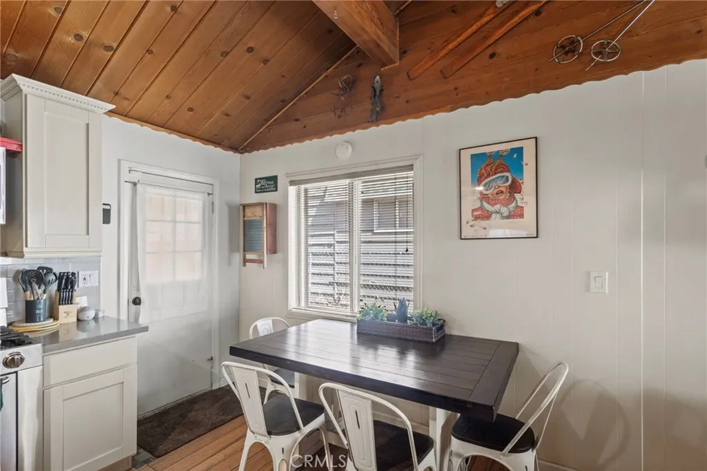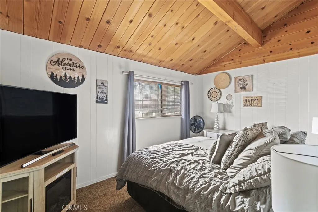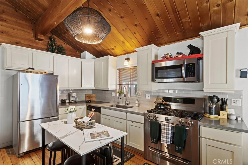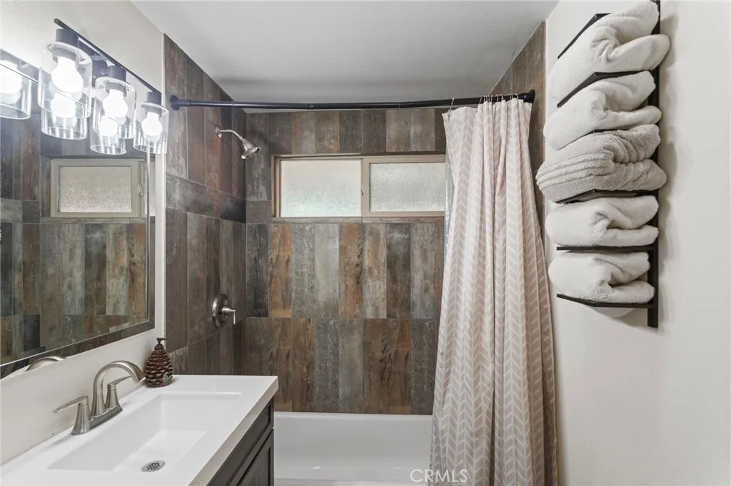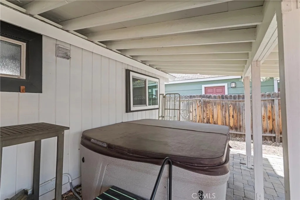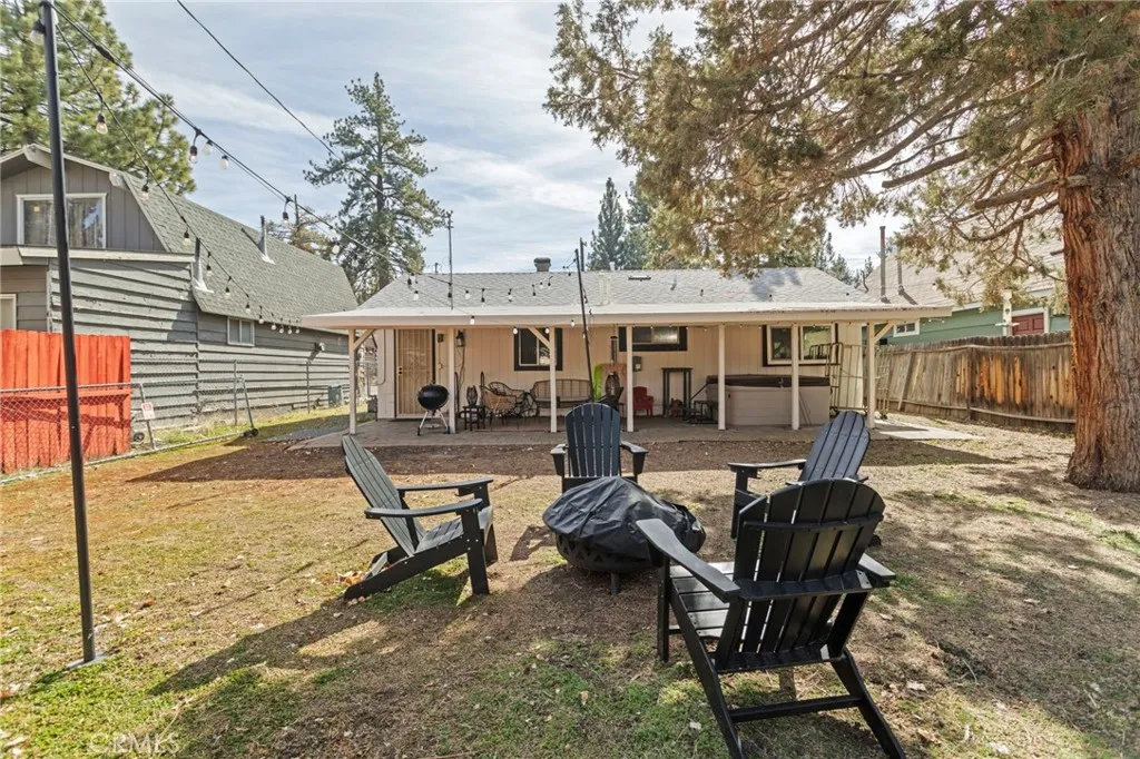 This beautiful 2 bed 1 bath home features a fully updated kitchen with open-concept design, ideal for entertaining family and guests. Fresh exterior paint and provides peace of mind and curb appeal from the moment you arrive. Step outside to the brand-new front patio, perfect for morning coffee or evening relaxation under the pines. Situated on a large lot, this property offers rare RV parking and a long driveway that extends through to the backyard — providing ample parking, storage, and flexibility. A large detached shed in the rear presents incredible potential for a workshop, game room, or future bonus space for an extra fee.Washer and Dryer included inside. Unwind in the private hot tub after a day on the slopes or at the lake. Located just a 10-minute drive to Big Bear Lake, The Village, and Snow Summit!