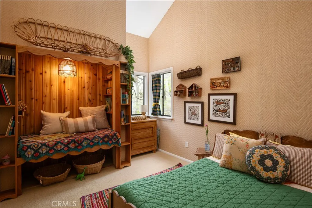 Prepare to be captivated by this architectural home that commands attention from every angle, perched on an expansive 1/4 acre canvas with the kind of style and vision that makes design enthusiasts take note. The thoughtfully curated living space where every detail tells a story of impeccable taste and artistic vision, all enhanced by those coveted lake rights that transform this property from exceptional to extraordinary. From the moment you enter, you'll understand why this 1982 architectural gem stands apart—soaring ceilings create cathedral-like grandeur while the inspired flow guides you through spaces that feel both gallery-worthy and livable, including a sunroom that frames the surrounding trees like living artwork. The uniqueness multiplies with three strategically positioned decks that blur the lines between indoor and outdoor living, two statement fireplaces that anchor gathering spaces with warmth and style, and a brilliantly conceived primary suite retreat that occupies its own private wing complete with a personal deck for those special sunrise moments. Recent updates showcase an attention to both form and function, including sleek new Trex decking, lovingly restored vintage doors that add authentic character and charm, custom millwork that speaks to true craftsmanship, newer appliances, tankless water heating, central air, and a built-in firepit that transforms your backyard into a gathering place of it's own. The property's undeniable charm extends to its practical elegance with seamless year-round access via a maintained county road and level entry through the attached two-car garage, proving that style and substance can coexist beautifully. Having successfully existed as both an exclusive family retreat and a successful Airbnb, this turnkey opportunity offers the rare chance to own a piece of architectural history that's as comfortable as it is charming, in one of California's most desirable mountain communities.