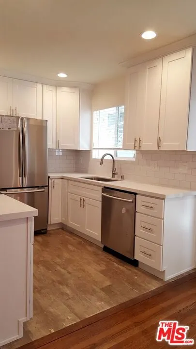 Completely renovated 2 bedrooms and 2 Full bathrooms. -Natural lighting through brand new large windows and doors. Both bedrooms with large windows. -Rear Patio suited for entertaining. -Brand new Central AC System heat & cool with excellent air filtration. -In-Unit Full Size Washer/Dryer -Enjoy fully equipped kitchen offering plenty of meal prep space with brand new top of the line Samsung stainless steel appliances and Quartz counter-tops -Real solid hardwood flooring offers warmth, beauty and high-end aesthetic layout. -Dimmable LED recessed lights throughout light up the unit evenly at night. -Custom tile and marble bathrooms, high-end designer bathroom fixtures. -2 tandem parking spots. -Beverly Hills adjacent. Quiet and safe. Easy access to Olympic, Wilshire, 10 and 405 Freeways. Walking distance to La Cienega park, Cedars Sinai and popular shopping destinations.