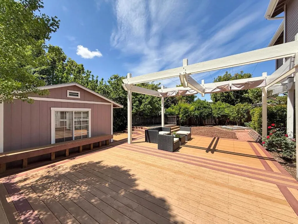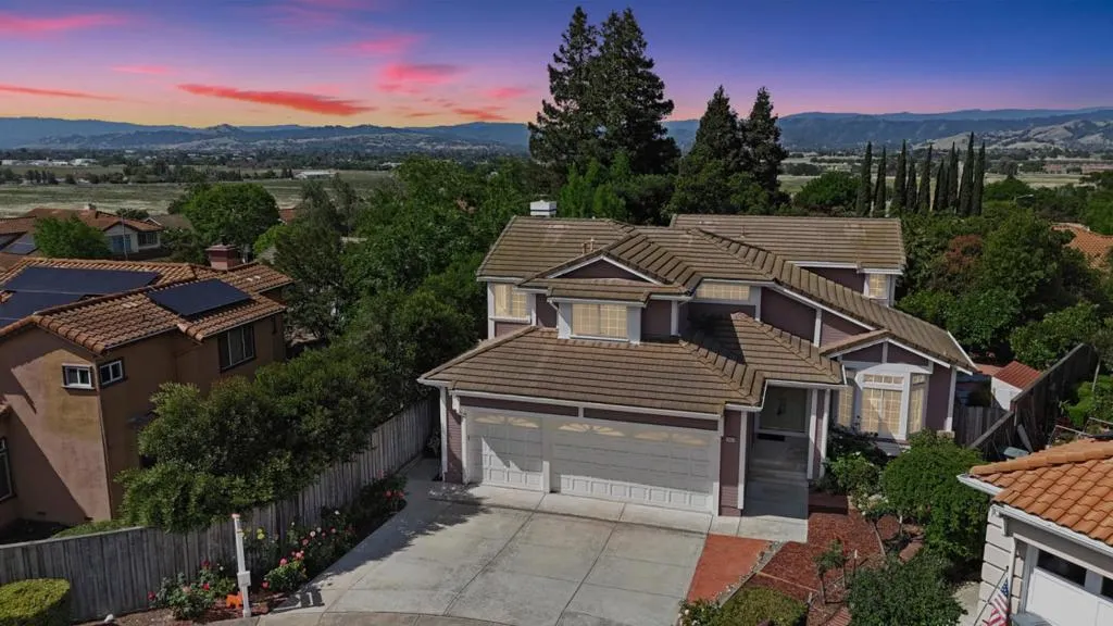 Welcome to Jackson Meadows in the Morgan Hill foothills! This beautifully maintained 4BR/3BA home offers 2,475 SF of living space on a premium 7,840 SF flat lot tucked away on a quiet cul-de-sac. Enjoy a private backyard retreat with mature fruit trees, plus a large engineered wood deck with covered patio perfect for entertaining. Inside features formal living/dining, breakfast nook, separate family room with fireplace, built-in shelves/desks, and a spacious kitchen with island, gas cooktop, double oven, and more. A permitted 192 SF powered shed is ideal for an office, gym, or studio. Upgrades include owned solar with smart controller, smart thermostats, 240V Level 2 EV charger, central A/C, and 3-car garage. Located in the Morgan Hill Unified School District near parks, trails, and commuter routes. The home is being sold AS IS.