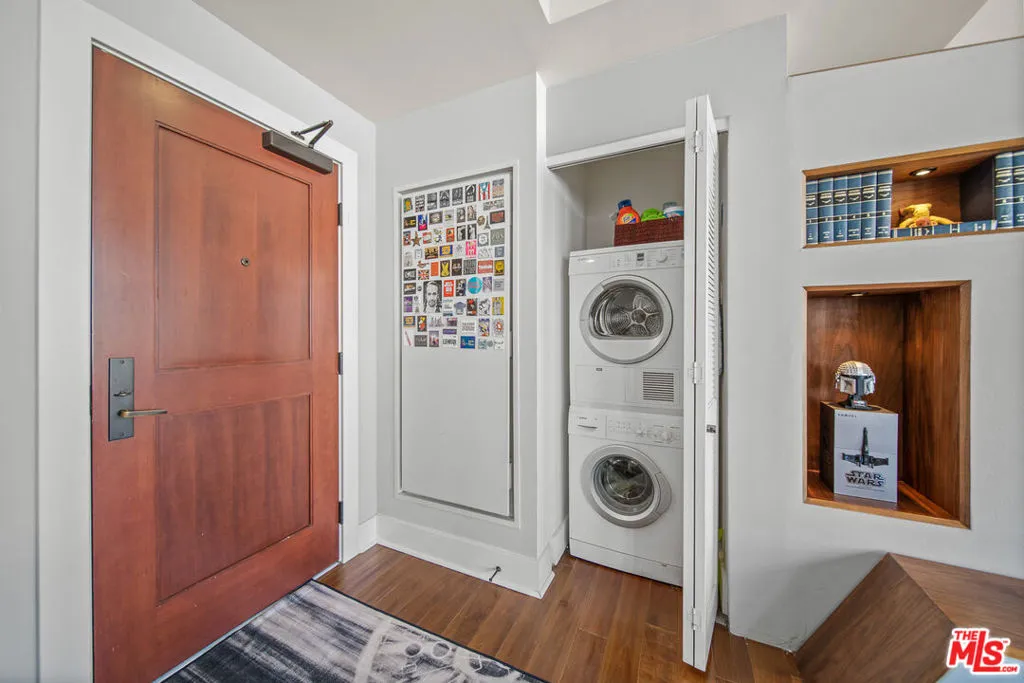 Stunning, upgraded 2 BED, 2 BATH, 12th floor loft in the historic Rowan Building with spectacular city skyline views and treetops of Spring Street Park. The west-facing LIVE/WORK loft is situated just below the penthouse level and features one of the largest floorplans. There is a bedroom and bath each on opposite ends of the unit. Take in natural light and gorgeous city views from ten oversized mahogany windows framed by beautifully restored exposed brick that span the entire length of the unit from room to room. The loft boasts over 10ft tall ceilings & hardwood floors throughout, and an open living area that's ideal for entertaining. There is a custom designer remote controlled electric fireplace and heater with temperature control and built-in storage and bench. The kitchen features Scavolini cabinetry, stainless steel appliances that include Bosch stovetop, new dishwasher and Italian Fulgor oven, stainless steel fridge and microwave, and quartz countertops. Primary bedroom is separated by custom shelving and features a massive closet & ensuite bath with quartz countertops. There is a second completely walled in regular bedroom with a door, and massive windows, wall-to-wall mirrored closet, and a guest bath off the living room. Other features of this unique loft is a Bosch W/D in the unit, central heat/AC, Toto fixtures in bathrooms, ceiling fans, custom window shades, and dimmable recessed lighting throughout. Rent includes water, trash, gas. Tenant pays electricity, internet, and move in fees. Amenities include 24/7 front desk security and reception desk that can accept and hold deliveries, outdoor deck with hot and cold plunge pools, resident lounge, BBQs, outdoor dining/lounge area, extra basement storage options. Few short blocks to Grand Central Market, Metro, Arts District, The Broad, Walt Disney Concert Hall, MOCA, Little Tokyo, Whole Foods, Grand Park, tons of coffee shops & dining hot spots! Convenient parking is available in the adjacent covered garage structure for an additional fee, the garage also has EV chargers that are pay-per-use, and many other parking options nearby. Rent INCLUDES Water, Trash, Gas.