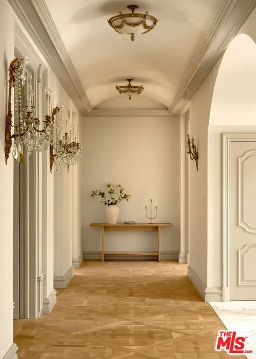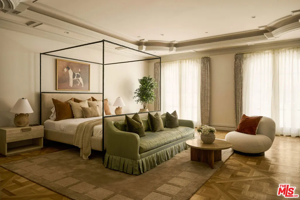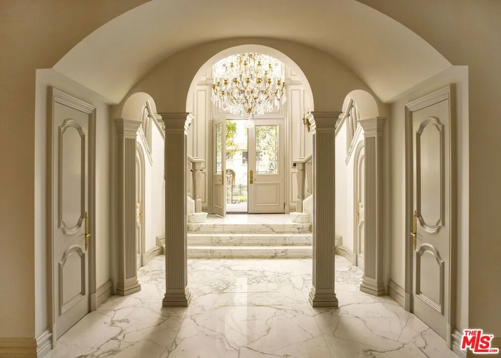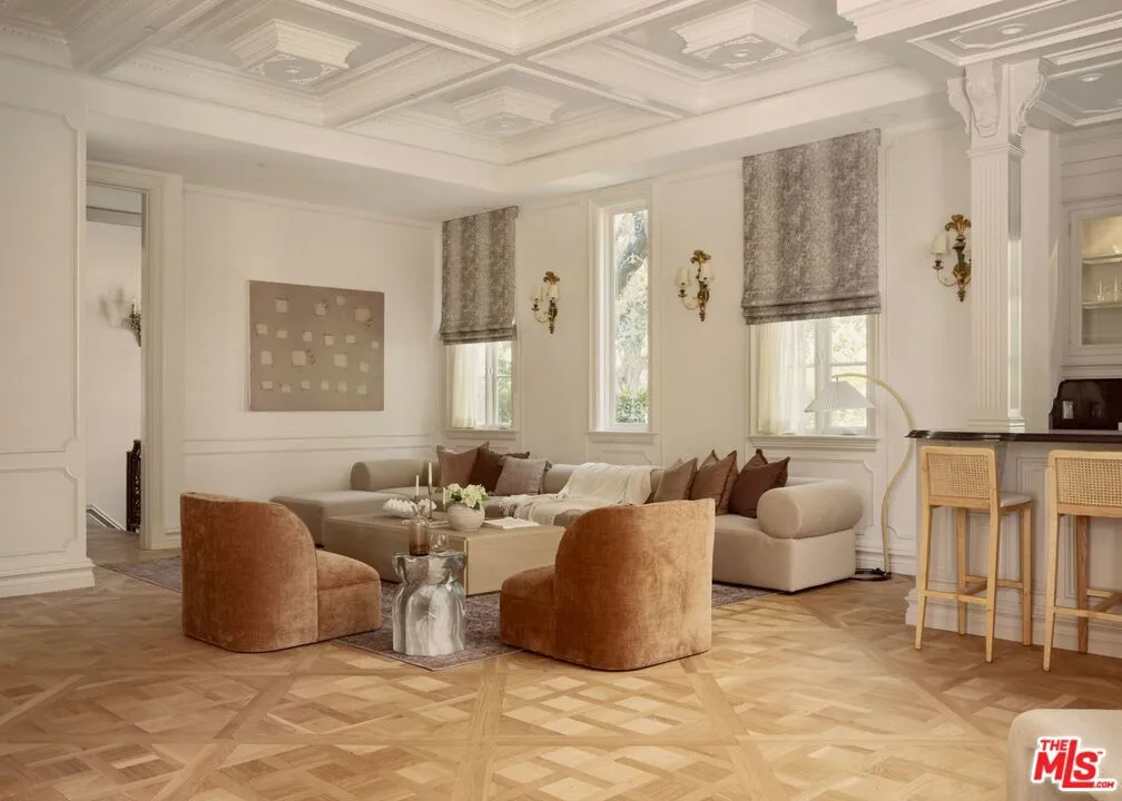 As seen on AD Middle East. A stately 12,000 Sqft estate on Beverly Hills Flats' most coveted street, mere steps from Golden Triangle's premier retail and dining. This trophy residence, recently reimagined in partnership with Harrison Design, delivers monumental scale, precision-crafted millwork, and enduring architectural integrity. Behind custom gates, you'll find voluminous living spaces and impeccably landscaped grounds engineered for both high-impact entertaining and serene private retreat. Experience white-glove vehicle capacity with an oversized 6-car garage, private motor court, and secondary side-street ingress for seamless guest arrival. Optimally located within the Flats for maximum lifestyle efficiency. This is a strategic lifestyle investment. Position yourself at the nexus of exclusivity and access. Available for 07/01/26 move-in.
