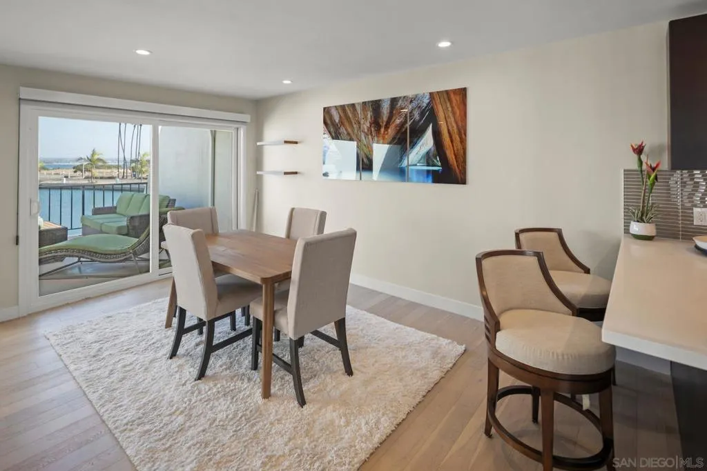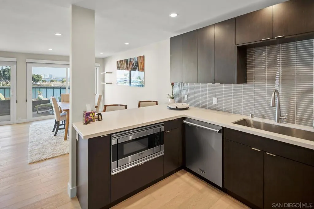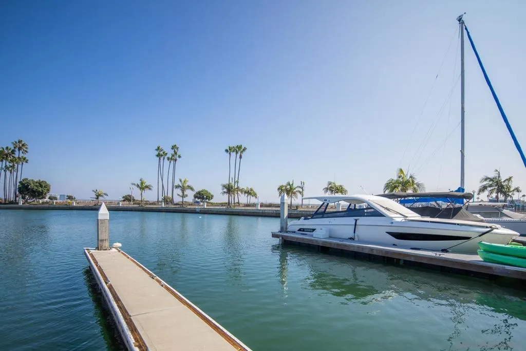 Rarely available and exquisitely reimagined, this exceptional residence in Coronado Cays offers elevated coastal living on the highly coveted, sheltered east side of the Silver Strand. Thoughtfully positioned to capture sweeping bayside vistas, this elegantly understated, fully remodeled home enjoys sparkling evening lights, distant rolling hills, and panoramic 50-mile views across the widest channel in the Cays. Bathed in natural light, the upper-level residence showcases sophisticated coastal design with an expansive renovated chef’s kitchen featuring premium Viking appliances, soft-close custom cabinetry, and seamless flow into the open-concept living spaces. Custom light oak wood flooring, recessed lighting, newer windows and sliders, plantation shutters, designer blinds, ceiling fans, and a striking tile fireplace complete the home’s refined yet relaxed aesthetic. Designed for effortless waterfront living, the expansive private deck provides the perfect setting to unwind while enjoying tranquil water views, vibrant sunsets, and the serene beauty of the Cays. Additional highlights include a newer Bosch washer and dryer, a private storage room, and an oversized two-car garage. Boating enthusiasts will appreciate the rare private slip accommodating up to a 45.5-foot boat, offering direct access to the open bay. Ideally located just moments from the Coronado Cays Yacht Club, Calypso Café, scenic open space, dog park, tennis and paddle courts, and the beach, this is a rare opportunity to experience the very best of Coronado waterfront living.