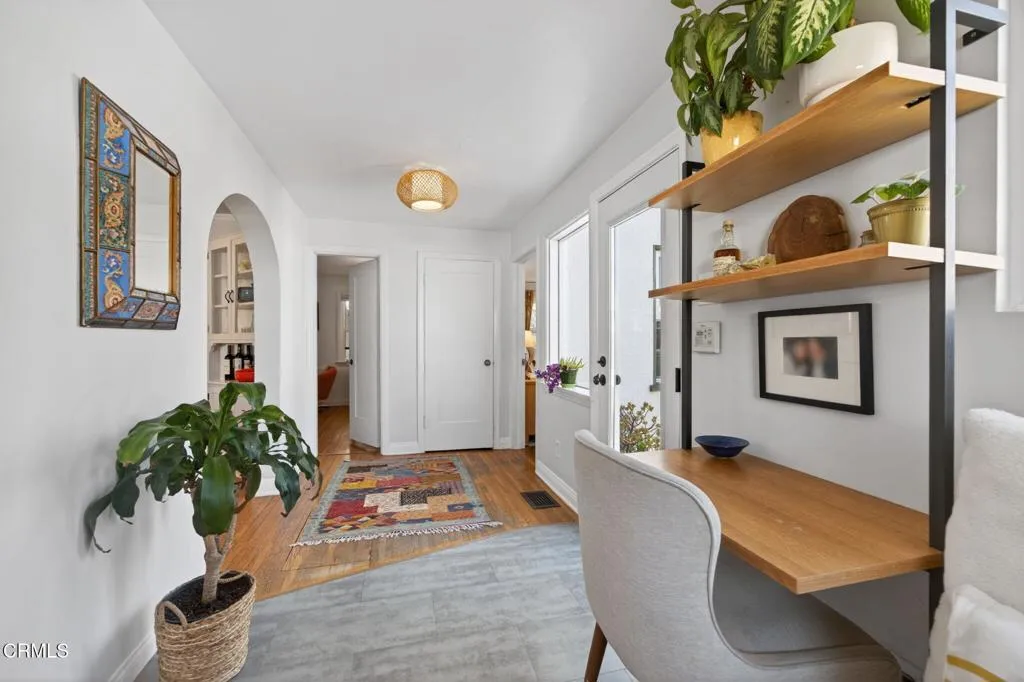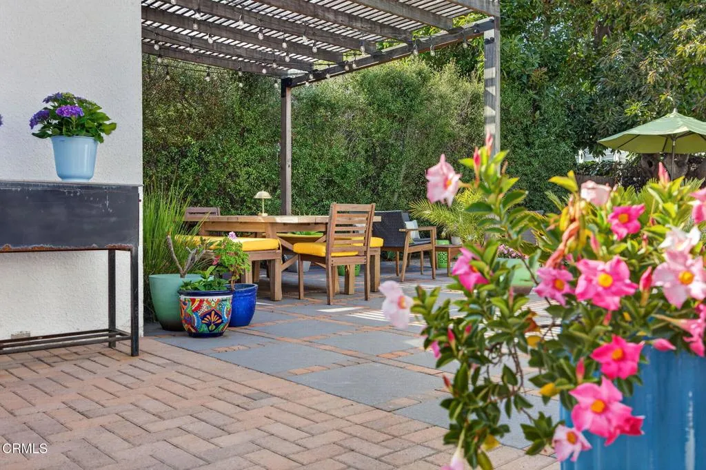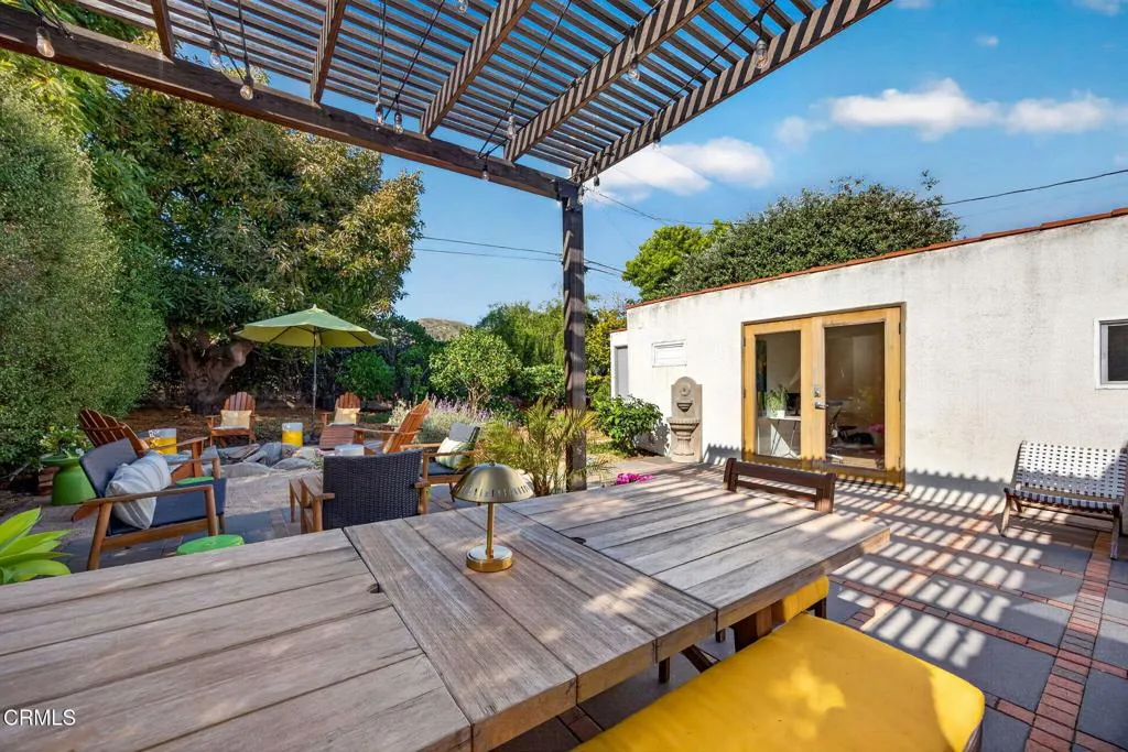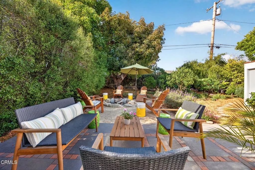 Ideally located in one of Ventura's most desirable neighborhoods, this beautiful Spanish charmer blends timeless character with thoughtful modern updates. The inviting 3-bedroom, 2-bath residence showcases lovely original hardwood floors, sun-drenched living spaces, and a warm, welcoming layout designed for both everyday comfort and effortless entertaining. At the heart of the home is a beautifully remodeled kitchen featuring custom finishes, an open-concept design, and a sunny breakfast nook perfect for slow mornings and coffee-filled starts to the day. Both bathrooms have been tastefully redesigned, honoring the home's classic style while adding fresh, elegant touches. Step outside to a truly magical, park-like backyard that has been lovingly re-landscaped into a private retreat. Enjoy a custom pergola, relaxing hot tub, hillside views, and an abundance of mature fruit trees including avocado, lemon, Mexican lime, pomegranate, persimmon, tangerine, and orange. A versatile detached studio offers endless possibilities as a home office, art studio, yoga sanctuary, or fitness space. Perfectly positioned in the heart of the neighborhood, this special property offers the very best of Ventura living, just moments from the beach, vibrant downtown, terrific schools and scenic Ventura Land Trust hillside trails. Enjoy beloved local favorites just around the corner, including Singing Sun Coffee, Prospect Coffee, Ficelle Bakery, Luke's, Valentino's, Buddies Wine Bar, and so much more. A home filled with beauty, warmth, and cherished memories ready for its next chapter!