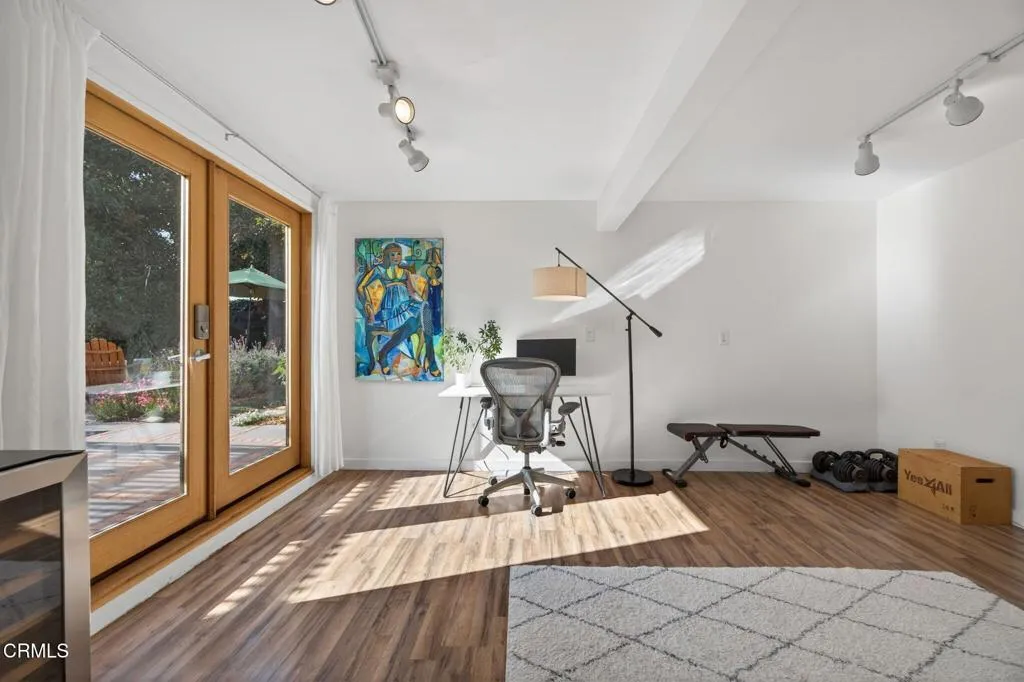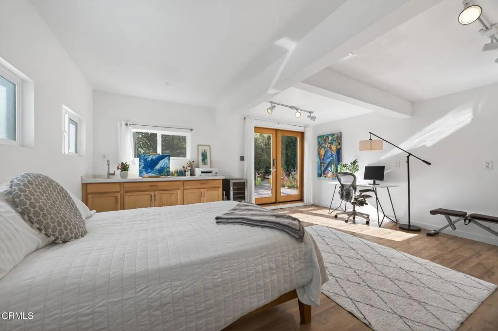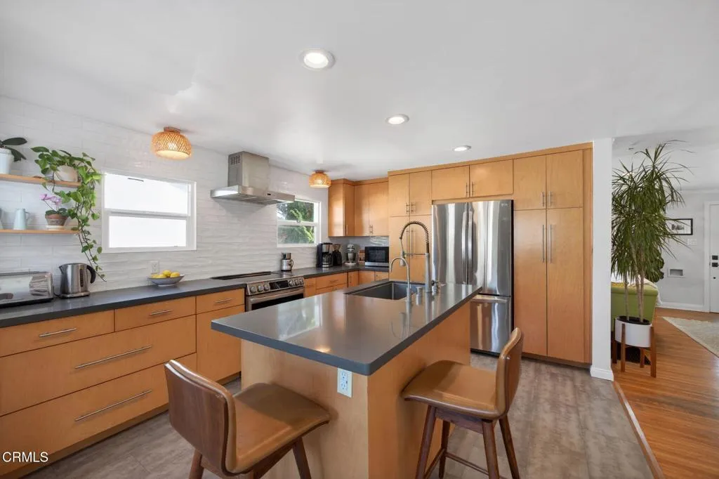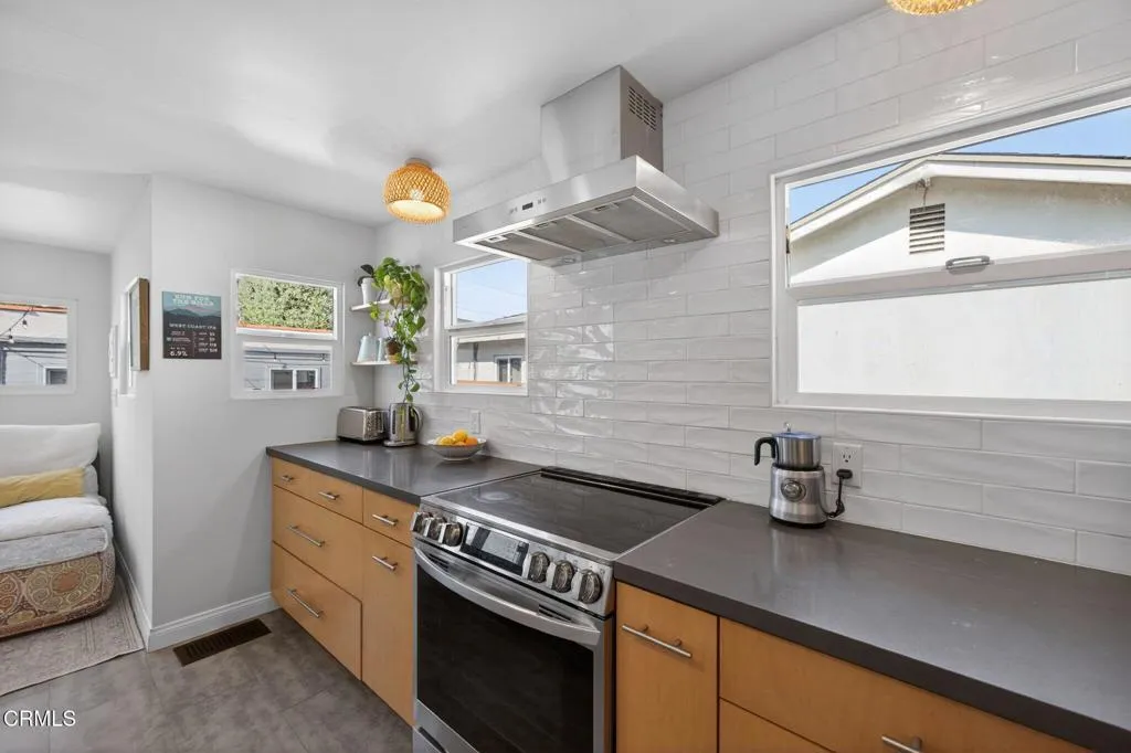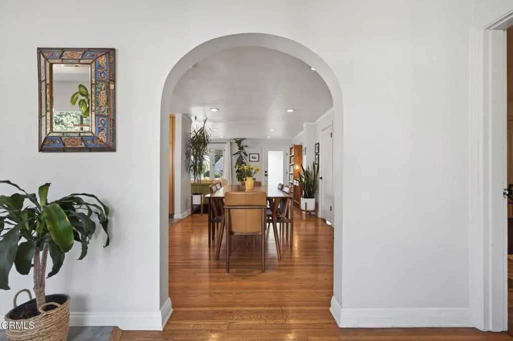 Ideally located in one of Ventura's most desirable neighborhoods, this beautiful Spanish charmer blends timeless character with thoughtful modern updates. The inviting 3-bedroom, 2-bath residence showcases lovely original hardwood floors, sun-drenched living spaces, and a warm, welcoming layout designed for both everyday comfort and effortless entertaining. At the heart of the home is a beautifully remodeled kitchen featuring custom finishes, an open-concept design, and a sunny breakfast nook perfect for slow mornings and coffee-filled starts to the day. Both bathrooms have been tastefully redesigned, honoring the home's classic style while adding fresh, elegant touches. Step outside to a truly magical, park-like backyard that has been lovingly re-landscaped into a private retreat. Enjoy a custom pergola, relaxing hot tub, hillside views, and an abundance of mature fruit trees including avocado, lemon, Mexican lime, pomegranate, persimmon, tangerine, and orange. A versatile detached studio offers endless possibilities as a home office, art studio, yoga sanctuary, or fitness space. Perfectly positioned in the heart of the neighborhood, this special property offers the very best of Ventura living, just moments from the beach, vibrant downtown, terrific schools and scenic Ventura Land Trust hillside trails. Enjoy beloved local favorites just around the corner, including Singing Sun Coffee, Prospect Coffee, Ficelle Bakery, Luke's, Valentino's, Buddies Wine Bar, and so much more. A home filled with beauty, warmth, and cherished memories ready for its next chapter!