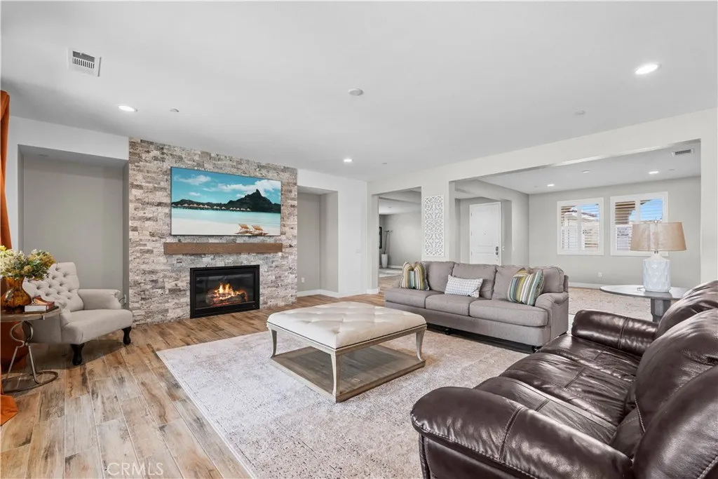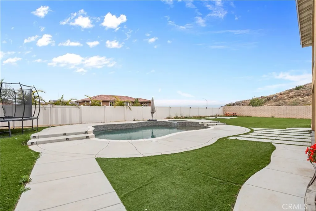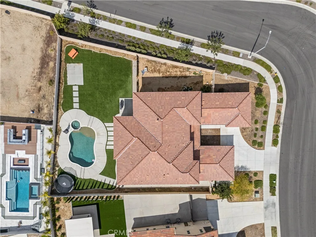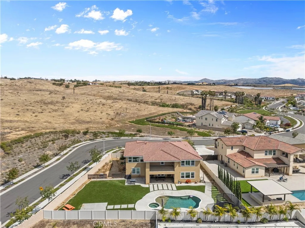 Luxury living at its finest; welcome to the highly sought-after Tramonte at Citrus Heights Community Association, where comfort, privacy, and elevated living come together in this exceptional home. Perched on a hilltop near Lake Matthews, this property offers scenic views and a serene setting, creating a true sense of retreat while still being conveniently located. Situated on a desirable corner lot; this property offers both curb appeal and exclusivity. The home features a highly desirable downstairs layout, including a full bedroom and full bathroom on the main level, perfect for guests, extended family, or multigenerational living with no need for upstairs access; Located adjacent to the stairs, this area offers excellent potential to be transformed into a private next-gen style suite, providing flexible living options with added privacy. Also downstairs, you’ll find a dedicated office space, ideal for working from home, studying, or creating a quiet retreat separate from the main living areas. Upstairs, enjoy generously sized living spaces along with a versatile loft area, perfect for a second living room, media space, game room, or additional area for entertaining , tailored to fit your lifestyle. An energy-efficient quiet-cool system designed to pull warm air from the home and vent it into the attic, helping maintain a comfortable indoor climate. The home is equipped with washer and dryer hookups both upstairs and downstairs, offering convenience and adaptability for a variety of living arrangements. Step outside to your own backyard retreat featuring a sparkling pool and relaxing spa, perfect for entertaining or unwinding while taking in the surrounding views.