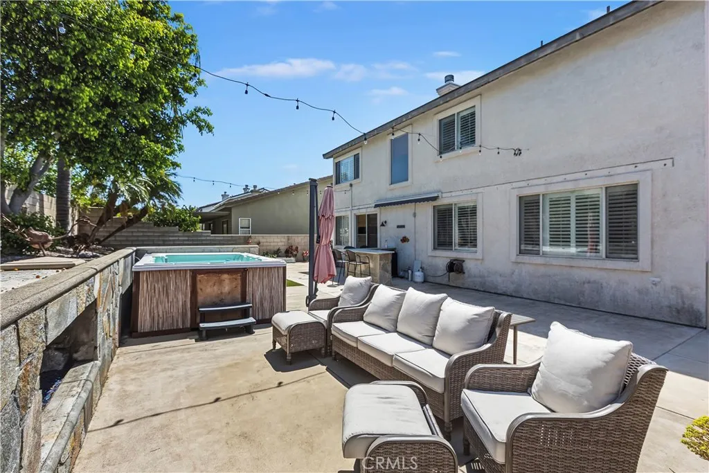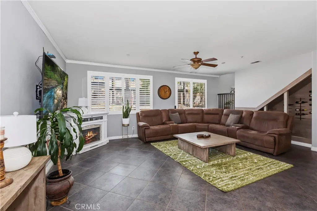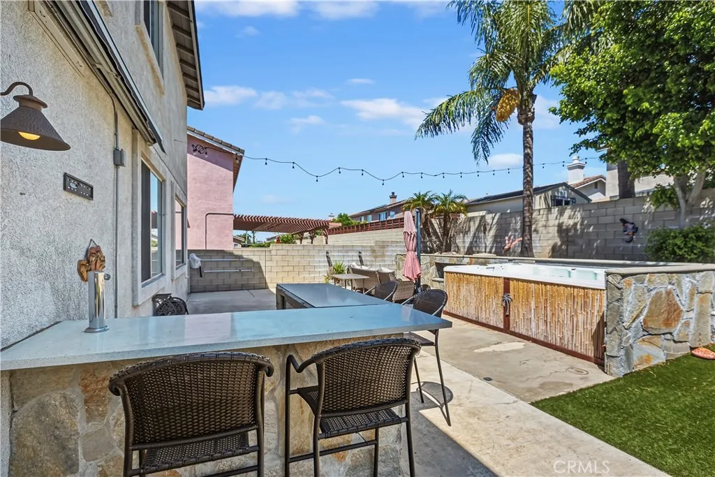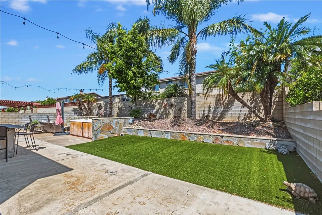 Opportunity knocks! This is a beautiful 2 story home nestled in North Fontana located in the desirable Etiwanda School District. It is a comfortable 3 bedroom, 3 bath home with a den downstairs that could easily be converted to a fourth bedroom. Downstairs utility closet has been converted to a dazzling wine nook. Sparkling clean, this property is move-in ready. Has a beautiful upgraded front door, newer exterior paint, tile flooring downstairs and carpeted stairs and bedrooms, along with shutters throughout. Sitting on a lot of 6,283 square feet, the back yard has a built in fireplace, low maintenance artificial turf, a swim spa and plenty of room for the kids and the pets. The 3-car garage is perfect for cars and lots of workspace. Located just South of the 210 freeway, this property is great for commuters and close to lots of great shopping. Don't miss this beauty.