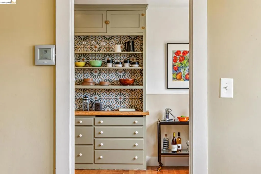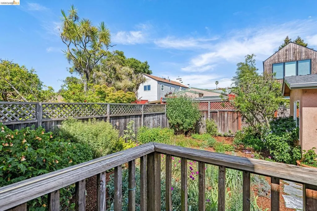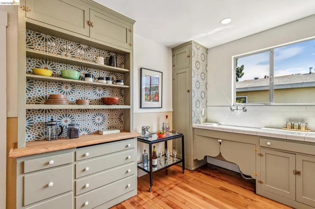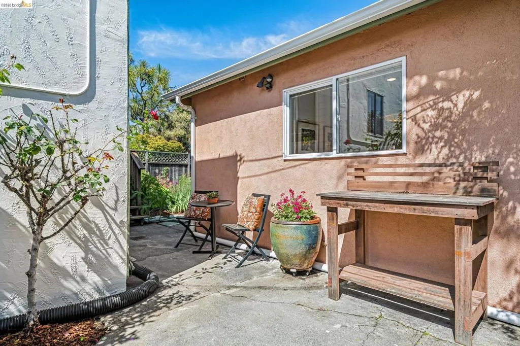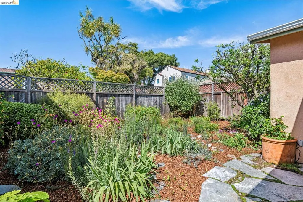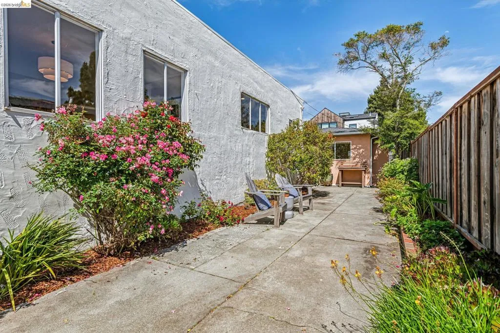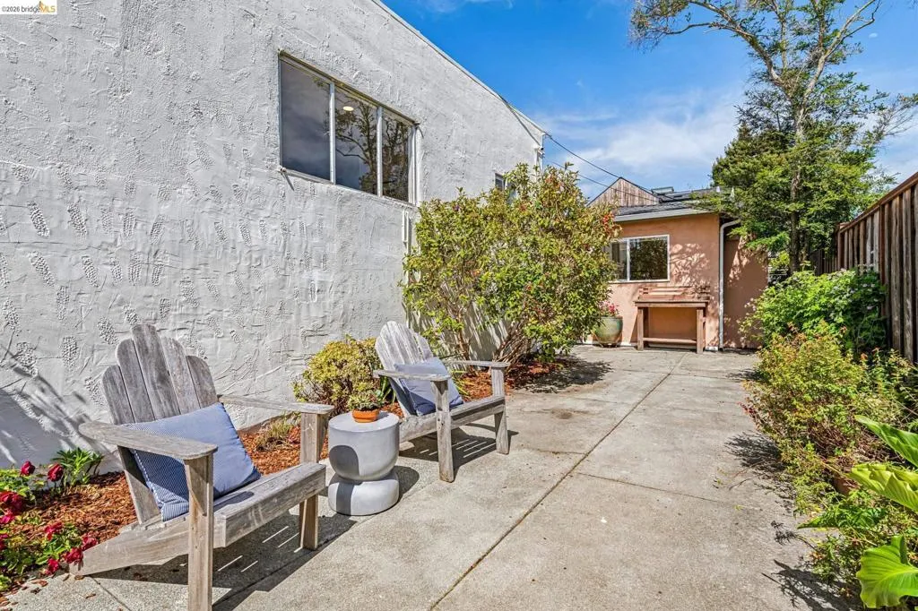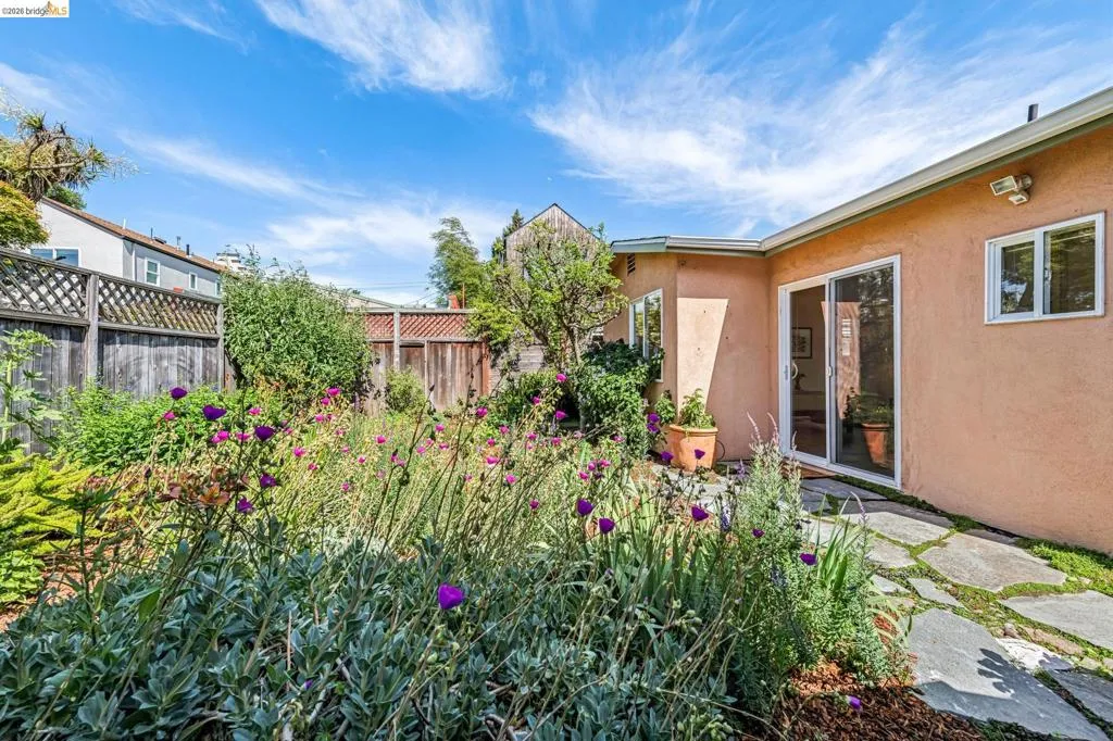 Sunny, vibrant, and full of charm, this Mediterranean-style residence in the Albany flats offers timeless character and rare flexibility with a fully permitted detached ADU. Rich in color, lush gardens, and preserved original details, this home lives beautifully inside and out. The 1,493± sq ft main house, built in 1928, features 3 bedrooms, a separate study/sunroom, and 2 full baths. A graceful archway connects the formal entry to the inviting living room, which features an original fireplace and built-in shelves. The spacious dining room accommodates a large table and is filled with natural light throughout the day. Much of the home retains its original hardwood floors. The thoughtfully renovated kitchen honors the home’s heritage with an original California cooler, a pie hutch, a wooden sink skirt, and Douglas fir floors. The old is married with new through the use of beautiful decorative tile, coordinated cabinetry, and carefully selected hardware, which was sourced to match thetch the original design. Mixed countertop surfaces create a bespoke, furniture-like feel. The primary suite includes an en suite bath and laundry facilities, while two additional bedrooms offer privacy near the second full bath. The separate plus room off the kitchen is ideal for a home office, sunroom, or creative space. Completed in 2006, the detached 488± sq ft ADU complements the home’s style with large terra-cotta hued tile floors and garden views. The full kitchen features full-size appliances and abundant counter space. Flexible studio living offers space for sleeping, dining, working, and relaxing. Perfect for guests, rental income, or multigenerational living. Outside, winding garden paths lead through flowers and fruit trees. A graceful weeping willow adds privacy from the street, while lemons greet you at the entrance. Separate driveways for the main house and ADU provide abundant off-street parking. Ideally located on Talbot Avenue, just moments to the neighborhood tot lot, Solano Avenue shops and restaurants, parks, transit, and bike routes. A rare opportunity to own a character-filled Albany property with income potential and versatile living options.