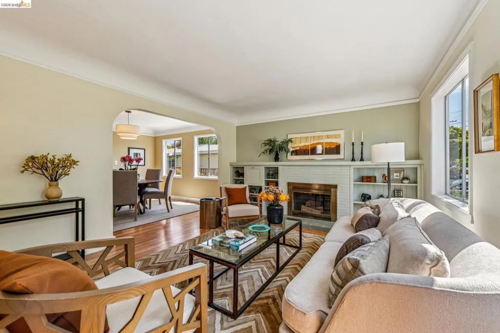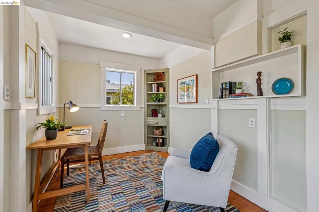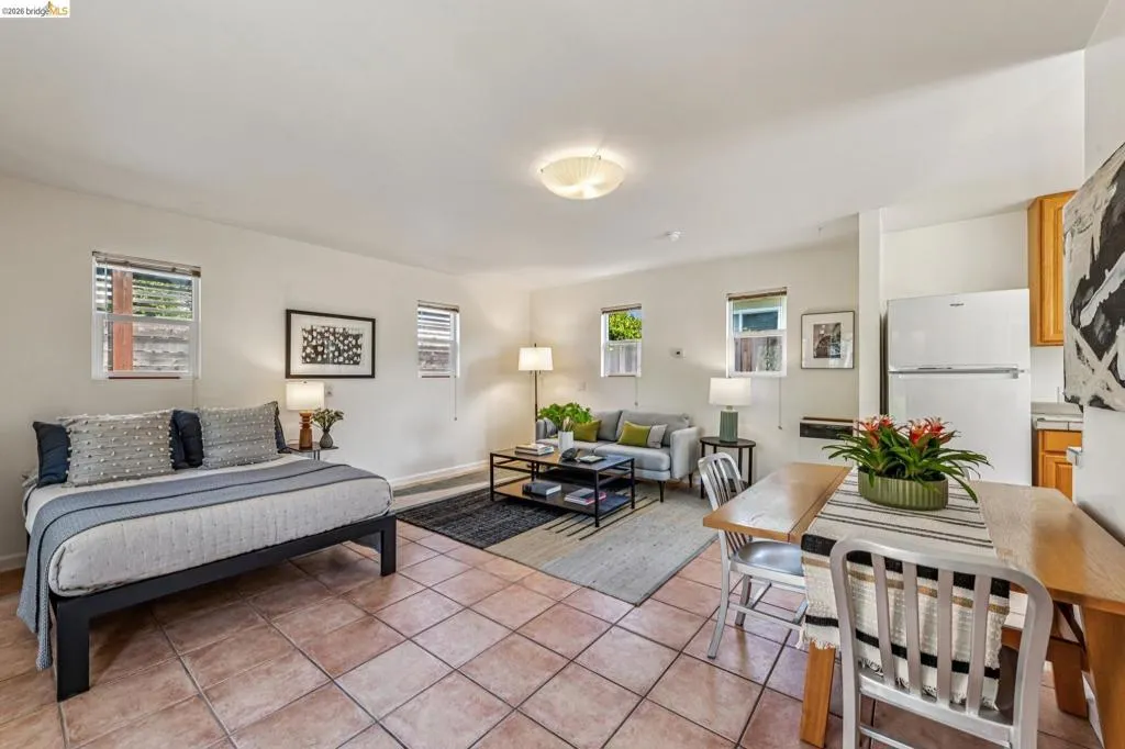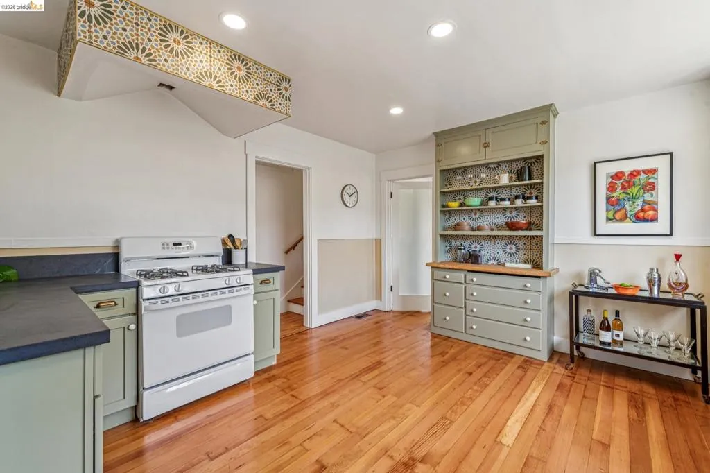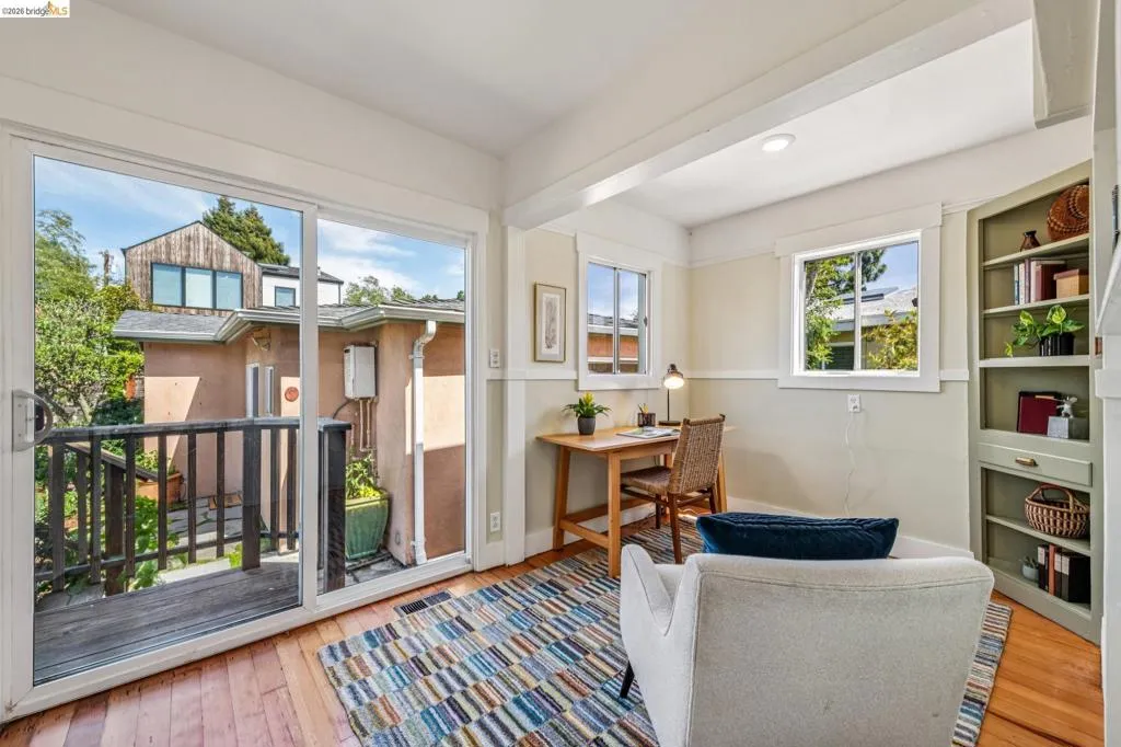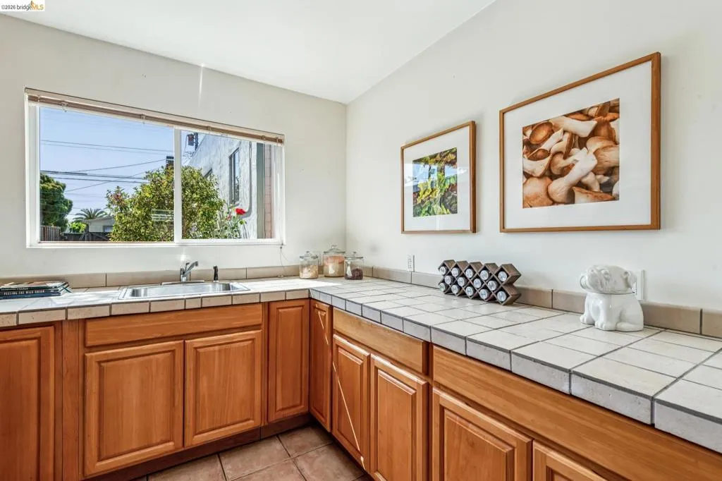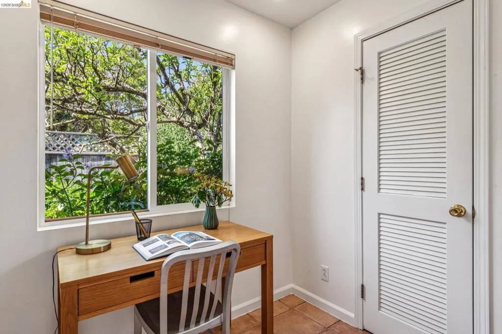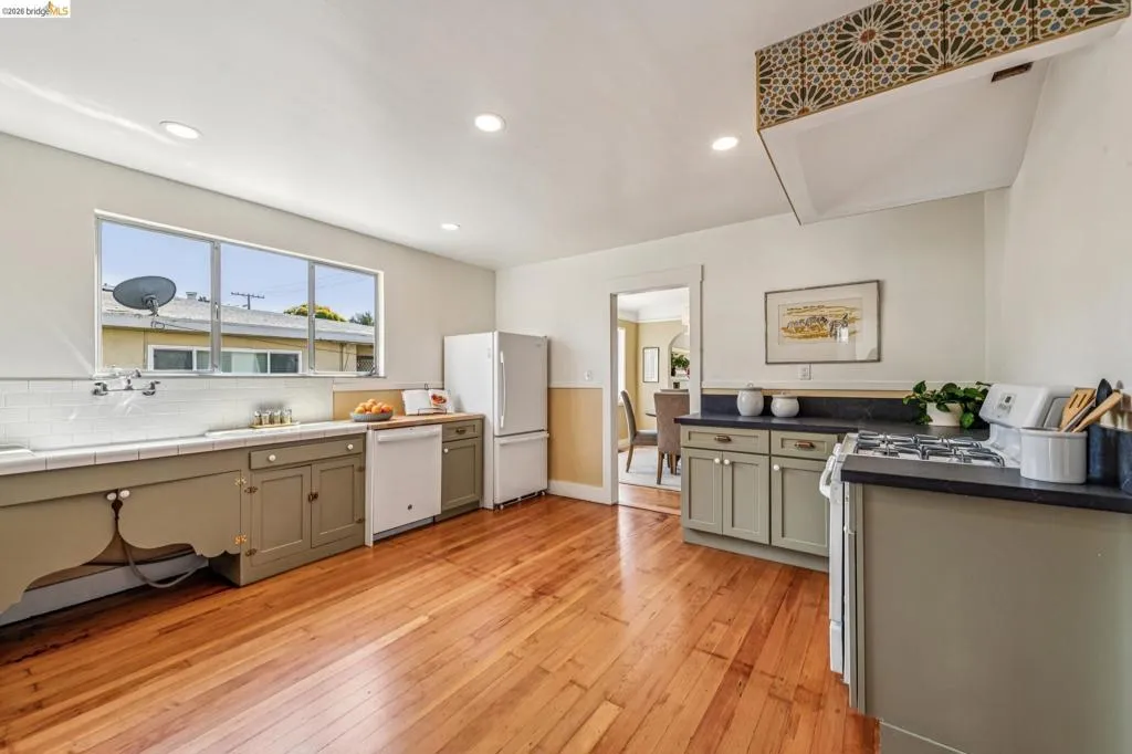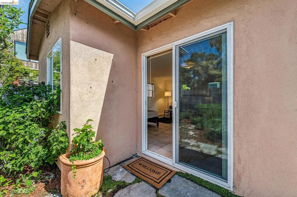 Sunny, vibrant, and full of charm, this Mediterranean-style residence in the Albany flats offers timeless character and rare flexibility with a fully permitted detached ADU. Rich in color, lush gardens, and preserved original details, this home lives beautifully inside and out. The 1,493± sq ft main house, built in 1928, features 3 bedrooms, a separate study/sunroom, and 2 full baths. A graceful archway connects the formal entry to the inviting living room, which features an original fireplace and built-in shelves. The spacious dining room accommodates a large table and is filled with natural light throughout the day. Much of the home retains its original hardwood floors. The thoughtfully renovated kitchen honors the home’s heritage with an original California cooler, a pie hutch, a wooden sink skirt, and Douglas fir floors. The old is married with new through the use of beautiful decorative tile, coordinated cabinetry, and carefully selected hardware, which was sourced to match thetch the original design. Mixed countertop surfaces create a bespoke, furniture-like feel. The primary suite includes an en suite bath and laundry facilities, while two additional bedrooms offer privacy near the second full bath. The separate plus room off the kitchen is ideal for a home office, sunroom, or creative space. Completed in 2006, the detached 488± sq ft ADU complements the home’s style with large terra-cotta hued tile floors and garden views. The full kitchen features full-size appliances and abundant counter space. Flexible studio living offers space for sleeping, dining, working, and relaxing. Perfect for guests, rental income, or multigenerational living. Outside, winding garden paths lead through flowers and fruit trees. A graceful weeping willow adds privacy from the street, while lemons greet you at the entrance. Separate driveways for the main house and ADU provide abundant off-street parking. Ideally located on Talbot Avenue, just moments to the neighborhood tot lot, Solano Avenue shops and restaurants, parks, transit, and bike routes. A rare opportunity to own a character-filled Albany property with income potential and versatile living options.