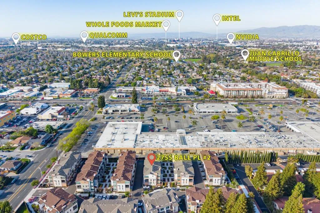 Nestled in a quiet and peaceful community with a beautiful setting and generous space between buildings, this stunning 2 beds, 2.5 baths townhome was built just 5 years ago and is ideally located in the heart of Santa Clara. This beautiful home features an open and versatile floor plan with abundant natural light throughout. The main level offers an open-concept living and kitchen area, perfect for everyday living and entertaining. The modern kitchen features gorgeous wood cabinetry, granite countertops, full backsplash, stainless steel appliances, and a breakfast bar. A private patio off the living area creates ideal indoor-outdoor living. Upstairs features a generously sized primary suite with double sinks and a walk-in closet. Additional highlights include central A/C, double-pane windows, inside laundry, and a two-car garage with extra space for storage. Centrally located with easy access to San Tomas Expressway and nearby bike trails. Close to major tech companies including Apple, Nvidia, Google, and Cisco, and just a short drive to Levis Stadium, Costco, Whole Foods, shopping, and dining.