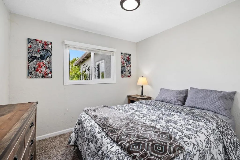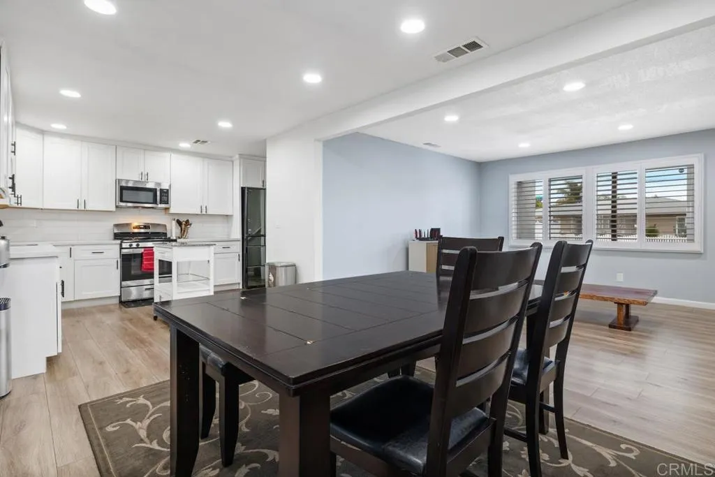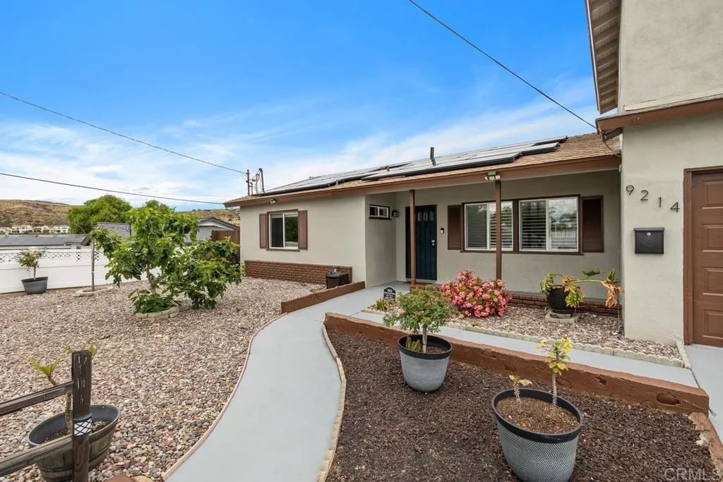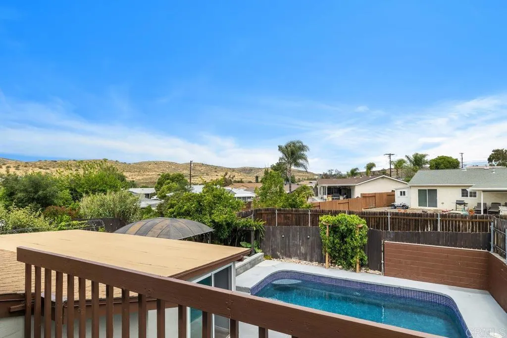 Welcome to 9214 Fenway Rd, Santee. A beautifully updated 4 Bedroom, 3 Bath, Pool house in this highly desirable neighborhood near Santee Lakes. Step inside to discover a bright, open concept living area. Stainless steel kitchen with quartz countertops with tiled splash. Three bedrooms downstairs and a large primary bedroom suite with a walk-in closet upstairs with step out balcony with hillside views. Dual pane windows and central AC. Paid-off newer Solar (18 panels). Gas heated pool with spa. Enjoy your raised garden beds and covered patio. Enjoy hiking, biking, fishing, and birding all nearby. Carlton Hills Elementary around the corner.