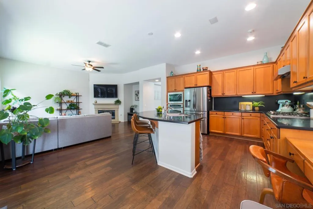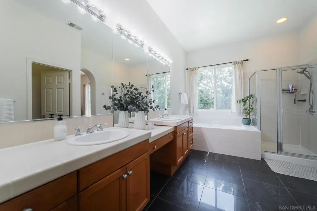 Welcome Home! A rarely available single-level hacienda-style home on a premium corner lot in the highly desirable McMillin Lomas Verdes community of Otay Ranch. This 4 bedroom, 2 and a half bathroom, 3 car garage home has a well designed floor plan offering flexibility for guests, work, or multi-generational living. Inside soaring ceilings, abundant natural light, and a spacious open floor plan connect the living room, dining room, and family room with cozy fireplace, creating both formal and casual spaces to relax and entertain. The gourmet kitchen features stainless-steel fixtures, custom cabinetry, gorgeous countertops, and a center island ideal for gathering and entertaining. The luxurious primary suite offers a large walk-in closet and en-suite bath with oversized soaking tub and walk-in shower. It also has a sliding glass door with access to it's own personal patio area. Designed for convenience, the home includes a laundry room, two separate attached garages with epoxy flooring, central A/C, central vacuum, and a water softening system. Enjoy the backyard with a patio cover that includes built in heaters for cool nights. Located near trails, greenbelts, shopping, dining, and entertainment, with All Seasons Park and a tot lot/park across the street, this home captures the best of East Chula Vista and Otay Ranch living. The home is one level and has no interior steps.