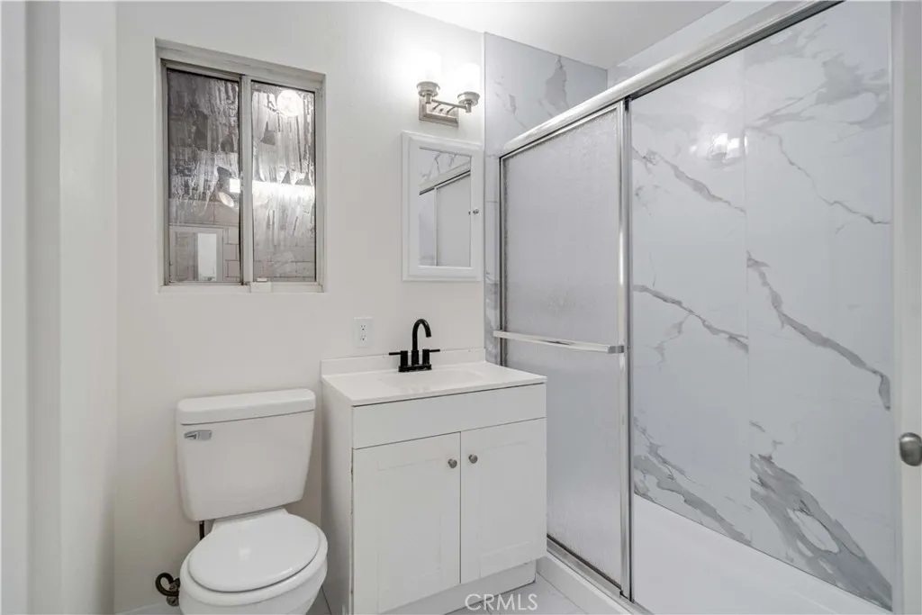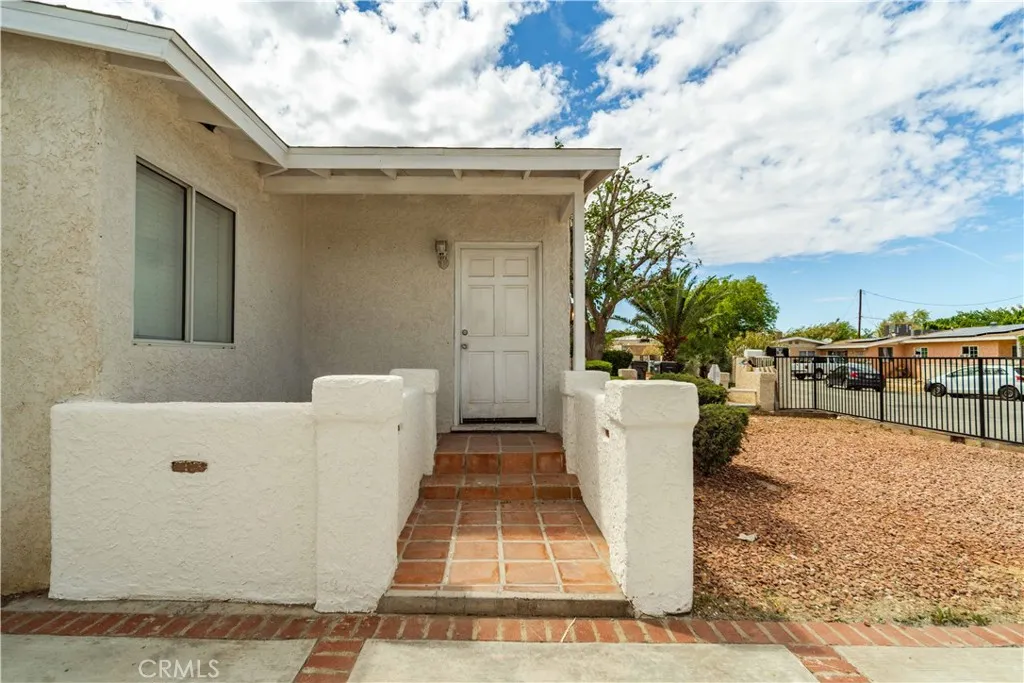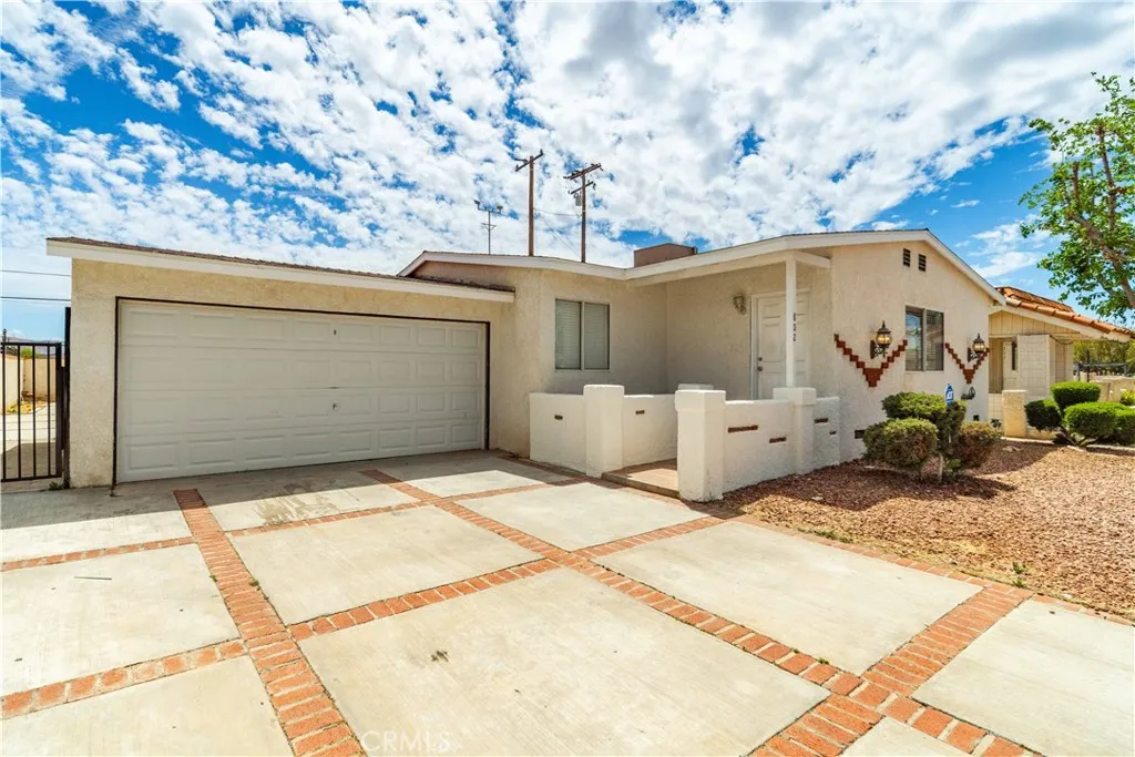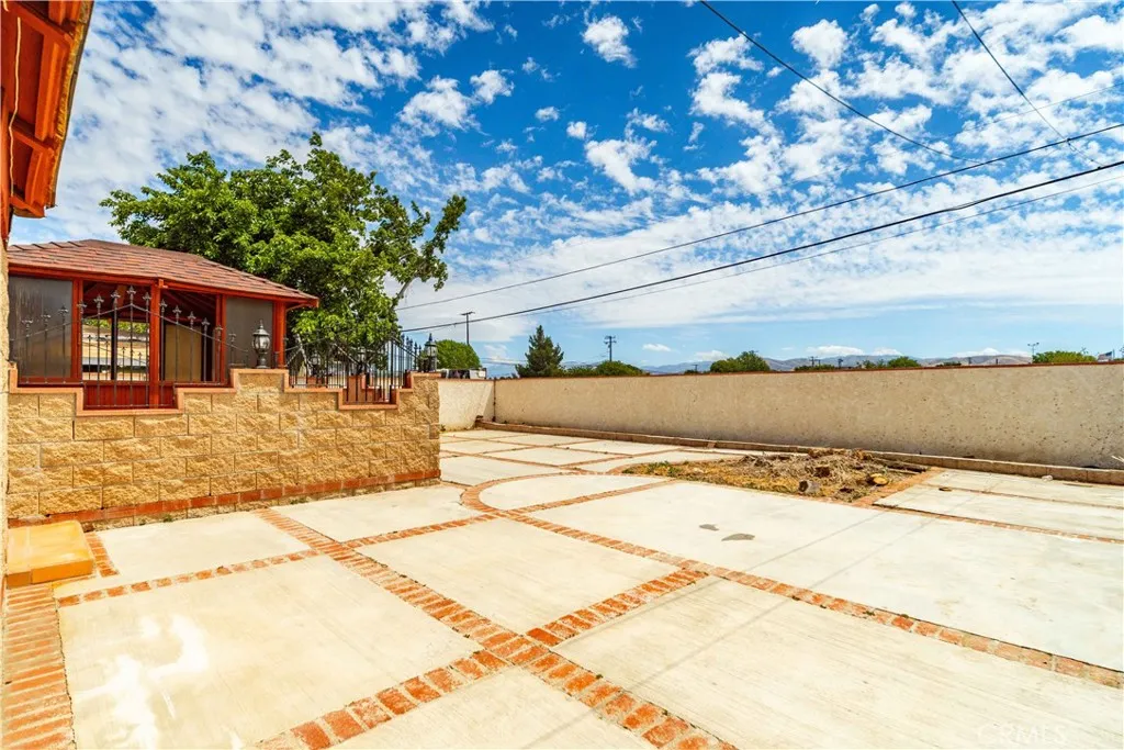 Charming East Palmdale 3 Bed 2 Bath Opportunity! With updated bathrooms, flooring and countertops, this home is ideal for a first time home buyer or someone looking for a rental income investment. Approaching the home, you will appreciate the tidy landscaping and lovely brick accents in the driveway and the front of the home. Entering, you will enjoy the spacious living room that flows nicely to the dining area. From the dining space, you enter the kitchen with updated countertops and convenient access to the laundry area. Just past the laundry area, you enter the hall that leads back to the living room, the 3 bedrooms and centrally located bath. This bath is updated nicely with a large walk in shower, vanity and flooring. In the primary bedroom you will find access to the backyard with a unique bonus feature of a 3 piece bath, as well as an enclosed patio and a third space that would be fantastic for indoor/outdoor entertaining and perhaps a spa! In addition, the remainder of the backyard is low maintenance and provides additional space for entertaining. Come see this property today and imagine what your future holds!