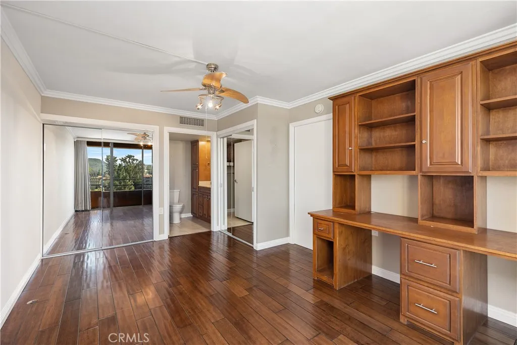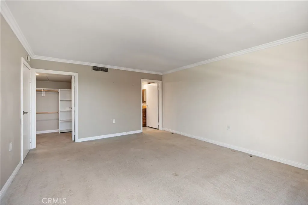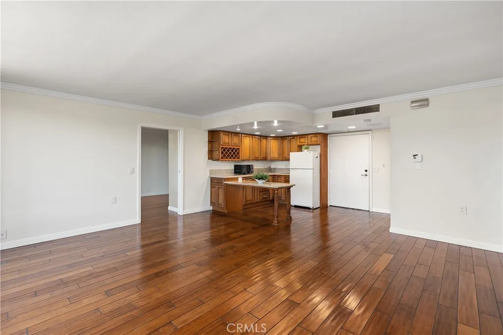Immaculate end unit condo in the Laguna Woods Towers with panoramic hill and neighborhood views. Updated home is light and bright. This 2-bedroom, 2-bathroom unit offers a spacious living and dining area with floor to ceiling sliding doors that open to a long, covered Juliet-style balcony, perfect for enjoying fresh air and the scenery. The open kitchen features abundant wood cabinetry, granite counters, a breakfast bar peninsula, built in wine rack, and recessed lighting. The primary suite enjoys the views and includes a walk-in closet with built-in shelving and a private bathroom with an updated granite vanity. The second bedroom also has slider access that opens to the balcony and includes a full wall built-in desk and cabinetry, ideal for a home office, hobby room, or guest space. There is a guest bathroom with a step-in shower and grab bars. Crown molding, smooth ceilings, Engineered wood flooring in the main living areas, and abundant storage complete the home. Rent includes a $500 monthly dining credit for meals in the Crystal Dining Room or Cafe Latitude 50, housekeeping visits every two weeks, utilities, cable TV, free laundry facilities, Concierge services, 24-hour onsite maintenance, and many activities, along with shared outdoor patios. Shuttle bus service arrives at the front door and can take you throughout the community and local shopping. As a Laguna Woods Village resident you will also be able to enjoy activities at 7 clubhouses, 5 swimming pools, private community golf courses (27 hole championship course and 9-hole par executive courses), tennis courts, lawn bowling greens, shuffleboard courts, craft and hobby workshops, garden centers, game rooms, billiard rooms, gym, horse stables, a very active theater and arts community, and library. Over 200 social clubs to join. This is all within a beautifully landscaped, gate-guarded golf community convenient to freeways, shopping, restaurants, outstanding medical facilities and of course, the beach. Base rent is for one occupant.