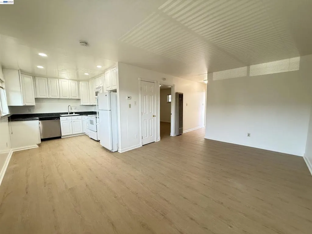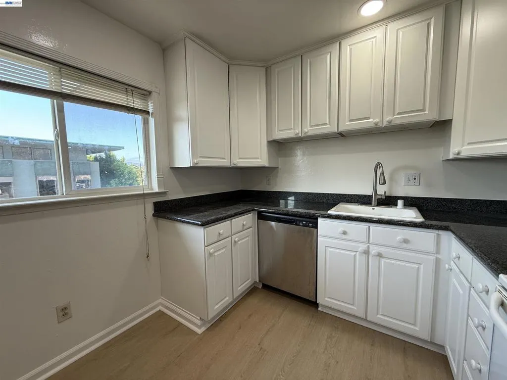 Spacious upper level 1 bedroom apartment unit in the heart of downtown Walnut Creek. The spacious unit is freshly painted and has newly installed plank wood flooring throughout. Wonderful layout with large living room, kitchen with granite counters, dishwasher, microwave and refrigerator. On-site coin operated laundry room. This unit does not have an on-site parking space but street parking is abundant. Excellent location within walking distance to Safeway, banks, downtown restaurants, and nearby Walnut Creek BART station. Available Immediately 1-year lease min. No pets