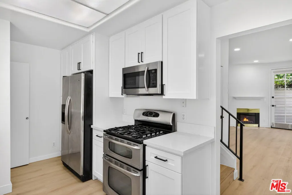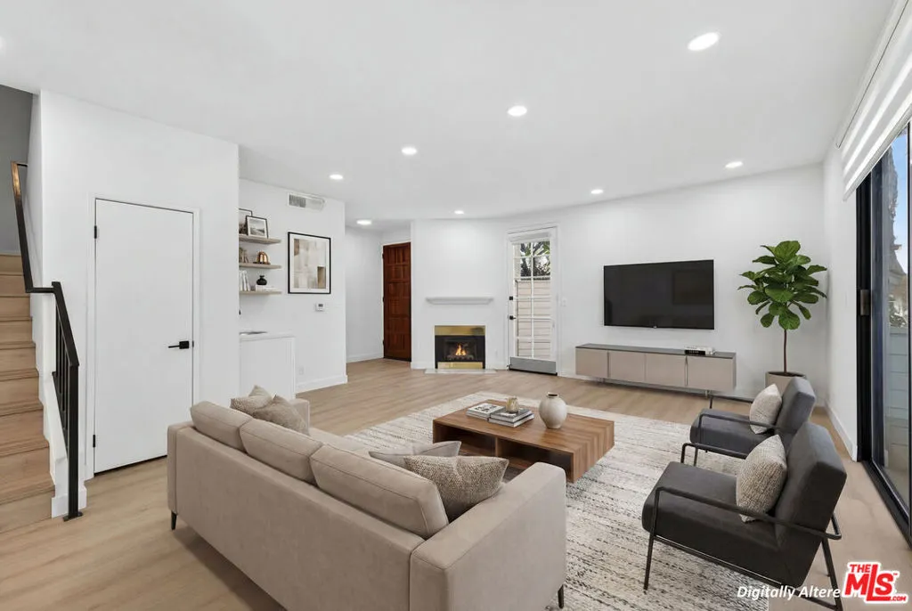 Front-facing townhome on 11th St. between Olympic Blvd & Pico Blvd in an intimate 5-unit community. Built in 1990 and thoughtfully upgraded, this residence offers more modern construction and a lower effective age than many competing units. Ideally set on a wide, tree-lined street in the heart of Santa Monica, just minutes to the beach, Santa Monica College, and with easy access to the I-10 and I-405. Light-filled with ~9 ft ceilings, the spacious living room features a working fireplace, custom lighting, and high-end laminate flooring throughout. The open layout is anchored by oversized countertopsperfect for dining, entertaining, or working from home, plus Hunter Douglas Zebra Aero Shade window coverings throughout. Upstairs includes two generously sized bedrooms, each with en-suite baths. The primary suite offers a jacuzzi tub and separate shower. A convenient powder room on the main level adds everyday functionality. Enjoy seamless indoor-outdoor living with a private front patio, expansive side patio ideal for entertaining, and an additional backyard space. Gated entry, two side-by-side secured parking spaces, bicycle storage, large under-stair storage, and HOA earthquake insurance complete the offering. A rare, move-in-ready opportunity in one of Santa Monica's most desirable central locations.