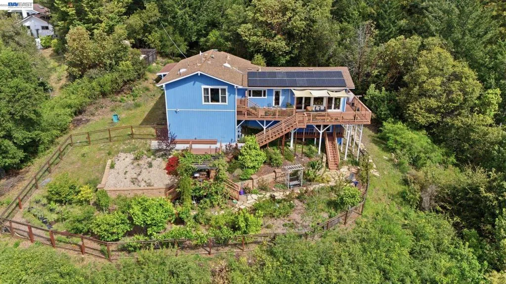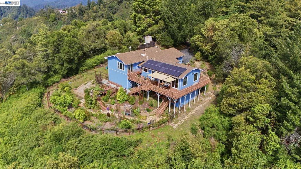 Beautifully remodeled and thoughtfully designed for both privacy and convenience, this light-filled mountain retreat captures stunning ocean and mountain views while offering easy access to Highway 17 and just 15 minutes to downtown Los Gatos. Designed for comfortable mountain living, the home features 3 bedrooms and 2.5 bathrooms, an updated kitchen with quartz countertops, stainless steel appliances, and a reverse osmosis drinking water system. The open concept inviting living room showcases vaulted ceilings, bay windows that bring in abundant natural light, and an electric fireplace that creates a warm, welcoming atmosphere. The spacious primary suite opens directly onto the deck and includes radiant subfloor heating in the primary bathroom for everyday comfort. Downstairs, a large ADU-style area with a private entrance (not included in the square footage) offers flexibility for extended family, guests, a home office, or potential rental use. Modern efficiency meets self-sufficiency with central heating and A/C, solar panels connected to a Tesla Powerwall system installed in 2023, and two universal EV charger outlets installed in 2021. Outdoor living is exceptional. Expansive wood decks surround the home, creating multiple spaces for entertaining or relaxing in nature. The fenced backyard is beautifully landscaped with flowers, more than 20 different sweet fruit trees, and several varieties of grapevines for year-round enjoyment. Additional amenities include a two-car garage, an additional carport, and a dedicated laundry area. This inviting property blends tranquility, modern comfort, and breathtaking natural scenery—an exceptional opportunity to enjoy the very best of Los Gatos mountain living.
