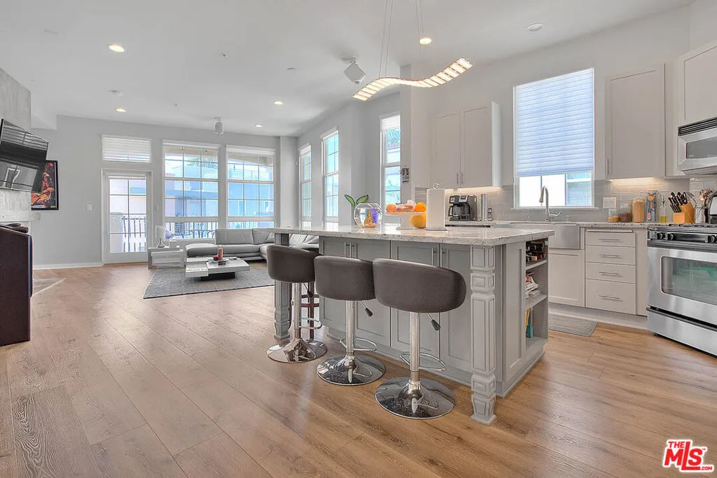Welcome to The Lofts at Playa Vista, where industrial chic meets coastal luxury. This rare, light-filled end unit showcases the largest floor plan in the building (approx. 1,440 sq.ft.) with soaring 10-ft ceilings, exposed ductwork, and stylish modern updates throughout. Beautifully remodeled by the original owner, this 3-bedroom, 2-bath home offers an open-concept layout with new luxury vinyl plank flooring, designer lighting, and custom finishes that elevate every space. The gourmet kitchen features granite countertops, a center island with dual faucets, stainless steel appliances, and a farmhouse sink, perfect for entertaining. Relax in the spacious living area with a concrete accent fireplace and reclaimed wood mantle, or retreat to the luxurious primary suite with a walk-in custom closet and spa-inspired bath with steam shower, rain head, and dual vanities. Enjoy your private balcony with ambient lighting, ideal for BBQs or quiet evenings. Additional highlights include motorized sheer shade window treatments, fresh paint, and dual-pane windows for comfort and efficiency. Residents of Playa Vista enjoy resort-style living with access to multiple pools, spas, fitness centers, sport courts, dog parks, playgrounds, and beach shuttles. Located across from Concert Park with restaurants, cafes, and neighborhood favorites like The Gulp and Coffee Bean steps away, this home offers the perfect blend of style, space, and convenience. Includes 2 side-by-side parking spaces, guest parking, and all the amenities that make Playa Vista one of L.A.'s most desirable communities.