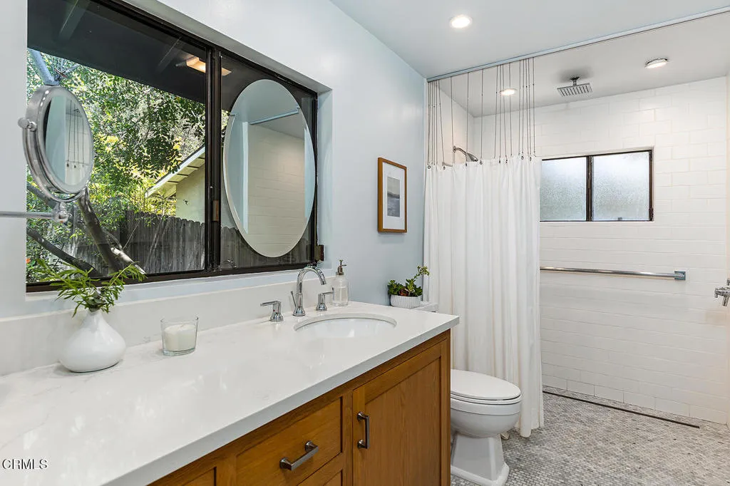 Tucked away on a quiet cul-de-sac in Pasadena's highly sought-after Linda Vista neighborhood, 1435 Afton Street is a striking mid-century contemporary residence featuring a split-level design, set on an expansive 30,677 sq ft lot. Defined by its architectural character, the home showcases dramatic vaulted ceilings, exposed beams, and clerestory windows that fill the interiors with natural light while creating a seamless connection to the surrounding landscape. A formal entry leads into the open floor plan, where generous living and dining spaces are anchored by a stunning family room with walls of glass and sliding doors that open to a private patio and lush grounds -perfect for indoor-outdoor living and entertaining. The spacious kitchen is filled with natural light and offers a functional, well-designed space that integrates seamlessly with the home's open layout. The flexible design includes five well-proportioned bedrooms, ideal for guests, a home office, or multigenerational living, while the primary suite offers a peaceful retreat with tree-top views. Set amid beautiful, mature landscaping, the expansive grounds provide exceptional privacy and multiple areas for relaxation and gathering, highlighted by a sparkling pool thoughtfully integrated into the natural setting. This is a rare opportunity to own a distinctive architectural home in one of Pasadena's most desirable neighborhoods, just moments from the Rose Bowl, Old Town Pasadena, and some of the area's best dining, shopping, and outdoor amenities.
