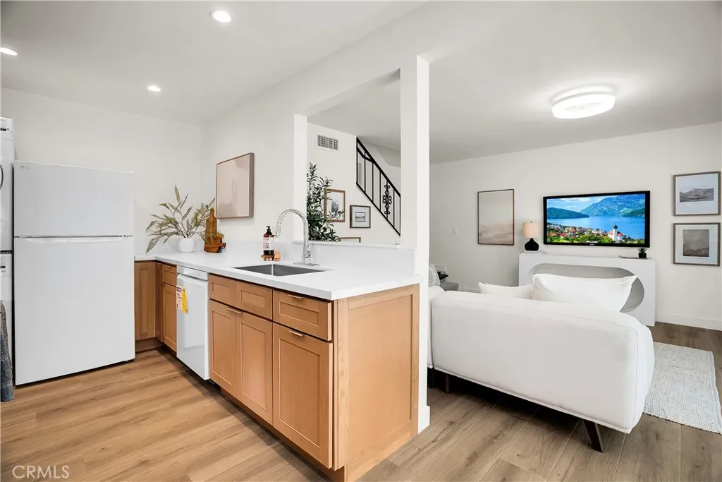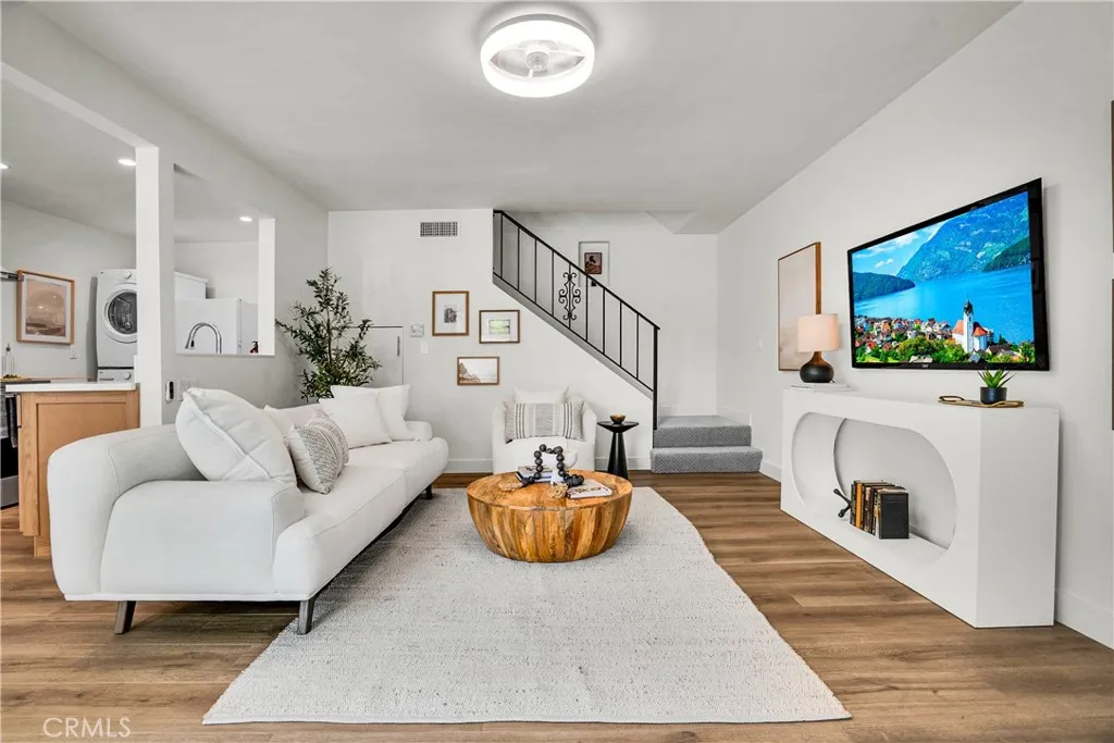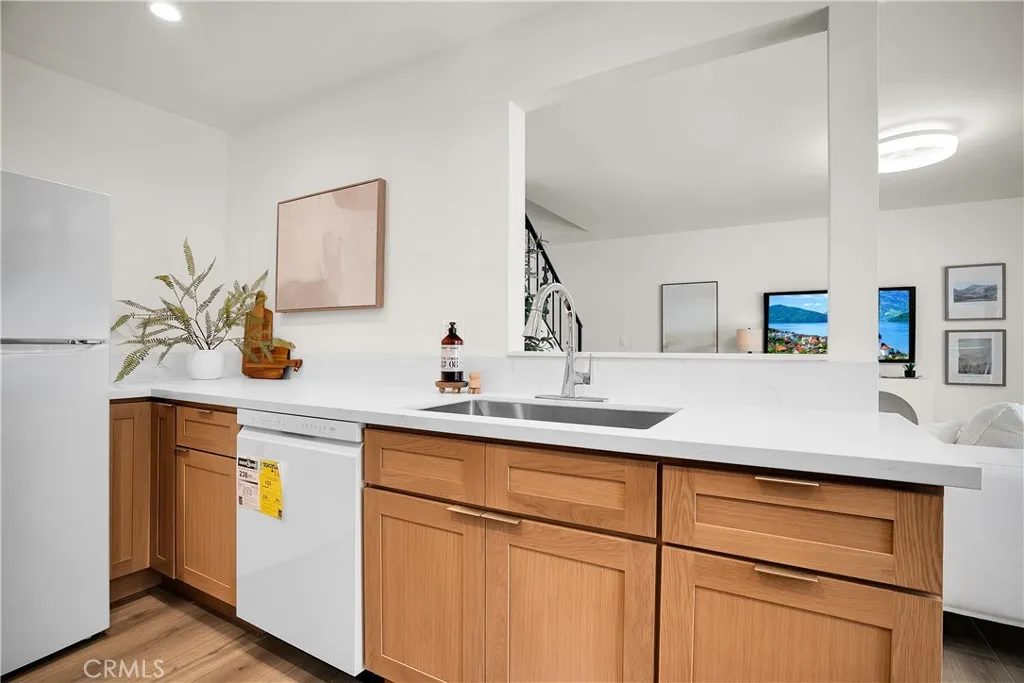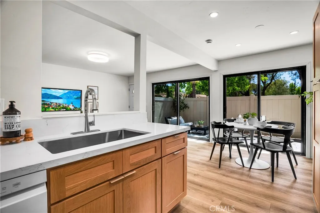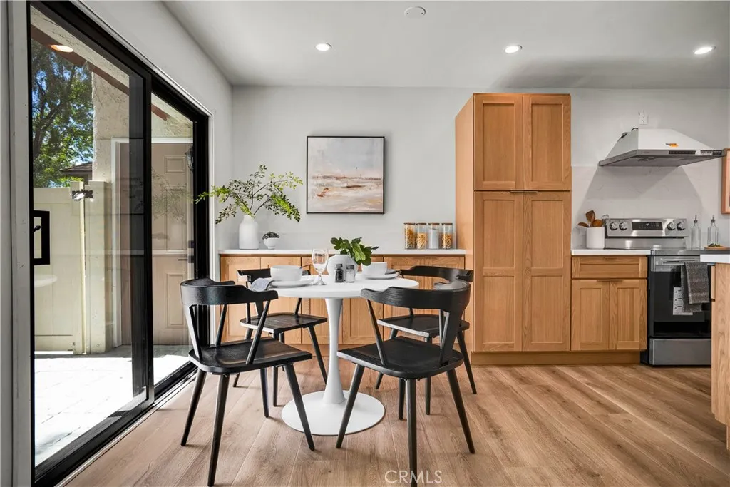 Best Value in Village Green! Fully Remodeled End Unit w/ Private Patio & Garage. Fully renovated from exterior to inside the walls with all new materials—this home offers a true turnkey, worry-free living experience. Located in a private end-unit setting within the highly desirable Village Green community in the heart of Westlake Village, this beautifully updated two-story home stands out from others in the complex. Step into a bright, open-concept interior featuring wide-plank flooring, smooth ceilings, recessed lighting, and abundant natural light. The spacious living and dining areas flow seamlessly to a private patio through oversized sliding glass doors, creating effortless indoor-outdoor living. The completely remodeled kitchen showcases warm wood cabinetry, quartz countertops, stainless steel appliances, a deep sink, and a functional peninsula ideal for both everyday living and entertaining. Additional highlights include updated systems, in-unit laundry, an attached garage, and enhanced privacy as a premium end unit. Village Green offers lush greenbelts, pool & spa, sports courts, recreation room, and guest parking. Ideally located near shopping, dining, grocery stores, top-rated schools, and easy freeway access.