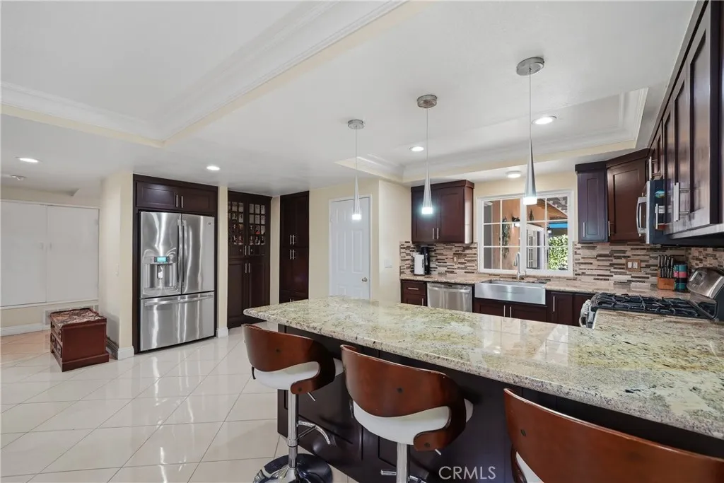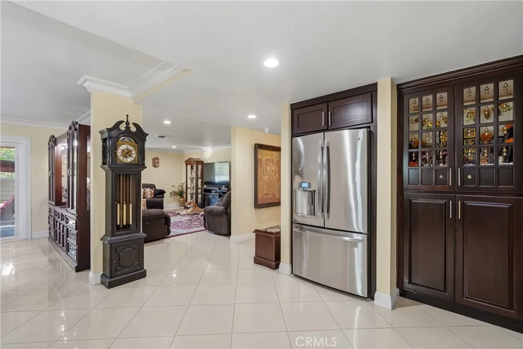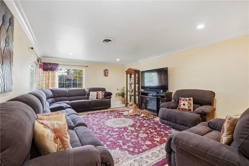 Experience refined Southern California living in this exquisitely upgraded single-level Tustin residence, perfectly positioned on an expansive 7,252 sq. ft approximately corner lot. Designed for those who appreciate elevated style and effortless indoor-outdoor living, this exceptional home blends modern sophistication with timeless comfort. A grand, light-filled interior welcomes you with an elegant wrap-around living room featuring a custom entertainment wall, fireplace, and seamless flow into the formal dining space. The chef’s kitchen is a true showpiece—appointed with pristine brown cabinetry, a striking Granite counter tops, premium KitchenAid built-in refrigeration, and a dedicated beverage station. Large sliders in the great room open wide to create a harmonious connection to the outdoor lounge, and tranquil views of lush greenery. The private primary suite offers a spacious custom enlarged walk-in closet and a beautifully remodeled ensuite bath. Three additional bedrooms provide generous comfort. Throughout the home, refined finishes such as crown molding, and Tile flooring, dual-pane windows, recessed lighting, and updated interior doors elevate the living experience. Step outside to your own resort-style sanctuary—an expansive backyard framed by mature landscaping. Multiple entertaining areas, and a collection of seasonal fruit trees create an atmosphere of relaxation and luxury. Modern conveniences include fully paid solar(29 panels), paid security cameras(12) and a spacious 2-car garage. Located on a quiet cul-de-sac in the heart of Tustin, this residence offers unmatched privacy while remaining moments from premier shopping, dining, parks, award-winning schools, and easy access to the 5, 55, and 261 freeways. A rare offering that combines sophistication, comfort, and an extraordinary lifestyle setting. * Around $200K upgrades including Roof and bathrooms in 2023, Heating system in 2022, AC Units, Ducts, Backyard, Fence etc.,
