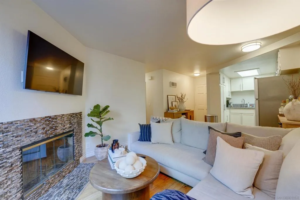 In the heart of Point Loma Village, this 2 bedrooms, 2 full baths, beautiful luxury floors, with fireplace in living room and spacious private patio is a nice surprise! A must see!! Includes tandem 2 parking spaces in secured community underground garage. Walking distance to restaurants & cafes, Point Loma Sportfishing, Americas Cup Harbor, Shelter Island, Liberty Station, minutes drive to San Diego Airport and Downtown.