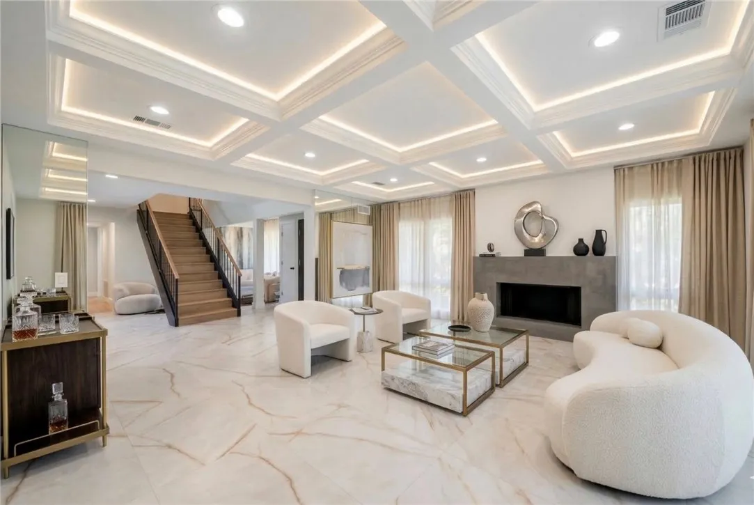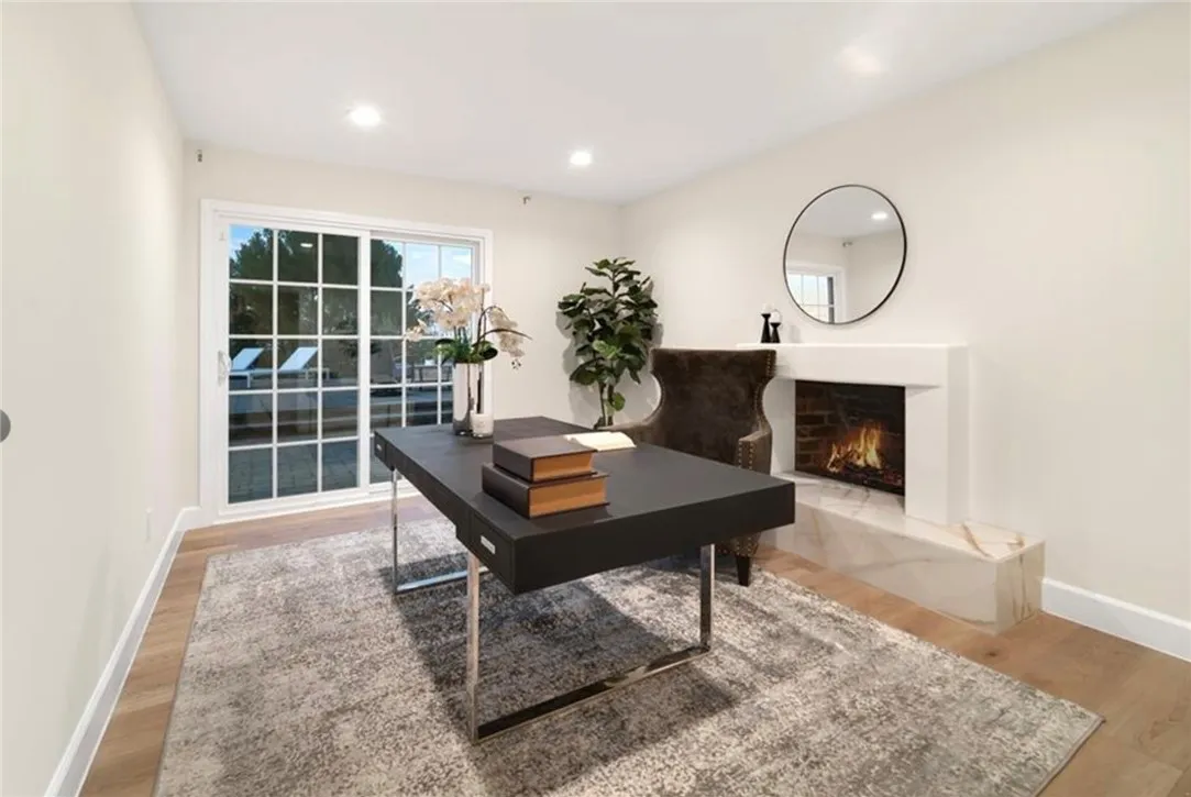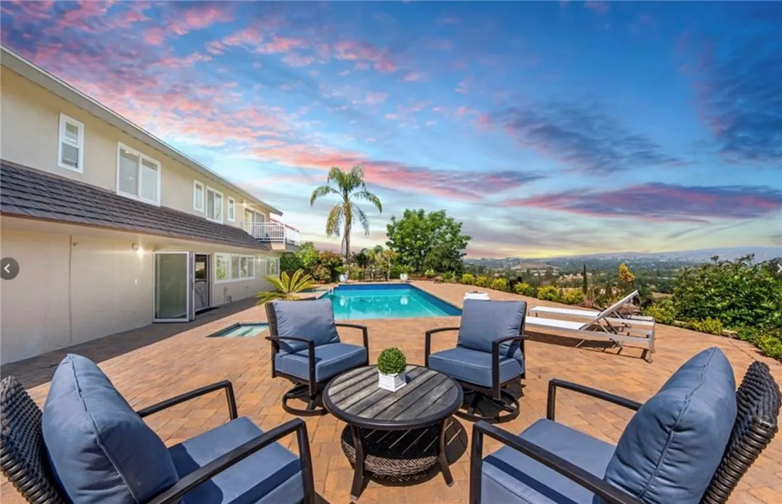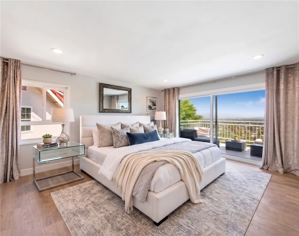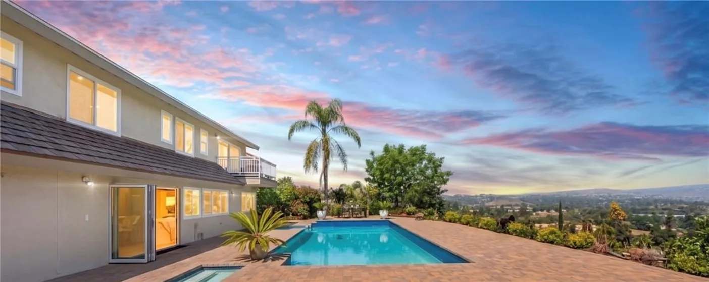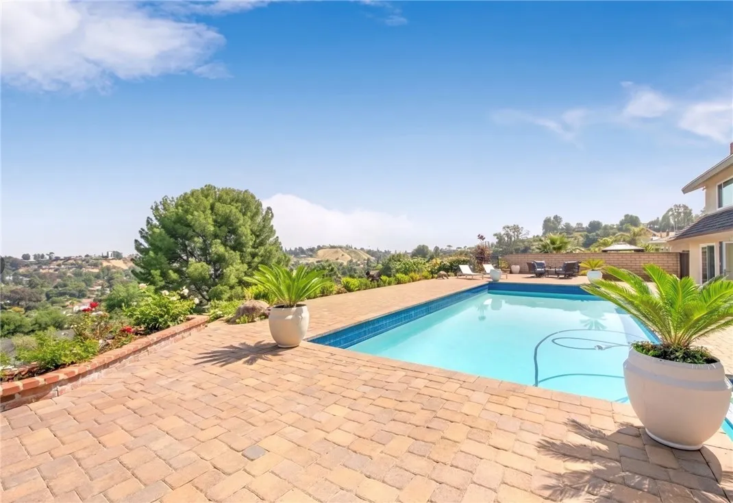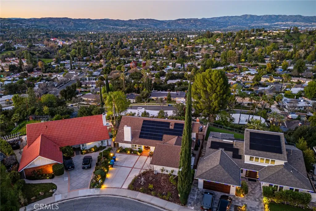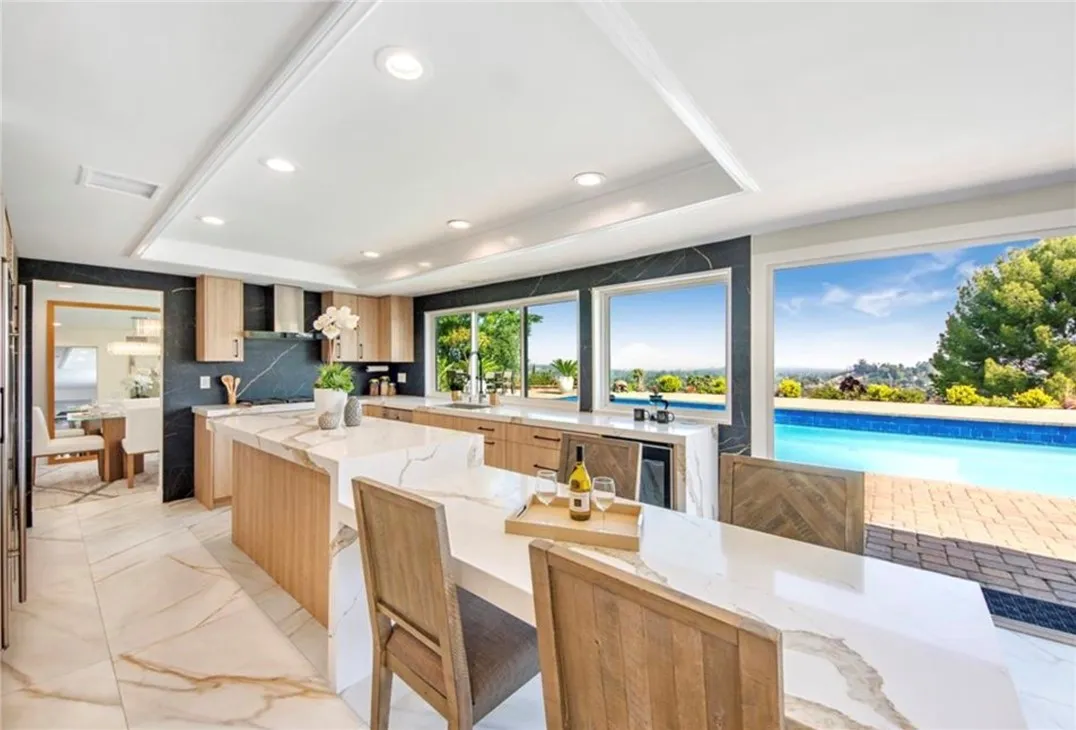 Perched above the sought-after Mulwood neighborhood of Calabasas, this contemporary home commands breathtaking panoramic views of the city and surrounding valley—truly a must-see. Thoughtfully designed with luxury and comfort in mind, every detail of this exceptional residence has been meticulously curated. The home features five spacious bedrooms and three beautifully remodeled bathrooms, enhanced by abundant natural light, recessed lighting, ample storage, and refined high-end finishes throughout. Wide-plank wood flooring paired with elegant marble surfaces flows seamlessly through the home, adding warmth and sophistication to its clean, modern aesthetic. At the heart of the home is a custom gourmet chef’s kitchen, a true showpiece outfitted with premium Wolf appliances, a Sub-Zero refrigerator, waterfall-edge countertops with accent lighting, and dramatic accordion-style glass doors that create a seamless indoor-outdoor living experience. The primary suite offers an expansive private balcony with sweeping views, a generous walk-in closet, and a luxurious spa-inspired bathroom. Situated on a quiet street, the outdoor space is equally impressive, featuring a fully hardscaped yard with a sparkling pool and spa, ideal for entertaining or unwinding under the open sky. Additional highlights include owned solar panels that dramatically reduce utility costs, a brand-new HVAC system, no HOA fees, and placement within the highly sought-after Las Virgenes Unified School District, all just minutes from Calabasas’ premier shopping, dining, and entertainment. NO HOA | LAS VIRGENES SCHOOL DISTRICT