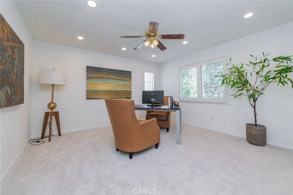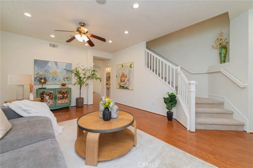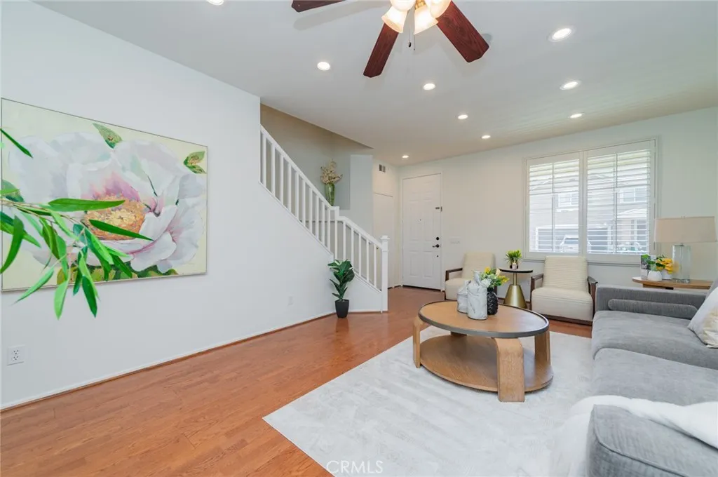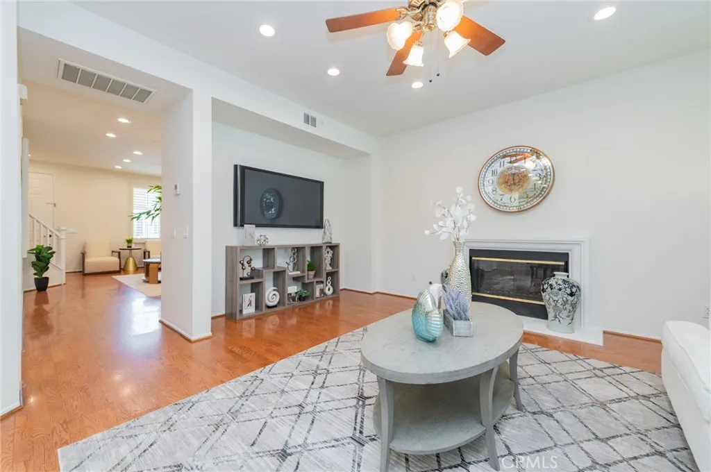 Rarely available plan one, single-family residence showcasing 4 bedrooms, 2.5 bathrooms, 2273 sqft of interior space, 5280 sqft lot with an attached 3-car garage in the planned community of Harvard Square in Irvine. Upon arrival, you are immediately greeted with the beautiful curb appeal with a white picket fenced front porch and the extra wide extended driveway. This home features a unique trapezoid-shaped lot with a wider side yard than most homes in the area. Upon entry, the foyer welcomes you to a spacious living area, perfect for all your special guests. Currently staged as a formal living room, it can also be served as a flex room, large enough to fit a grand piano. A secondary living/ family area is situated at the back of the home with a romantic fireplace and an open floor-plan to the dining room and the newly renovated kitchen. Kitchen upgrades include a new quartz countertop, backsplash, newly painted cabinets with new vintage knobs and equips with new refrigerator, new cooktop range, new exhaust vent hood and new under cabinet lighting. The U-shape kitchen offers plenty of storage space and comes with an utility island to assist you with everyday cooking and entertaining. Kitchen/ dining area has direct access to the entertainer’s dream backyard. Enjoy sunny California with the lush green landscaped yard with mature trees. The perfect escape for morning coffee and relaxing in the afternoon. Newly installed carpet on stairs and throughout upstairs. New LVP installed in upstairs bathrooms and laundry area. All four bedrooms are located upstairs. The master bedroom features a double-door entry and two separate closets with built-in shelves. A secondary bedroom is conveniently located next to the master, could be used as an office or a guest room. Two additional bedrooms at the opposite end of the hallway sharing a full bathroom with extra storage cabinets in the hallway. Laundry room is conveniently located upstairs with a brand new washer and dryer. Additional upgrades including newly painted interior, new electrical outlets, new energy saving LED light bulbs, EV charging inside the garage and a secured side gate. Harvard Square is a gated community with various HOA amenities and events throughout the year. There is a large sports park area in the center that offers many activities for all ages. Conveniently located near award winning Irvine schools, freeways, restaurants and shopping. Low HOA and no Mello Roos. Come visit today!