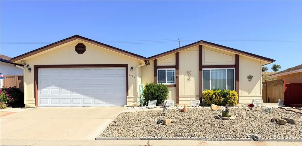 Welcome to Quail Meadows East at 3420 Bent Tree Drive, a desirable 55+gated community offering a peaceful lifestyle. This 2-bedroom, 2-bath home features a functional and inviting open layout with a spacious, light-filled living area, dining space, and a kitchen with a breakfast bar. A sliding glass door off the dining area provides seamless access to the backyard patio, along with the two-car garage and detached storage shed provides extra space for storage or hobbies. Just off the main living area, the hallway leads to the guest bedroom with a generously sized closet, the indoor laundry room, and the guest bathroom featuring quartz countertops, vinyl flooring, and a convenient walk-in shower. The primary suite offers a large walk-in closet with built-in shelving and a private bathroom complete with dual sinks, a soaking tub, and a separate shower. The backyard can also be conveniently accessed from both the laundry room and the primary bedroom, enhancing the home’s indoor-outdoor flow. Residents of Quail Meadows East enjoy access to a pool, spa, and clubhouse, along with a variety of social activities such as bingo, card games, and other events that create a welcoming and active lifestyle. Space rent for the new owner will be 904/month. Don’t miss this opportunity to own your home in a well-established and desirable location,