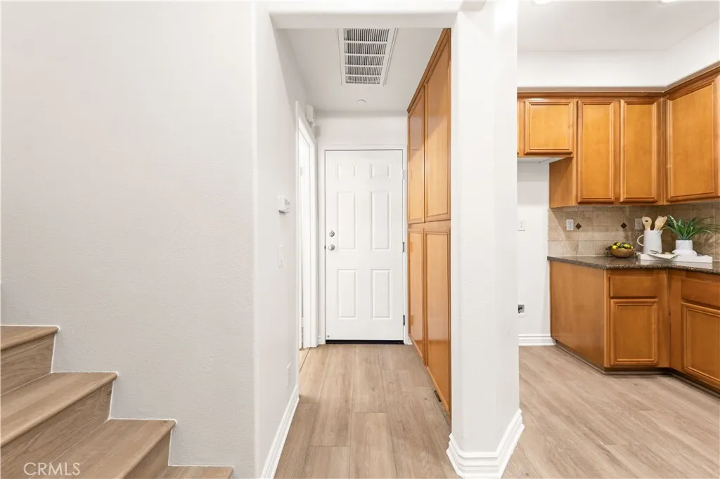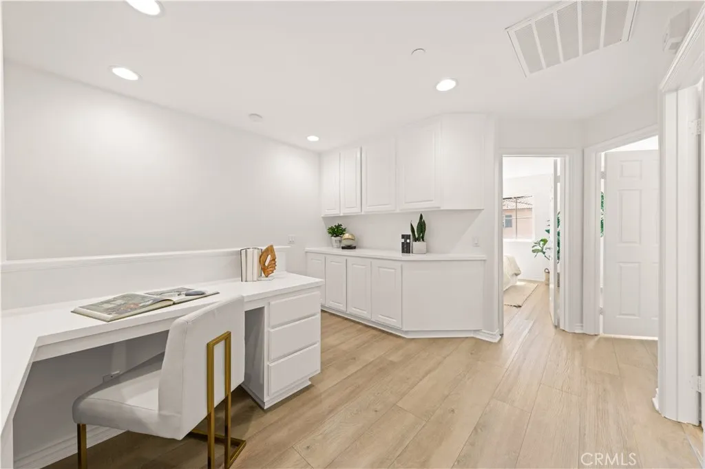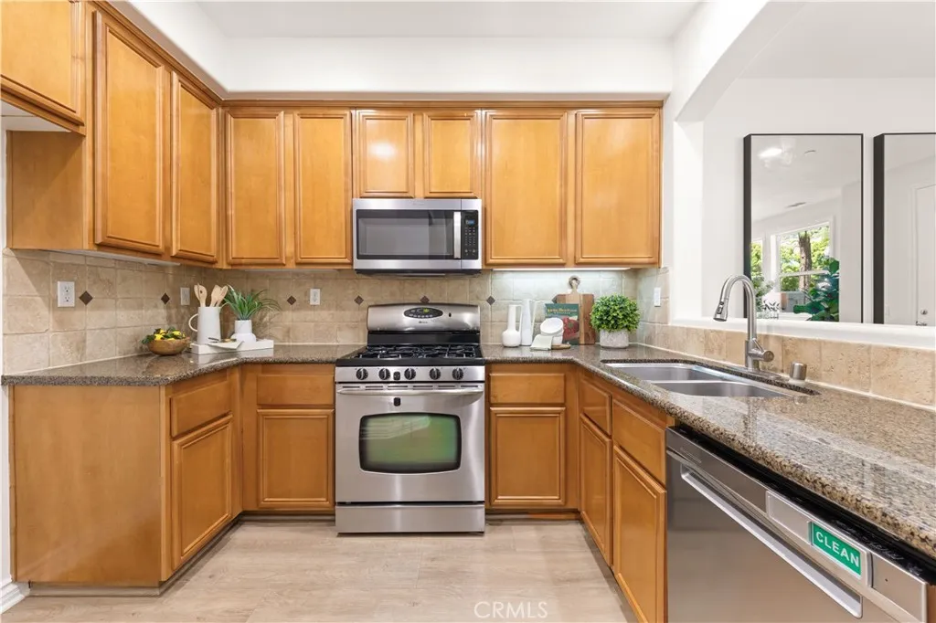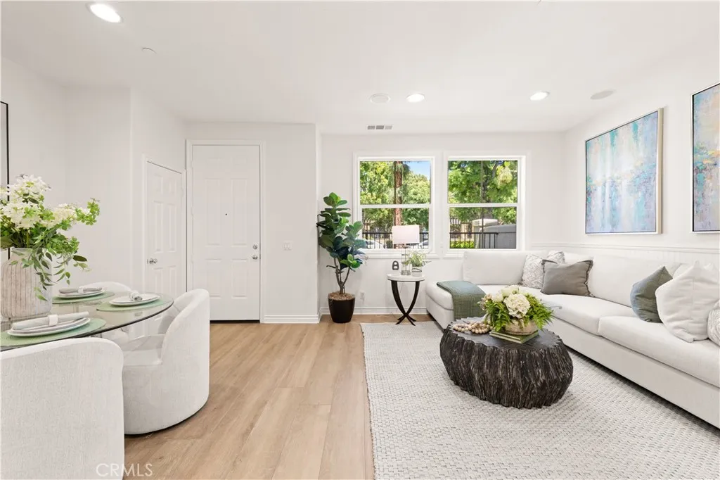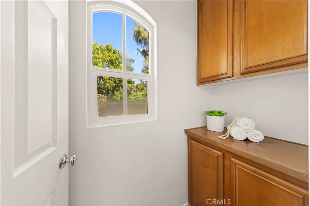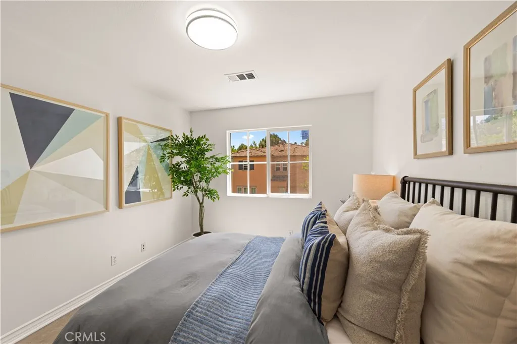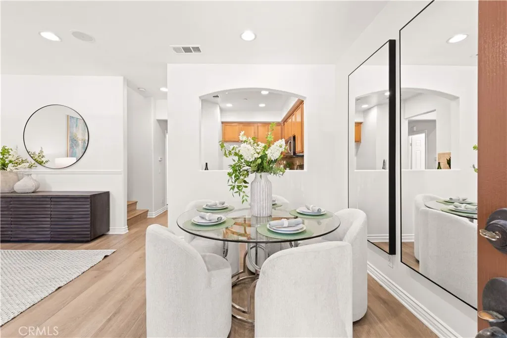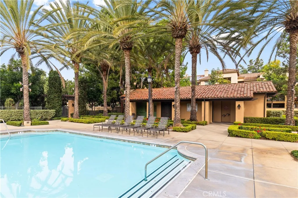 Ideally situated in a desirable Irvine community, this well-designed two-story townhome offers an excellent opportunity for comfortable living with strong value. Positioned directly facing the community park and pool, the home enjoys an open setting and a pleasant, functional location. A private front yard adds charm and provides a welcoming outdoor space. The main level features an efficient and practical layout, connecting the living room, dining area, and kitchen in a cohesive flow that supports everyday living. A convenient powder room completes the first floor. Upstairs, a built-in desk area creates a dedicated workspace, complemented by additional cabinetry for extra storage. The primary suite includes a well-appointed bathroom with dual vanities, a shower-over-tub combination, and a walk-in closet. Two additional bedrooms are well-sized and versatile, along with a full laundry room conveniently located on the same level. Thoughtfully designed to maximize usability, the home offers a complete and functional living experience within a manageable footprint. Located within walking distance to a highly rated 10/10 high school, and just steps from parks, the pool, and community amenities, this home delivers exceptional convenience in a neighborhood known for its safety and quality of life. With its inviting outdoor space, flexible layout, and prime location, this residence offers a warm, polished living experience tailored to modern Irvine living.