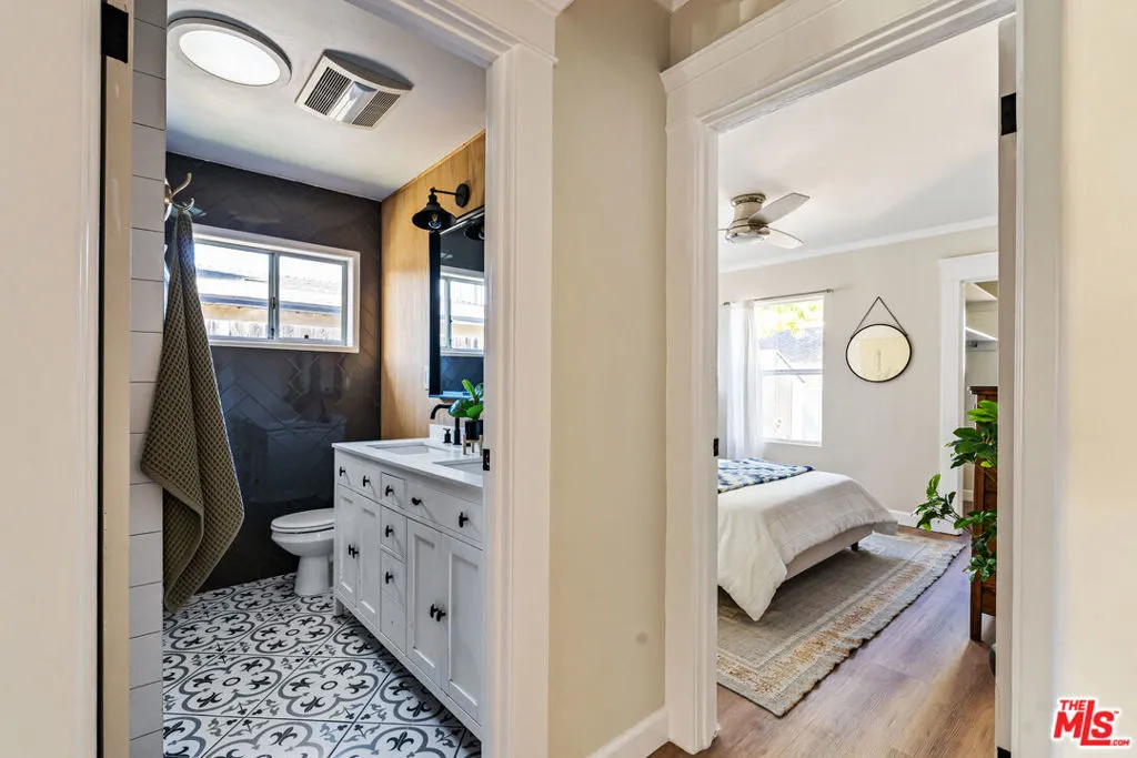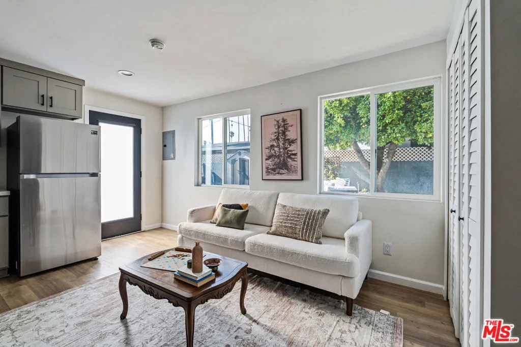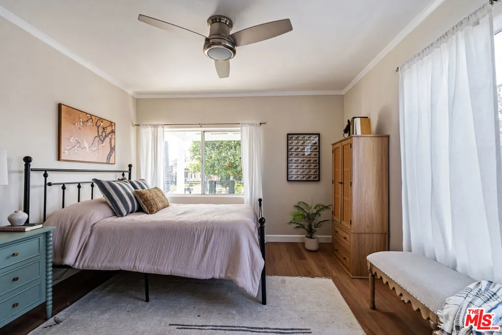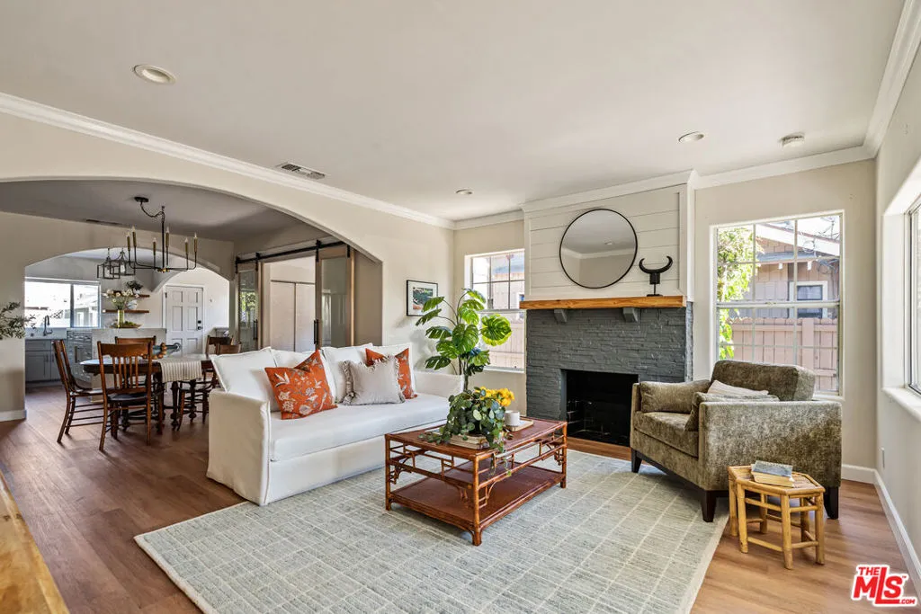 Updated bungalow in the heart of Leimert Park featuring a fully permitted studio ADU and expansive private backyard. Set along palm-lined streets in one of LA's most iconic and historic neighborhoods, this light-filled home offers a warm living room with a decorative fireplace, a spacious dining area, and an updated kitchen with stainless steel appliances and a breakfast bar island. A bonus room off the dining area is ideal for a home office or creative space. Bedrooms offer comfort and storage, while bathrooms are thoughtfully updated. Enjoy outdoor living with bistro-lit entertaining areas, garden space, and room to unwind. Grapefruit, guava, and nectarine trees can also be found in this backyard. The detached studio ADU includes a modern kitchen and bath, ideal for guests or work-from-home flexibility, as well as potential income opportunities. Up to 4 parking spaces are available in the front & side driveways. Additional property upgrades include fully paid solar panels, a newer roof, a recently replaced foundation, central heat and air, and driveway pavers. Short distance to Leimert Park, the Metro, and local schools.