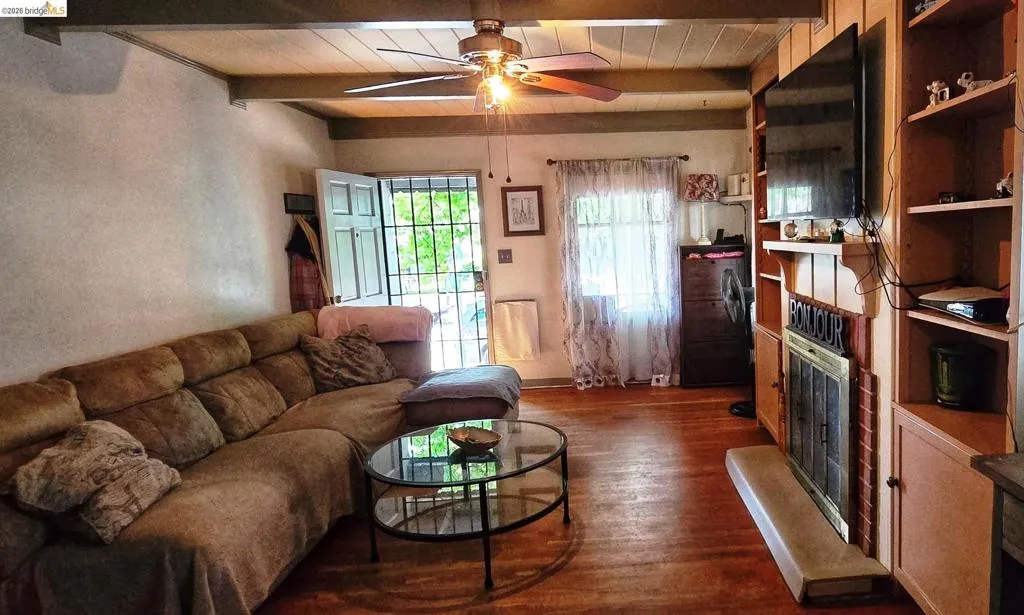 Charming home that combines comfort and convenience! This lovely residence features 3 bedrooms and 2 bathrooms with nearly 1,200 sq ft of living space. A welcoming front porch opens to a bright living room with a cozy fireplace and beautiful hardwood floors. The eat-in kitchen offers a cozy space for everyday meals, complete with ample cabinetry, a newer stove, and a stainless-steel refrigerator. The primary bathroom provides easy access to two bedrooms, while the third bedroom is private with its own remodeled bathroom. Enjoy outdoor living in the spacious backyard, inviting front and rear porches, and plenty of room for gardening or relaxing. The backyard also includes a tool storage room and a covered patio, perfect for year-round entertaining. Additional features include central heating and air conditioning, a garage, and generous side-yard parking for up to three cars or an RV. Located near schools, parks, and shopping, with quick access to Antioch BART and just minutes from downtown Antioch and the waterfront, this is an ideal location for enjoying nearby recreational activities.