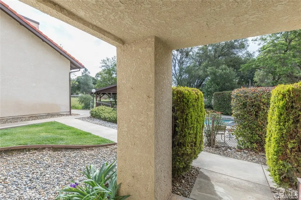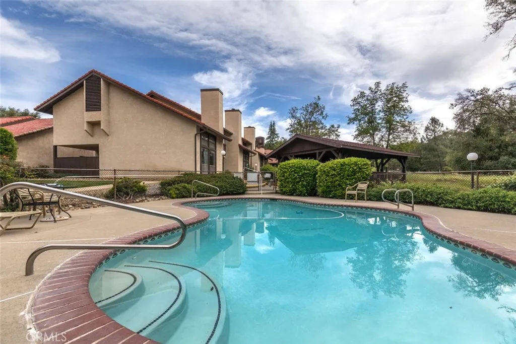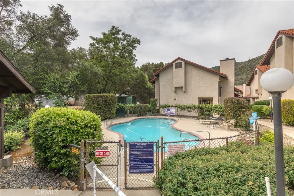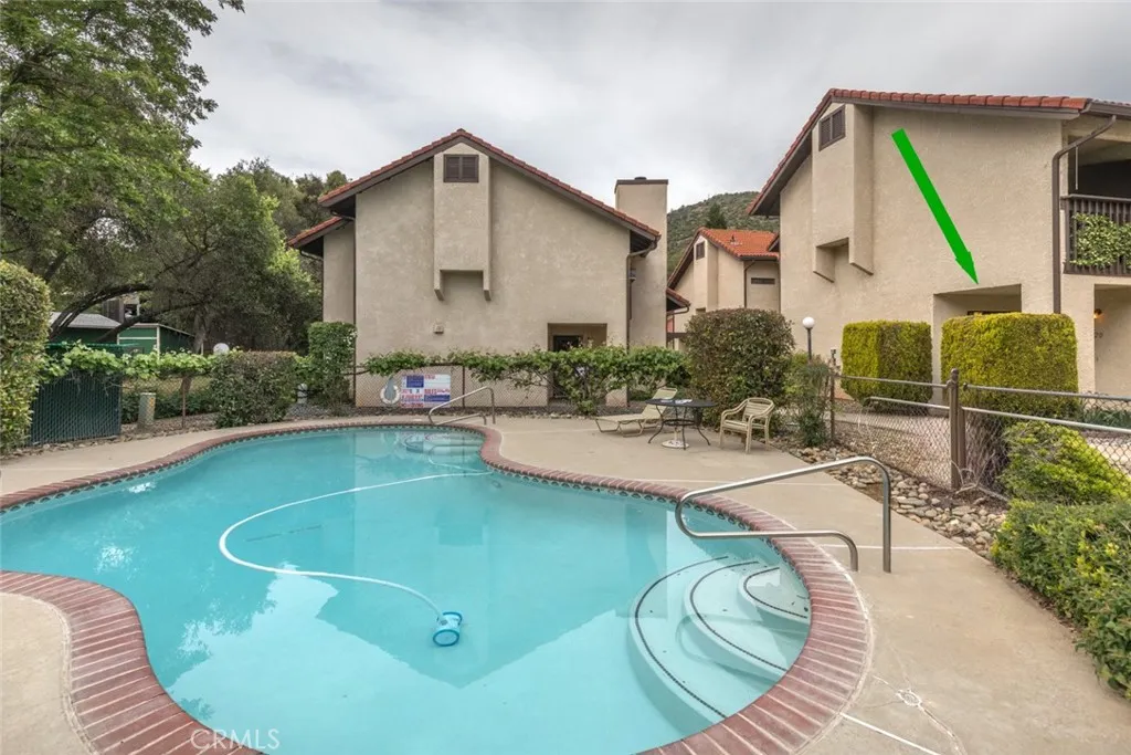 Charming 2-bedroom, 1.5-bathroom condo located at Acuerdo Con Dios, which is just 3 minutes from downtown Mariposa and an easy 45-minute drive to Yosemite National Park. Both bedrooms are upstairs, including a loft-style primary bedroom that has private outdoor balcony with a storage closet. The full bathroom features a functional layout with a private vanity area, plus an additional vanity just outside for added convenience. The main level offers an open and comfortable living space, a kitchen with ample cabinet storage, and a convenient half bathroom. A sliding glass door leads to a fenced-in patio—perfect for hobbies, a workspace, or relaxing outdoors—with an additional storage cabinet. The in-unit washer and dryer are tucked neatly into a dedicated closet. Included in the HOA is access to a community pool and covered patio area, which is located right outside the unit, well maintained landscaping and trash pick up. A great opportunity for a full-time residence or a weekend getaway.