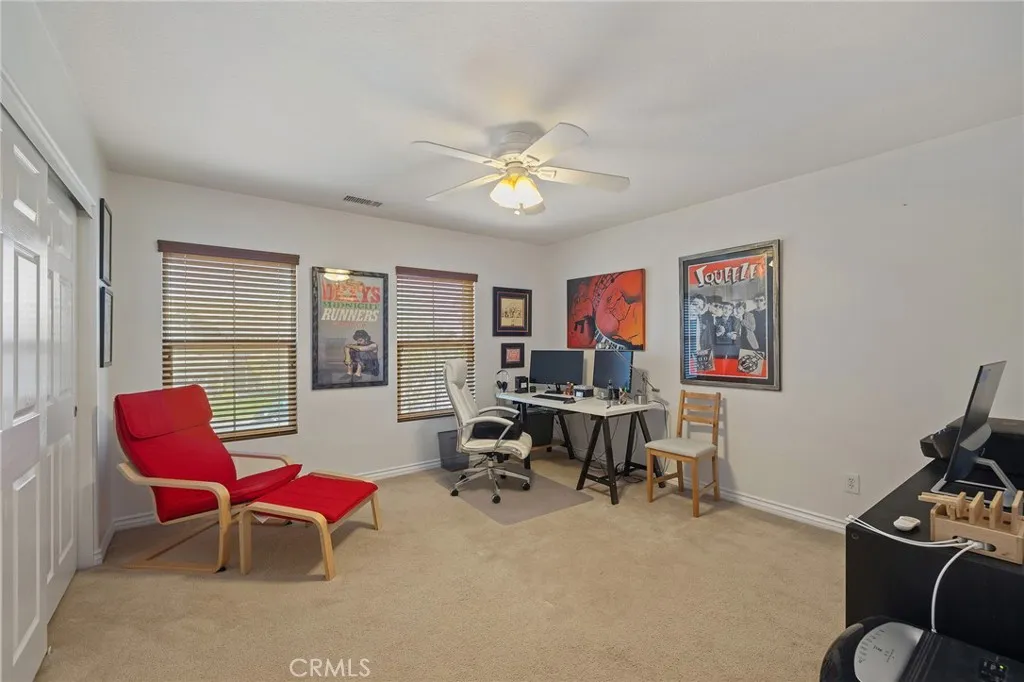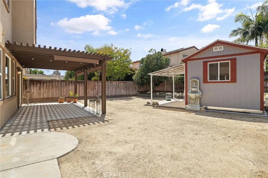Nestled on a quiet cul-de-sac within The Colonies Community and built by Centex Homes, this inviting residence offers a warm and welcoming presence from the moment you arrive, with a well-maintained exterior and a comfortable setting ideal for everyday living. Main features include 5 Bedrooms, 3 Bathrooms, 2,692 square feet of interior living space, resting on a 6,773 square foot lot, and built in 2005. The home offers a total of 3 car attached garage spaces, thoughtfully designed as a traditional 2-car garage alongside a separate single-car garage—providing flexibility for multiple vehicles, storage, or even a dedicated workshop space. Additional highlights include central A/C and heating, recessed lighting, double pane windows, and a gas burning fireplace in the family room. As you step inside, you are welcomed by a combination living room and dining room, currently arranged as a spacious dining area, creating a seamless transition into the main living spaces. The kitchen is designed for functionality and connection, featuring granite countertops and a full set of appliances including a stainless-steel Maytag 5 burner gas cooktop, Allure range hood, stainless steel GE built-in microwave, stainless steel Frigidaire built-in double oven, and a stainless-steel Frigidaire dishwasher. Adjacent to the kitchen, the family room offers a comfortable gathering space centered around a gas burning fireplace. Also located on the main floor is one bedroom along with a 3/4 bathroom, offering flexibility for guests, extended family, or a home office setup. Upstairs, you will find a versatile loft area, perfect for relaxation or additional living space. The individual laundry room is also located upstairs and includes a sink for added convenience. The remaining bedrooms are situated on the second floor, with one currently being used as an office. The primary suite offers two spacious walk-in closets, while the primary bathroom features a walk-in shower, separate soaking tub, dual sinks, and a private toilet room. The backyard provides a functional outdoor space with a covered patio, automatic sprinkler system, and an insulated shed equipped with electricity and a wall unit, offering additional flexibility for storage or workspace. Enjoy the benefits of living in a desirable location with access to the 210 Freeway, nearby shopping at Colonies Crossroads, outdoor recreation along the Pacific Electric Trail, and close proximity to Upland Hills Country Club.