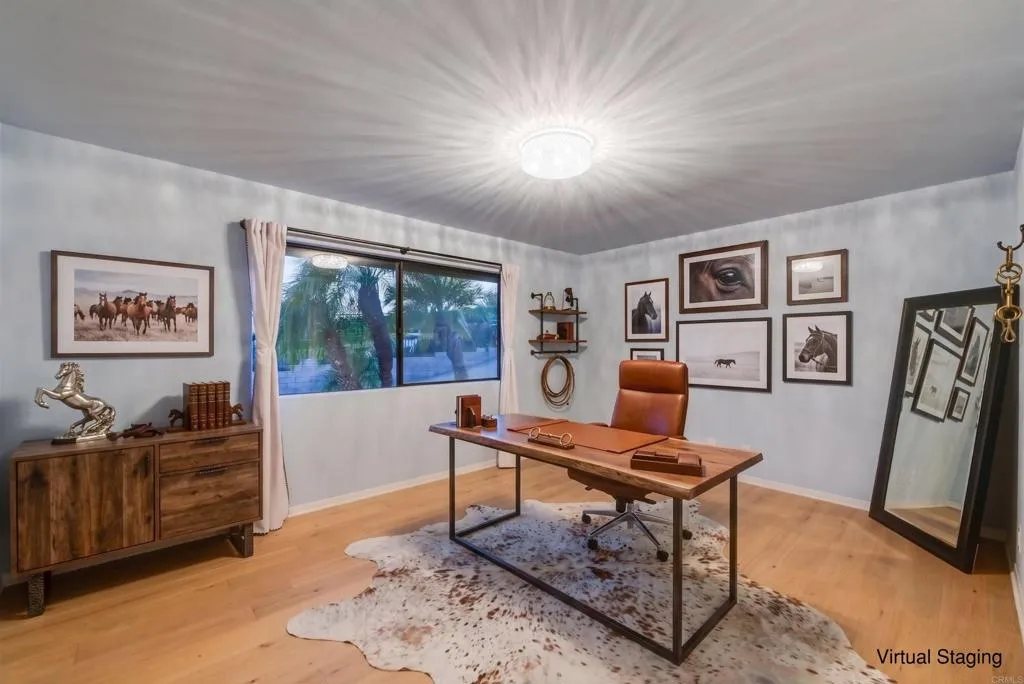 **Turn-Key Legacy-Caliber Equestrian Estate** set on 2.47 acres of usable, private ground—purposefully composed for those who understand land, function, and long-term value. The 3,363 sq ft main residence is disciplined in its execution, offering 3 bedrooms and 2.5 baths, anchored by a reimagined kitchen, refined interior finishes, re-roofed, and upgraded HVAC systems and much more. Every improvement is deliberate, not cosmetic. A separate, fully remodeled and re-roofed ADU is approximately 400 sq ft and provides 1 bedroom, 1 bath, a complete kitchen, and private laundry—well-suited for extended living or discreet accommodations. Equestrian infrastructure is established and intentional: barn with feed and tool storage, tack room, turn-out stalls, and a graded pad positioned for a future arena of scale. The grounds extend to curated fruit trees, raised gardens, and a greenhouse—supporting both lifestyle and self-sufficiency. With additional space reserved for a pool and further expansion, this is a property defined by control, utility, and quiet strength—built for those who expect more and settle for nothing less.