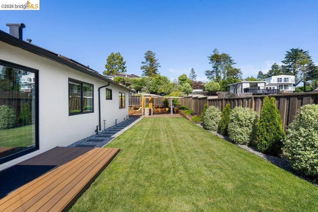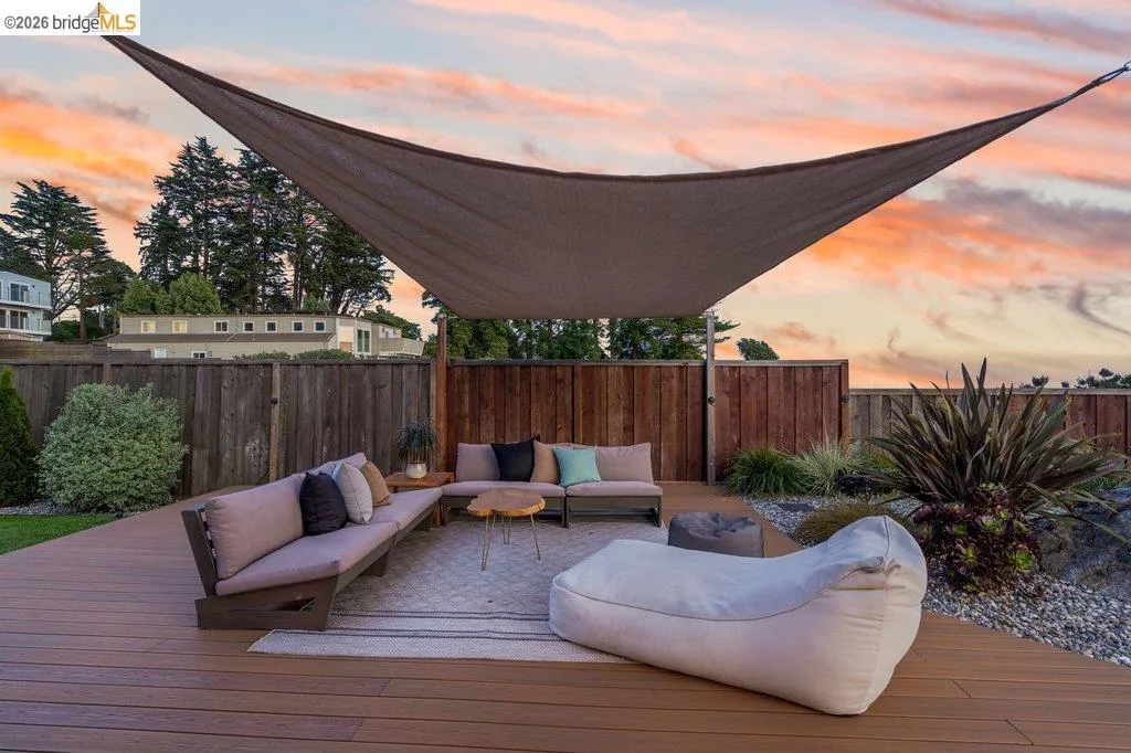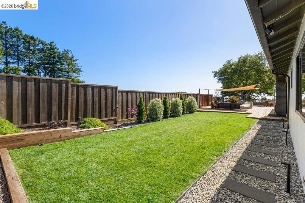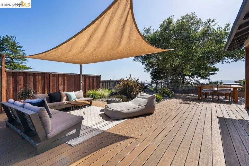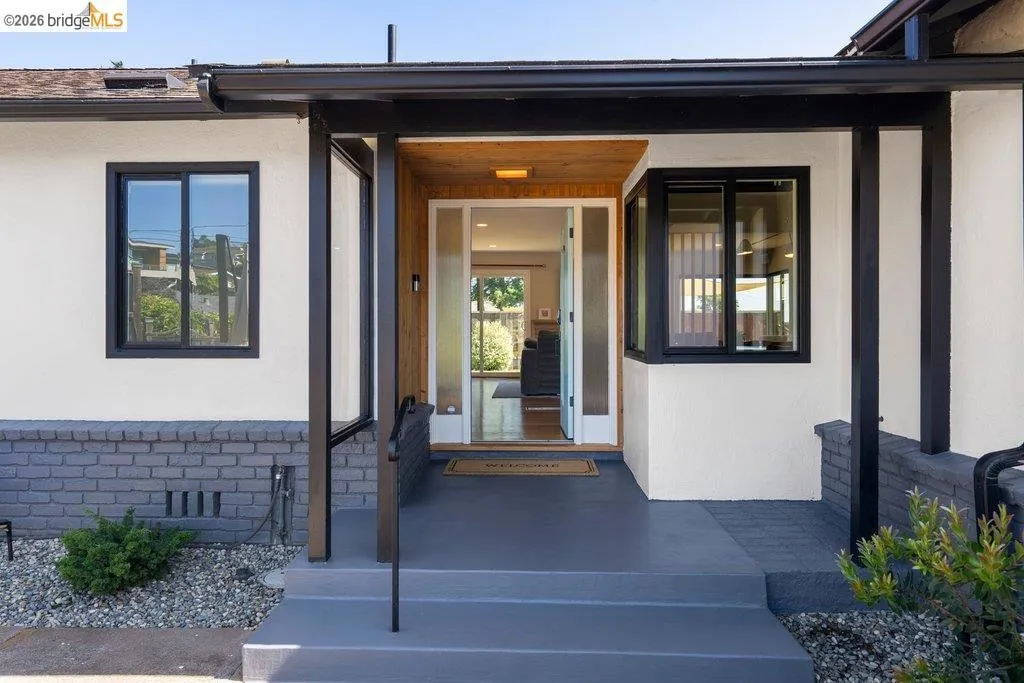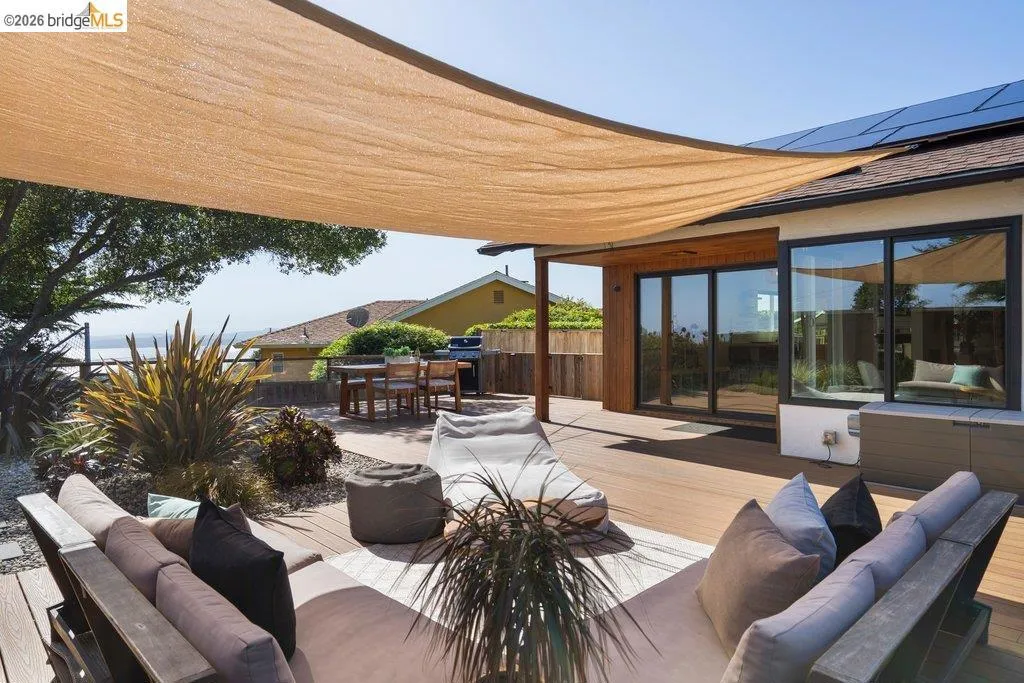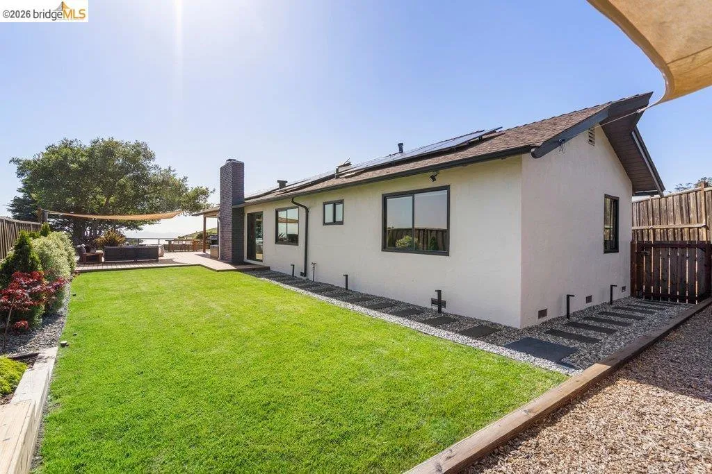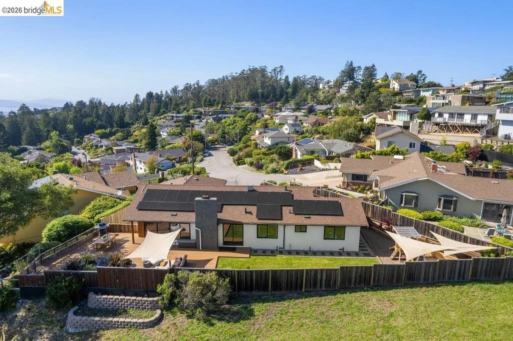 Welcome to 8618 Edgehill Court in El Cerrito, a beautifully remodeled level-entry home offering 1,648 square feet of bright, airy living space with three bedrooms and two bathrooms. Showcasing classic Mid-Century architecture and a flexible floor plan, this home features hardwood floors, two dining areas, and a stylishly updated kitchen and bathrooms designed for modern living. Enjoy sweeping four-bridge bay views that include the iconic Golden Gate Bridge and the skyline of San Francisco. The spacious backyards made for entertaining, with multiple areas perfect for family gatherings and celebrations- this home truly invites you to throw a party. Complete with a finished two-car garage and conveniently located near bus routes, Arlington Park, and scenic hiking trails, and zoned for Madera Elementary School. Twilight Open Friday 5/1 5-7pm and Saturday and Sunday open houses 5/2, 5/3, 5/9 ad 5/10 2-4:30pm. Views: Downtown