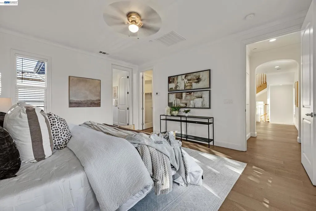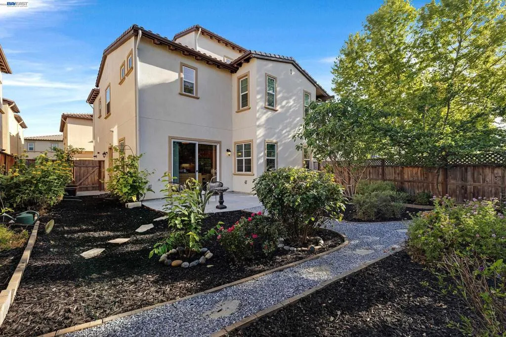 Located in the highly sought after Gale Ranch neighborhood of San Ramon, this beautifully maintained home offers a perfect blend of comfort, style, and functionality. Hardwood flooring flows throughout the main living areas, complemented by recessed lighting and an open kitchen-family room layout designed for modern living. The kitchen features stainless steel appliances and a unique extended table off the island, creating a central gathering space ideal for everyday living and entertaining. Upstairs, a spacious loft provides flexible living space for a home office, media room, or play area. The light-filled primary suite features elegant French doors, a walk-in closet, and a generously sized bathroom with a soaking tub and large shower. A convenient second-floor laundry room adds to the home’s thoughtful design. Step outside to a lush, thoughtfully curated backyard designed for both relaxation and enjoyment. Mature landscaping includes a variety of fruit trees and garden elements such as Mission fig, apricot, Mexican lime, tangerine, pomegranate, cherry, champagne grape vines, and passionfruit, along with fragrant rosemary and sage. The private patio provides the perfect setting to unwind, entertain, or enjoy your own garden-to-table lifestyle. Additional highlights include a 2-car garage with epoxy flooring and access to exclusive community amenities, including a clubhouse, pool, and gym. Located near top-rated schools, parks, and trails, this home offers an exceptional lifestyle in one of San Ramon’s premier communities.