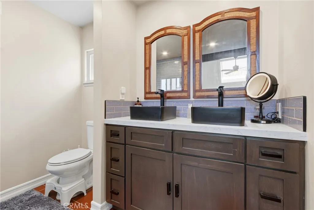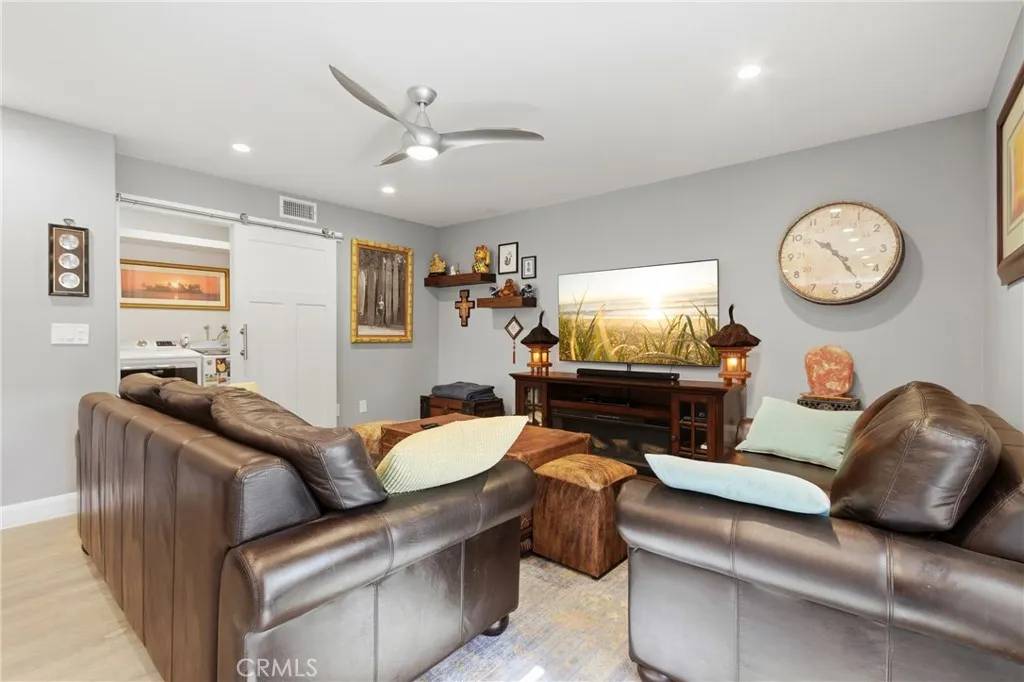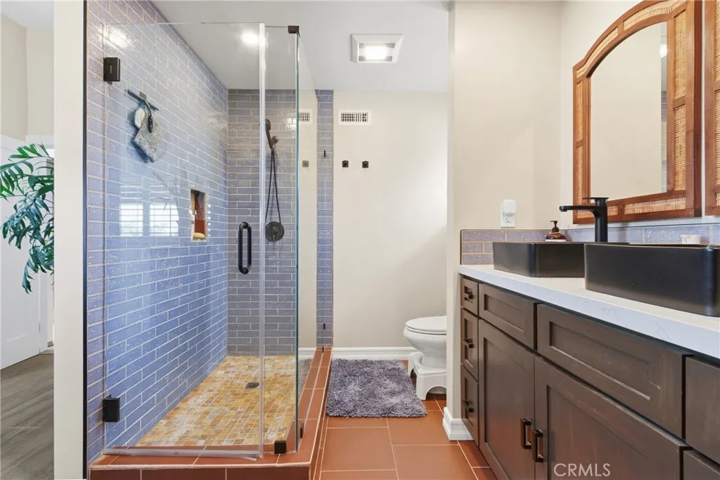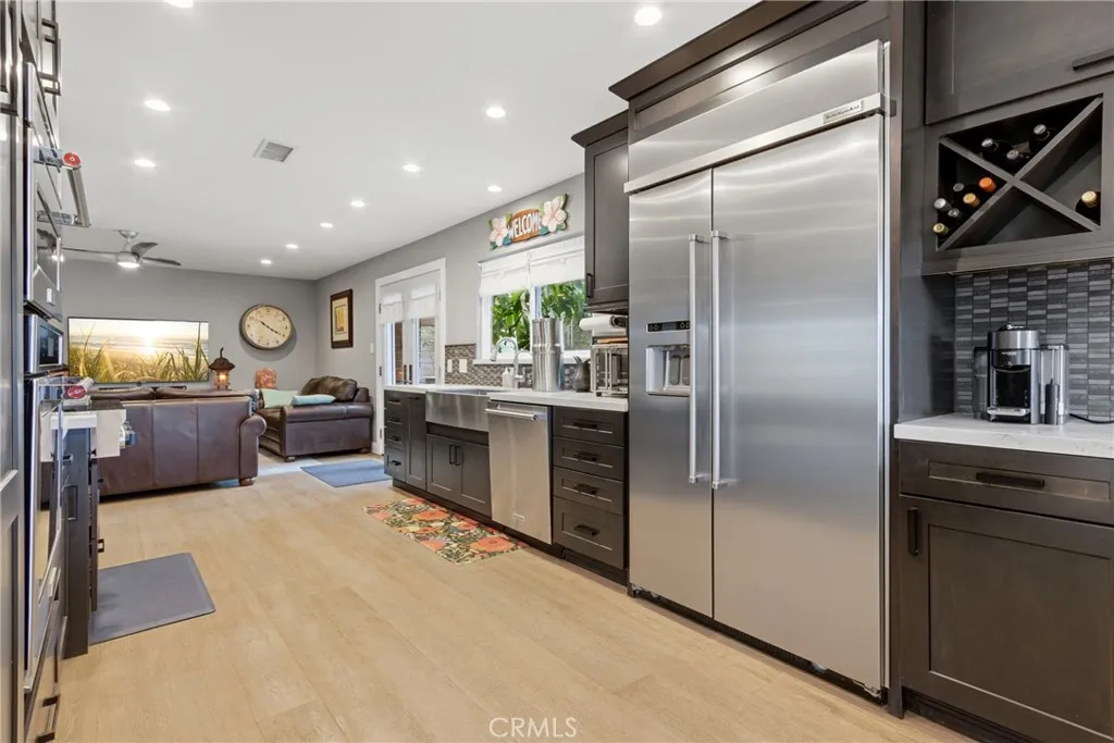 Welcome to 26551 Via Conchita, a meticulously reimagined residence in Mission Viejo’s sought-after Deane Homes community. Taken down to the studs and rebuilt beginning in 2016, this 4-bedroom, 2.5-bathroom, 2,053 sq ft home blends open-concept living with high-end finishes throughout. Step through the new front door onto fresh foyer tile into a light-filled, wall-less floor plan. Integrated LED lighting runs throughout both levels, with fresh paint and new flooring tying the home together. A custom wine rack tucked beneath the staircase adds an unforgettable touch. The chef’s kitchen features new cabinetry, a statement bar, premium appliances, fresh countertops, and designer backsplash. French doors replace dated windows and sliders, opening the interior to California indoor–outdoor living, complemented by retractable screens on the French doors and front entry. Upstairs, the spa-inspired primary suite has been expanded with a larger bath, dual sinks, LED lighting, and an enlarged walk-in closet — joined by a second full bath for the additional bedrooms. Downstairs, a fully renovated powder bath welcomes guests. A stylish barn door and all-new interior doors tie it together. Engineered for comfort, efficiency, and energy independence: • Brand-new 2025 HVAC with new compressor, furnace, ducting, and whole-house fan • Owned solar panels (2017) and TWO owned Tesla Powerwalls (2020 & 2022) — no lease • Reroofed in phases (2017–2022) with painted aluminum shingles, copper flashing, and skylights • Solar screens inside and out, awnings front and side, and expanded driveway Outside, a resort-style retreat awaits. The covered lanai was upgraded in 2019 with a built-in jacuzzi and outdoor shower — perfect for unwinding under the stars. The backyard is an edible paradise with mature orange (x2), mango, clementine, tangerine, lemon, longan, and rose water apple trees. Out front, a Royal Poinciana “Flame Tree,” blue spruce, roses, and a spring-blooming peach blossom create showstopping curb appeal. Minutes from Lake Mission Viejo and zoned for award-winning schools, 26551 Via Conchita is a rare turn-key opportunity in one of South Orange County’s most established neighborhoods. Nothing left to do but move in.