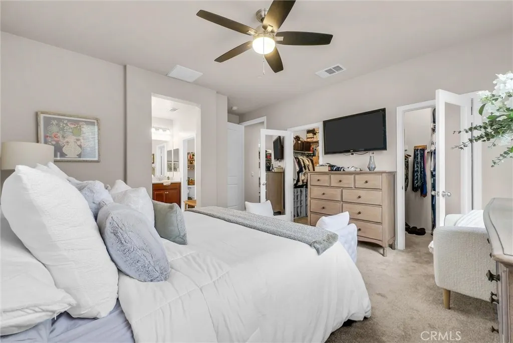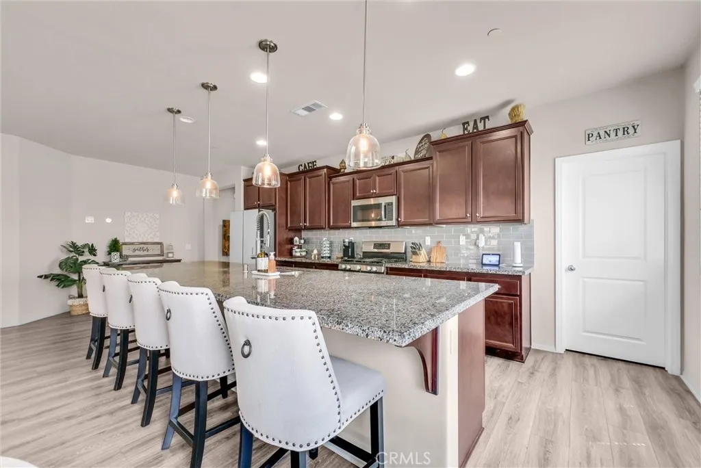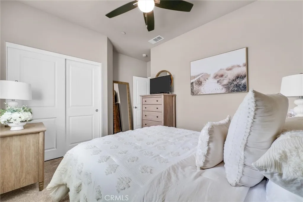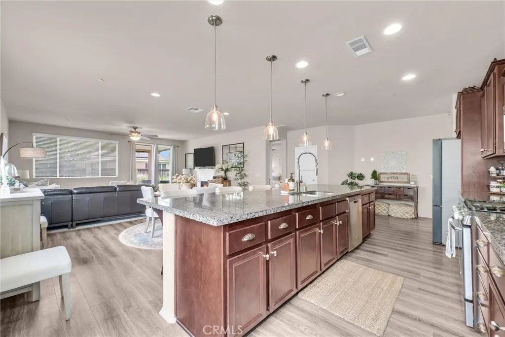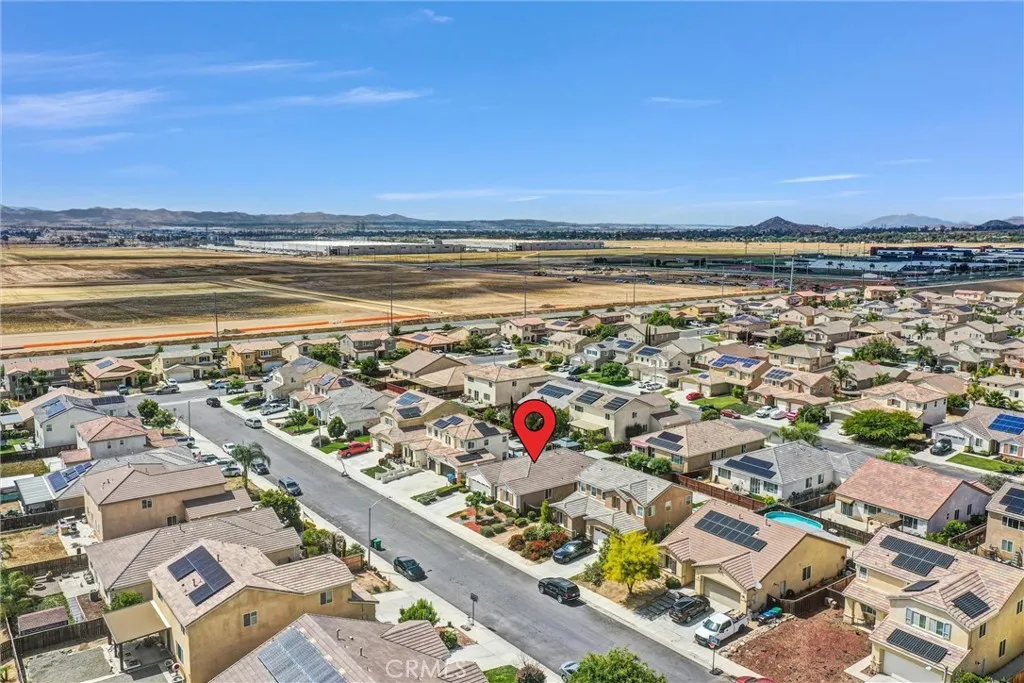 Looking for a Move-In Ready 4 bedroom / 2 bath SINGLE STORY Traditional home located on a cul-de-sac street w/ NO HOA??? Well, look no further!!! This immaculately maintained 2,032 sq ft home in the Crescent Pointe community of Menifee might be the one for you!! This home features not only wonderful curb appeal from the cul-de-sac street, but the following as well: A huge open floor plan with lots of natural light, an expansive Family Great Room w/ a gas fireplace, a large gourmet center island kitchen w/ granite counter tops, upgraded mosaic tile backsplash & custom color cabinets; a master bedroom retreat suite w/ his & Her’s walk-in closets; an oversized laundry room w/ built-in cabinets plus an additional storage room and 3 addt’l decent sized bedrooms (one of which could be an office, den, workout room, study, etc…). And when you need a little fresh air, your beautifully landscaped backyard retreat is ready for you day or night with a covered patio & view of the local rock hills as well. And if that’s not enough, additionally this property features: Leased SOLAR (10 panels / 1 Tesla battery / 4.4 kilowatts) ~ buyer to assume SunRun Solar Lease ~ , a dog run area on the side, 2 car attached garage w/ plenty of storage, Central A/C & Heat w/ an additional whole house fan, and a tankless water heater as well. Yes, this property has all you need, and did I mention it’s close to schools, parks & shopping?!?! THIS IS A MUST SEE!!