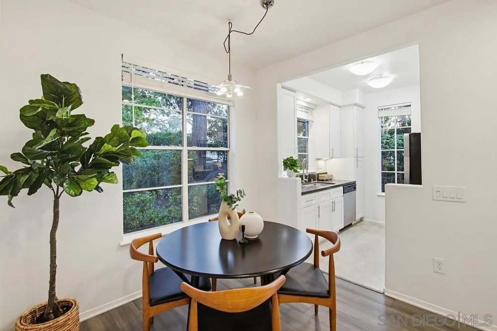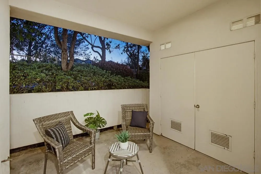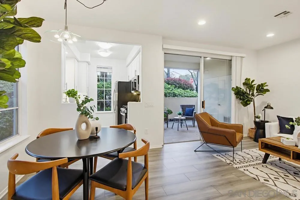 Beautiful ground-level, single-story, corner end-unit at Martinique; a gem in the Del Mar Highlands development. Situated at the end of a short pathway in a quiet location within the community. All stainless-steel appliances and Quartz countertops in the bright, sunny kitchen. Recessed lighting in the Living and Dining Rooms, with plenty of natural light throughout the condo. Laminate flooring throughout with ample closet space. Large patio with full-sized, side-by-side washer and dryer in a utility closet. Central Air Conditioning and Natural Gas Forced Air Heat. The property has one dedicated carport space (#90) along with plenty of unreserved parking for guests and any additional vehicles. The community features a well-maintained swimming pool, spa, and fitness center - all easily accessible from the condo. Located in a quiet, eminently walkable neighborhood with parks and schools within easy reach. Short walk to One Paseo and Del Mar Highland Shopping centers. Short drive to the I-5 and the I-5/56 interchange for easy commuting. Less than 2 miles away from the Del Mar beach.