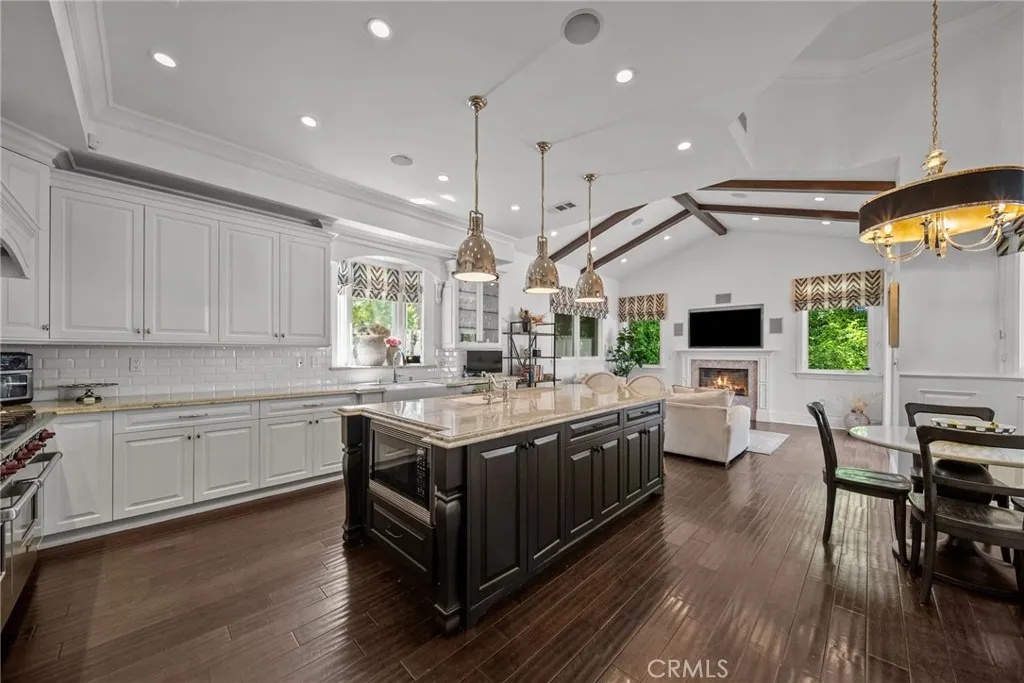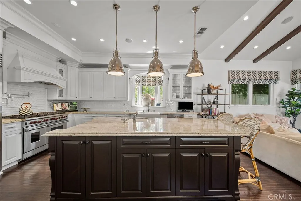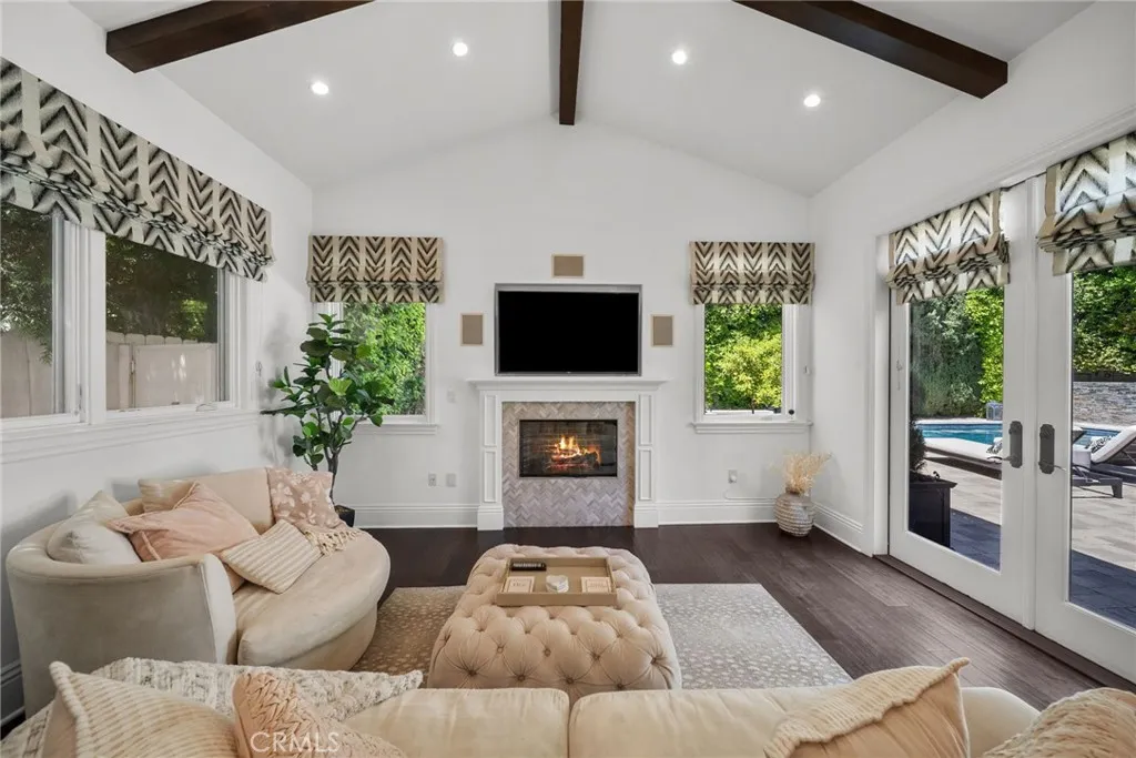 Welcome to your new home! This gorgeous 5-bedroom, 5.5-bath Cape Cod—plus a dedicated office—is tucked away on one of Encino’s most picturesque cul-de-sacs. Blending timeless East Coast architecture with modern luxury, this exceptional residence offers seamless indoor-outdoor flow, an open-concept layout, and refined finishes throughout. The main level features a formal living room with fireplace, elegant dining room, gourmet kitchen with breakfast area, and an expansive family room with French doors that open to the beautifully landscaped backyard. The stunning primary suite offers vaulted ceilings, a spa-like bath, and two custom walk-in closets. Two additional en-suite bedrooms, a private office, and a powder room complete the first floor. Upstairs, a spacious loft-style living area with vaulted ceilings and a fireplace sits between two additional en-suite bedrooms—an ideal setup for guests, teens, or multigenerational living. Walls of glass and French doors lead to a true entertainer’s backyard featuring a covered outdoor living room with fireplace and flat-screen TV, built-in cook station, pool, spa, grassy play area, and multiple seating areas designed for effortless, resort-style California living. Located in one of Encino’s most sought-after neighborhoods with convenient access to the 405 and Westside, nearby parks, Houses of Worship, fine dining, and premier shopping, this home is also within the highly regarded Encino Charter Elementary School district. A rare opportunity to own a standout property in one of Encino’s most desirable settings.