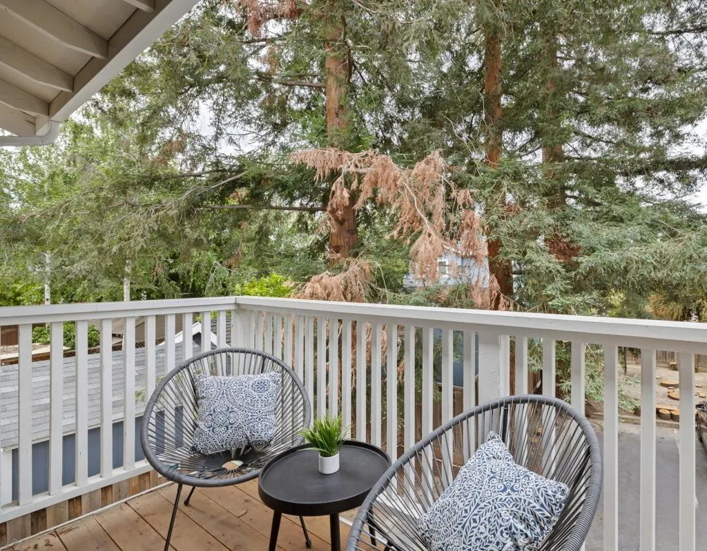 Tucked along a quiet cul-de-sac in North Willow Glen, this light-filled end-unit townhome offers a rare blend of privacy, comfort, and convenience just minutes from Downtown Willow Glen. Vaulted ceilings and abundant windows fill the home with natural light, creating a warm and inviting atmosphere throughout. The living room centers around a wood-burning fireplace and opens to a private backyard with a spacious paver patio and mature landscaping, ideal for outdoor dining or relaxing. The dining area sits just off the kitchen, which features warm wood cabinetry, solid surface countertops, tile backsplash, and updated appliances, with a convenient powder room nearby. Upstairs, two ensuite bedrooms provide comfort and privacy. The primary suite includes a vaulted ceiling, balcony, walk-in closet, and an updated bath with a warm wood vanity and separate shower area. The secondary suite offers a refreshed ensuite. Linen storage and laundry complete the upper level. Additional highlights include fresh interior paint, new carpet, HVAC, security system, water softener, and an attached two-car garage. Enjoy the best of Willow Glen just outside your door, from the shops and dining along Lincoln Avenue to quick access to Hwys 87 and 280, Tamien Caltrain, and major employers.