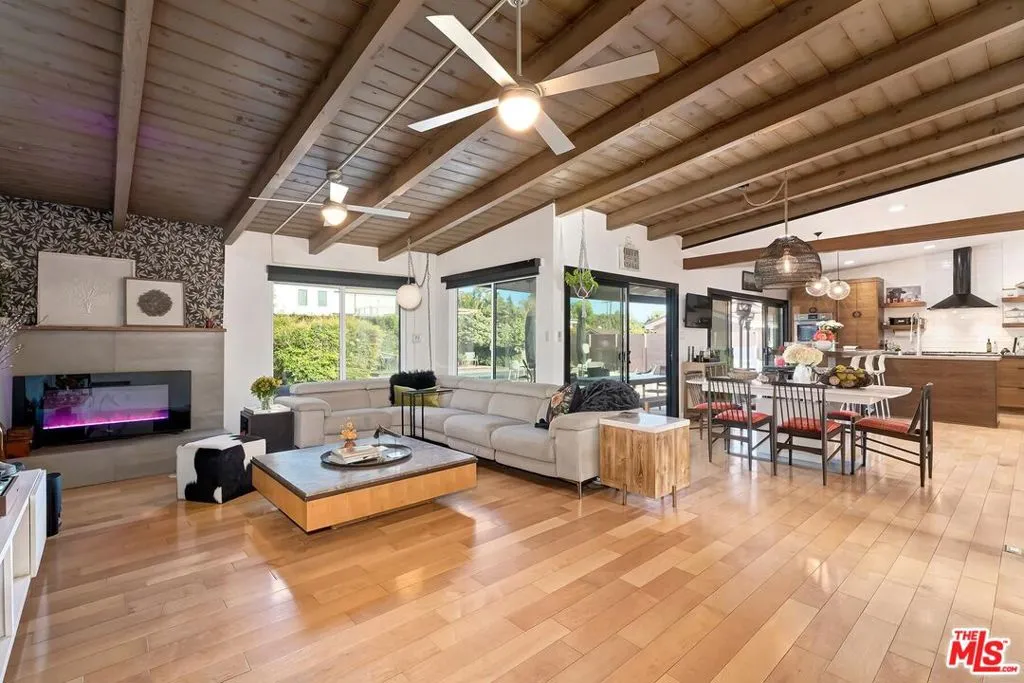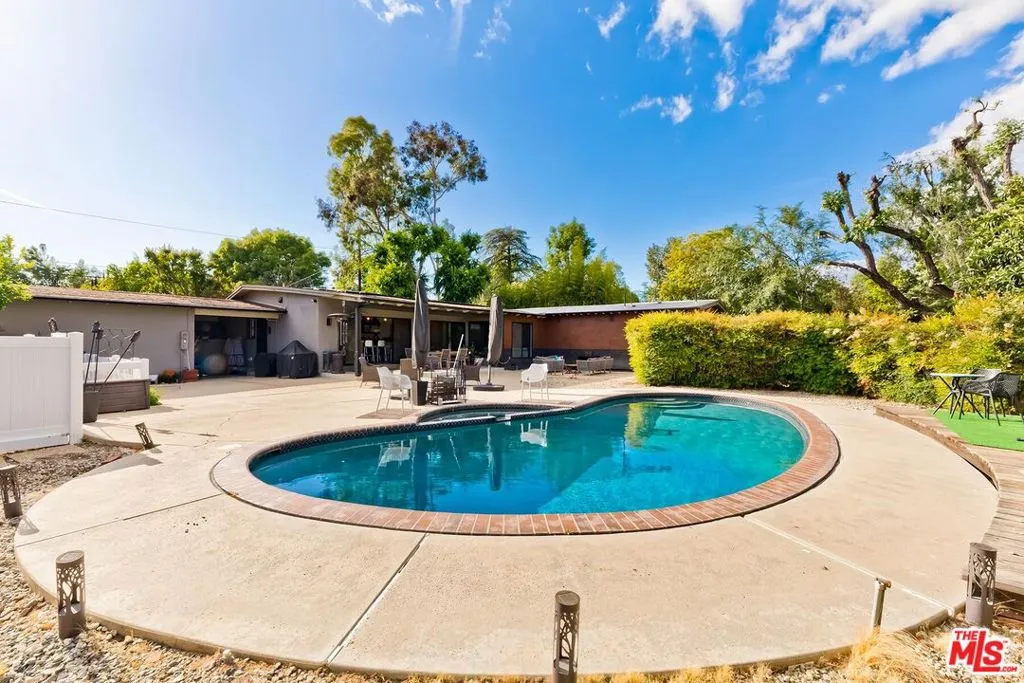 Now available and priced to sell! Impressive mid-century modern ranch home in Sherwood Forest. Gated manicured and private 17,000 square foot lot north of Parthenia. Industrial design double steel doors and sleek landing area. Gorgeous beamed ceilings and wood floors throughout. Electric fireplace and mood lighting in living room. Open concept cooks kitchen with Bosch appliances, dishwasher, wine cooler, and chefs panty. Primary suite includes newly built architectural extension with spa inspired LARGE shower, California sauna, exercise nook, and spacious dual closets with double height ceilings throughout. Get ready to party and unwind. Yard features a recently refinished pool, hot tub, fire pit, outdoor dining area, dog run, and vegetable garden. Tesla power wall, owned solar panels, and a 240V electric vehicle charger in the two car garage. Home has been used regularly for film and commercial shoots as a secondary source of income. Public records reflects 3 bedrooms. All information provided is deemed reliable but not guaranteed. Listing broker and seller make no representations as to accuracy. Buyer to independently verify all information, including but not limited to square footage, lot size, permits, condition, and property features. Listing agent is related to seller.