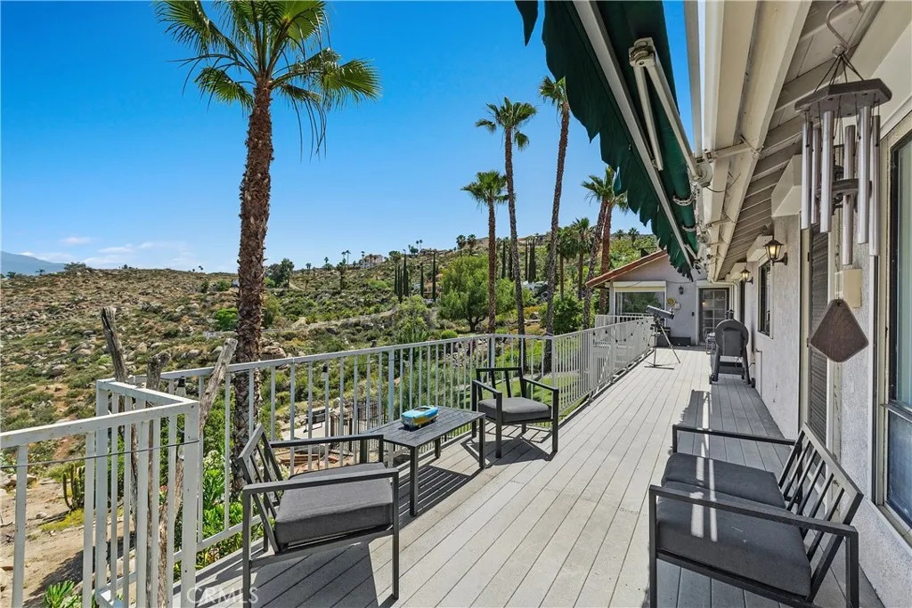 Welcome to a tranquil estate where privacy, space, and panoramic views converge in the hills of East Hemet. This sprawling single-story residence is situated on a generous 1-acre lot, offering the perfect canvas for those seeking a quiet, rural lifestyle without sacrificing modern comforts. Boasting nearly 2,500 square feet of interior living this spacious 3-bedroom, 2-bathroom home is designed for comfort and ease of movement. The home features large windows throughout which are thoughtfully positioned to showcase spectacular mountain and valley views from every room. The functional layout allows for a natural flow between the kitchen and living areas. Enjoy separate, oversized living and family room—ideal for hosting large gatherings. The expansive primary bedroom includes a large walk-in closet and a primary bathroom which includes your own spa-like sanctuary. This home's many updates include SOLAR, luxury flooring, renovated designer kitchen and matching bar area, renovated primary bath with heated floors, a sauna and more. The home also Includes a dedicated individual laundry room for added convenience. Plenty of room for your RV parking, trailer, or boat with easy access. Features an oversized 2-car attached garage with an abundance of additional driveway parking. Located on a quiet street, the property offers a sense of seclusion while remaining within a short drive of local amenities and schools. Plenty of room for your RV, trailer, or boat with easy access. Features a 2-car attached garage with additional driveway parking. Located on a quiet street, the property offers a sense of seclusion while remaining within a short drive of local amenities and school.
