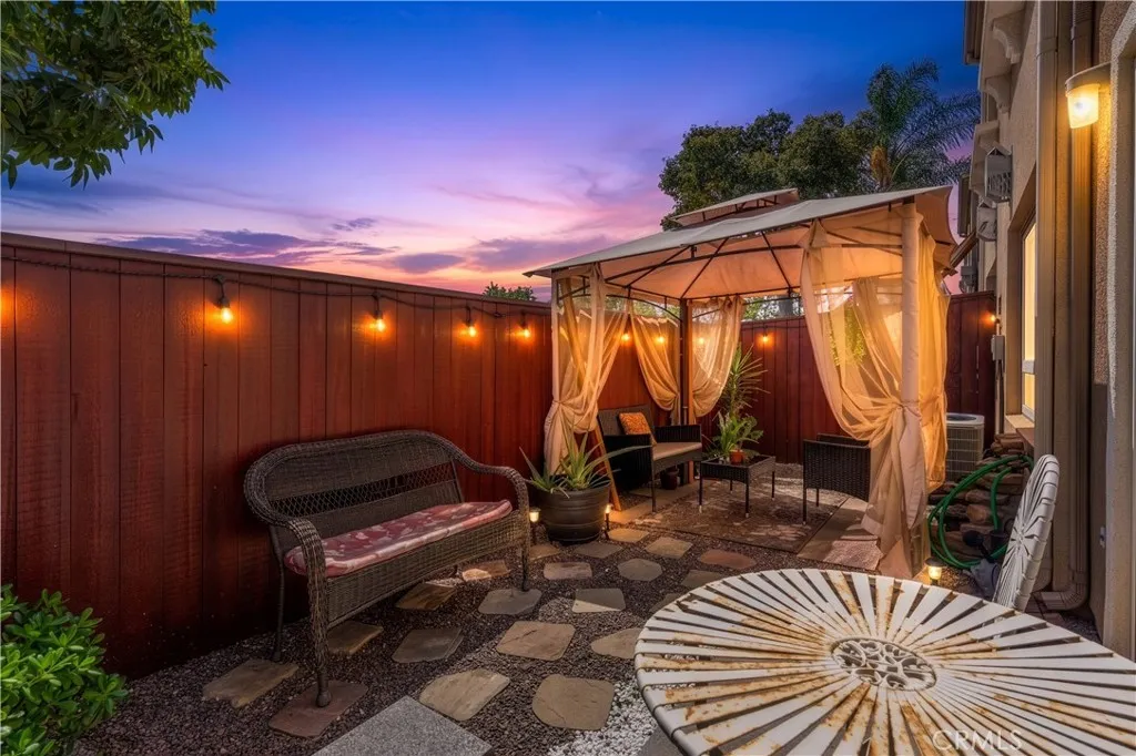 Move-in ready, this bright and upgraded home offers a functional layout filled with natural light and seamless living spaces. The main level features an open-concept living and dining area with large windows. The first floor has luxury vinyl planking throughout, a laundry room and upgraded half bathroom. The kitchen includes upgraded granite countertops, Beechwood cabinetry and stainless steel appliances. Enjoy direct access to the private patio with a Gazebo included - perfect for hosting. The garage is attached with additional guest and street parking. Upstairs includes three spacious bedrooms including a primary suite with dual sinks, large closet space and a balcony. Enjoy two upgraded full bathrooms upstairs. Recessed lighting and windows throughout enhance the airy feel of the home. Located in a well-maintained community of 10 residences, this property offers convenience. Ideally situated near shopping, dining, and everyday essentials, with multiple schools within close proximity including Richland Elementary and Mission Hills High School just minutes away. Easy access to Highway 15 & 78, Costco, Palomar College, Kaiser, Palomar Medical Center and CSUSM.