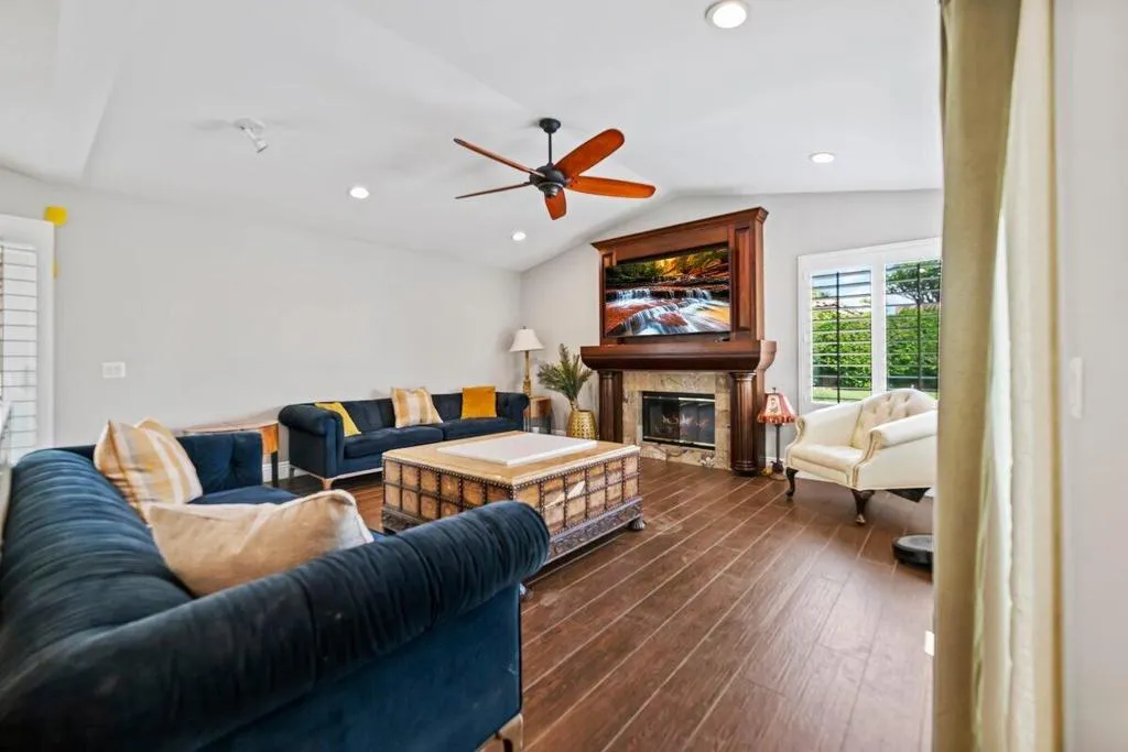 Beautifully upgraded and centrally located, this versatile home checks all the boxes! Offering 3 bedrooms plus a spacious bonus room that can easily function as a 4th bedroom, this property is perfect as a primary residence, vacation getaway, or income producing short term rental.From the moment you arrive, you're welcomed by a stunning arched wood entry door that sets the tone for the warmth and character found throughout the home.Inside, the thoughtfully upgraded open concept kitchen flows seamlessly into the main living areas, perfect for both everyday living and entertaining. Plantation shutters throughout add timeless style while enhancing privacy and natural light control.Step outside to your private backyard oasis featuring a pool, spa, built in BBQ, and gas firepit, designed for year round entertaining or relaxing under the desert sky.Energy efficient solar helps keep electric costs low, while the front yard features beautifully designed desert landscaping for added curb appeal and low maintenance living. Additional side yard parking provides extra convenience and flexibility.No HOA means more freedom and flexibility, whether you're looking to live, invest, or both.