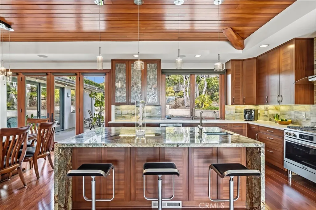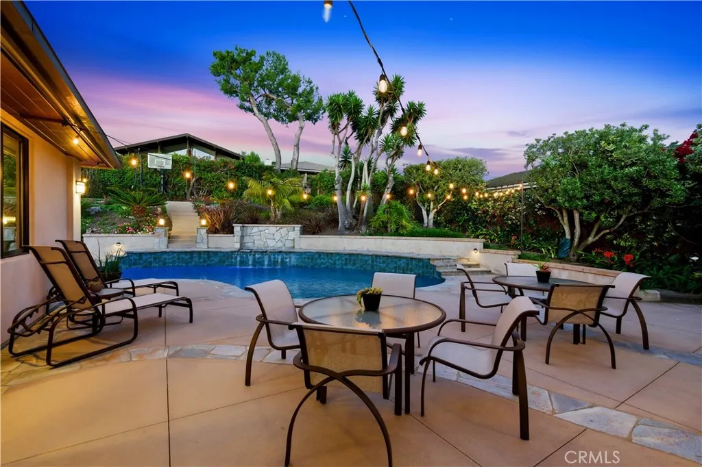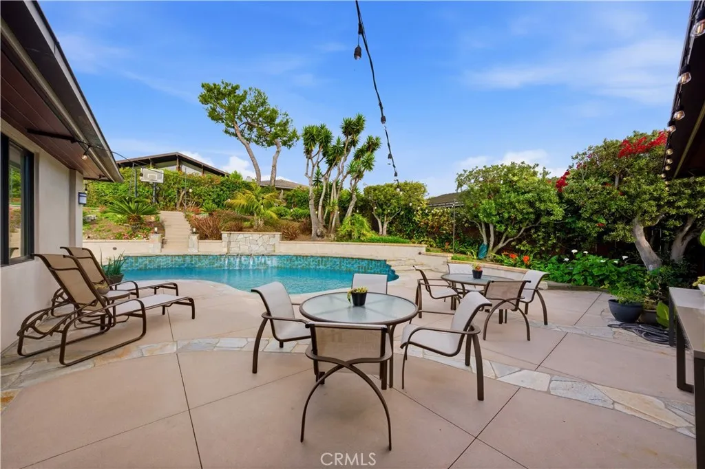 This beautiful and thoughtfully designed home by Louie Tomaro is ideally situated in the highly desirable lower Lunada Bay neighborhood, with the bluffs just beyond the end of the street. The home captures ocean views from a generously sized lot, complete with pool, outdoor fireplace, and private sports court. Ideally located a short distance to the top-rated elementary, intermediate, and high schools, restaurants, shops and coastal nature trails, it offers both everyday convenience and a strong sense of community. A travertine entry opens to an airy floor plan where newly refinished wood details and rich mahogany floors create a warm, refined atmosphere. Sunlit living and office spaces are framed by tall windows that invite natural light and subtly frame the coastal setting. The kitchen tastefully blends design and function with custom sapele wood cabinetry, a built-in pantry, new appliances, and a striking rainforest green marble waterfall island with seating and storage. The large office against the coastal views is an ideal option for working remotely and the generous bonus room provides flexibility for recreation, fitness, or creative pursuits. The fully finished 3-car garage with an EV charging outlet and large driveway offer ample space for parking, storage and a home workout area. Outdoors, the pool and jacuzzi, intimate fire pit, vegetable patch, pool-side half bath, outdoor shower, and sports court are natural extensions of relaxed living, connecting and entertaining. Rebuilt from the studs with carefully curated finishes throughout, the home also includes plans for a 1,200-square-foot ADU, available upon request. 2912 Via Alvarado pairs coastal views with comfort, privacy, and understated luxury.